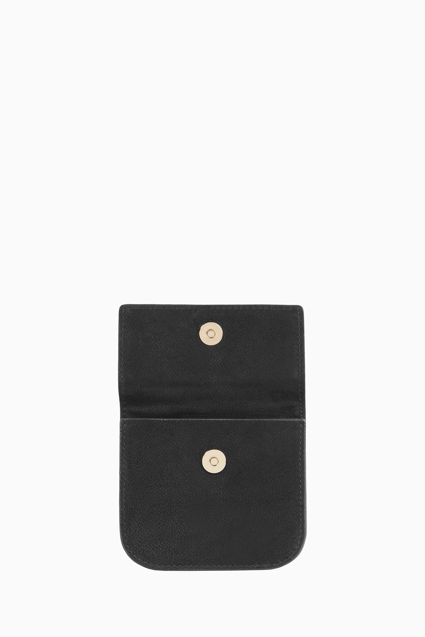 Con una elegancia minimalista y una solapa de cuero, esta minicartera, a pesar de su tamaño compacto, ofrece un uso práctico gracias a su interior organizado. Su textura suave y su silueta limpia aportan una elegante simplicidad a un estilo urbano, a la vez que sirve como un accesorio funcional para llevar lo esencial del día a día.