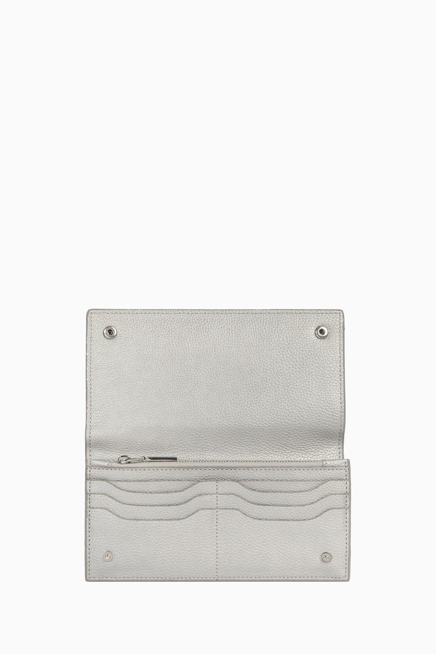 La cartera rectangular, con su forma estilizada y elegante, resulta práctica para llevarla en el bolso. Gracias a sus líneas limpias, es cómoda de llevar en la mano, y su apariencia sencilla le confiere un aspecto atemporal.
