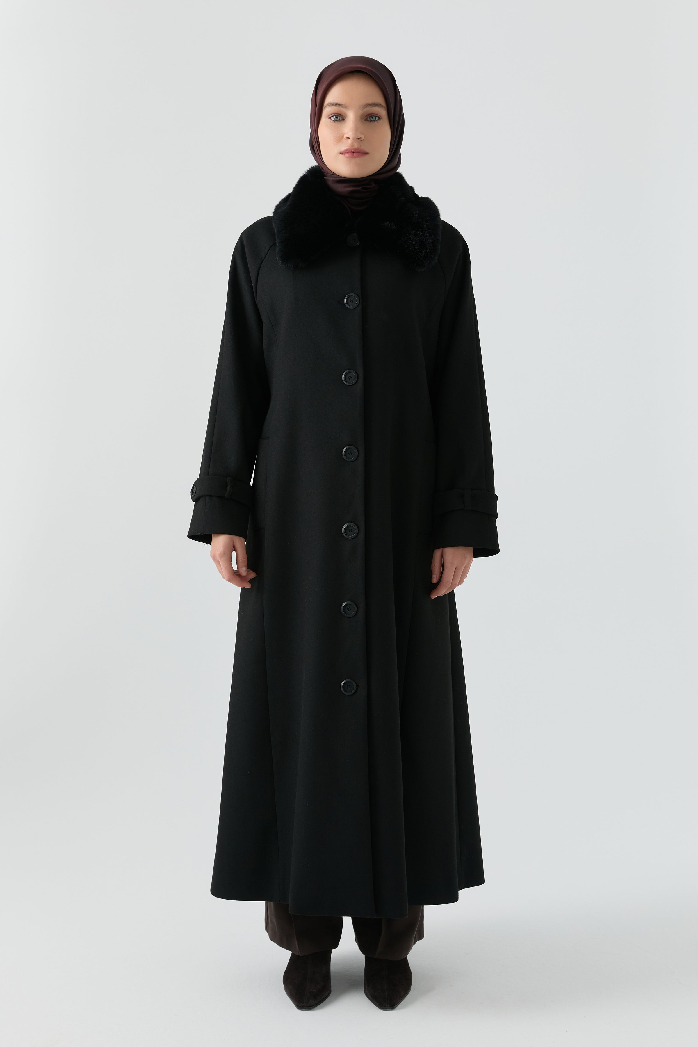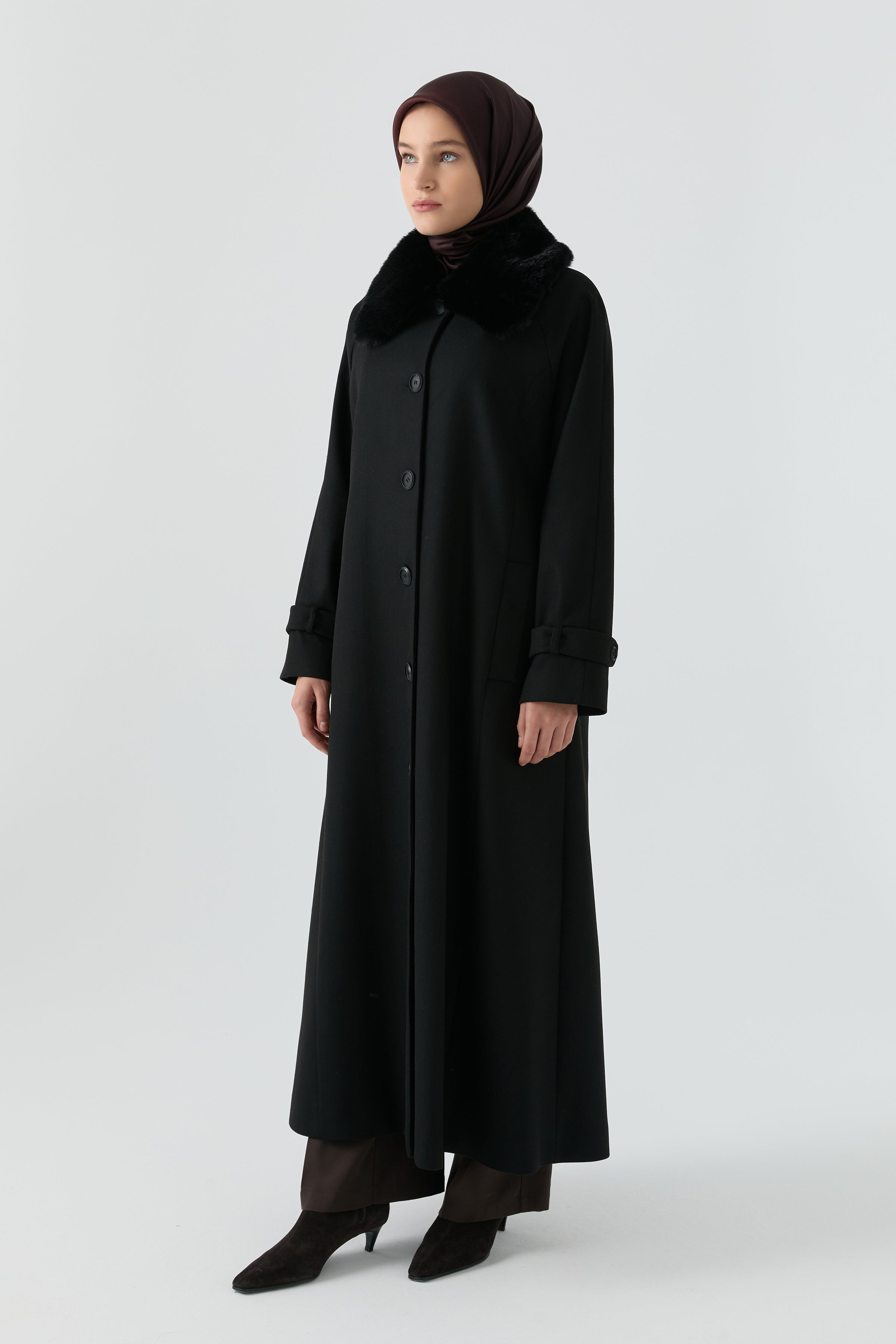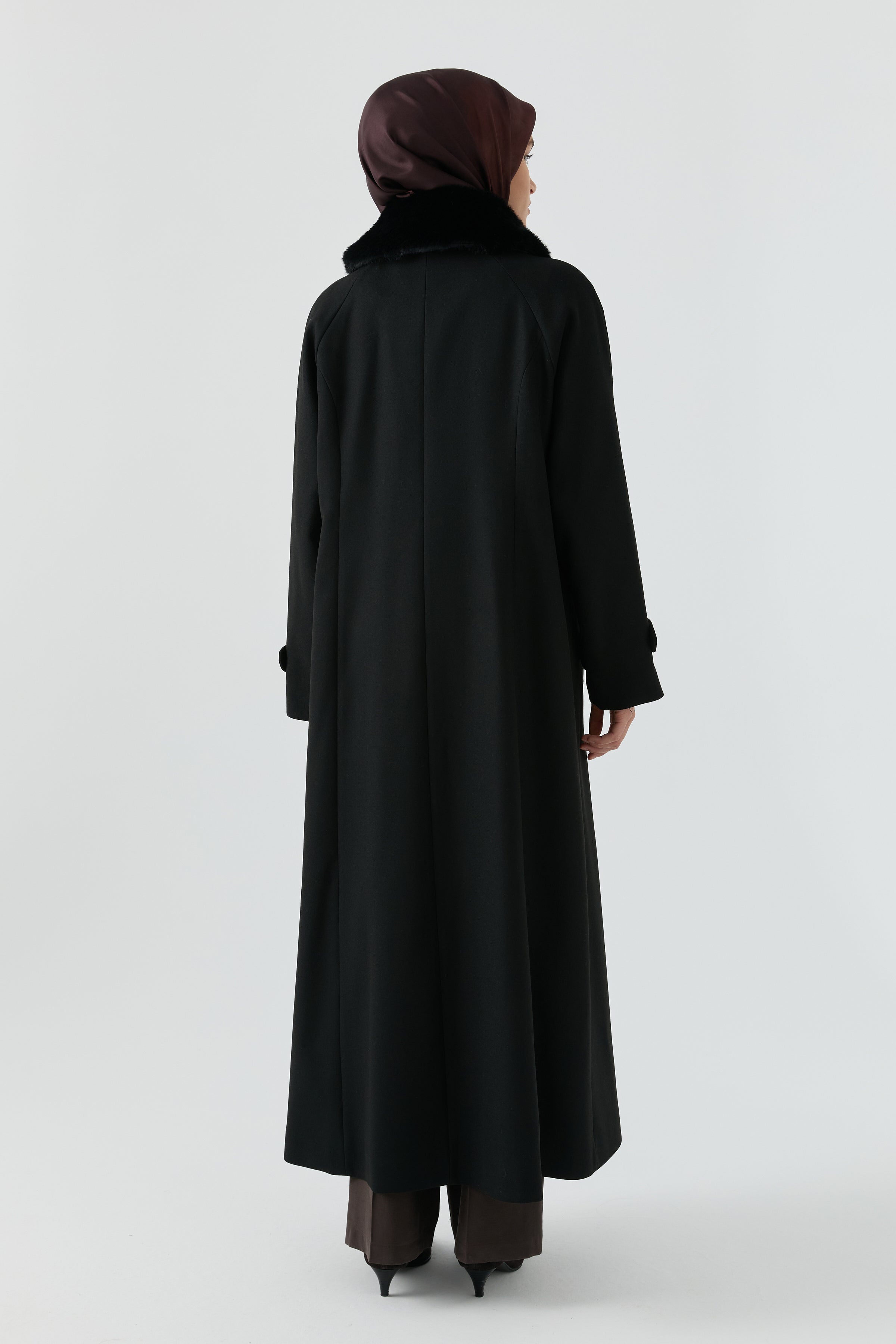 Abrigo de cachemira con mangas raglán de talla grande - Negro
