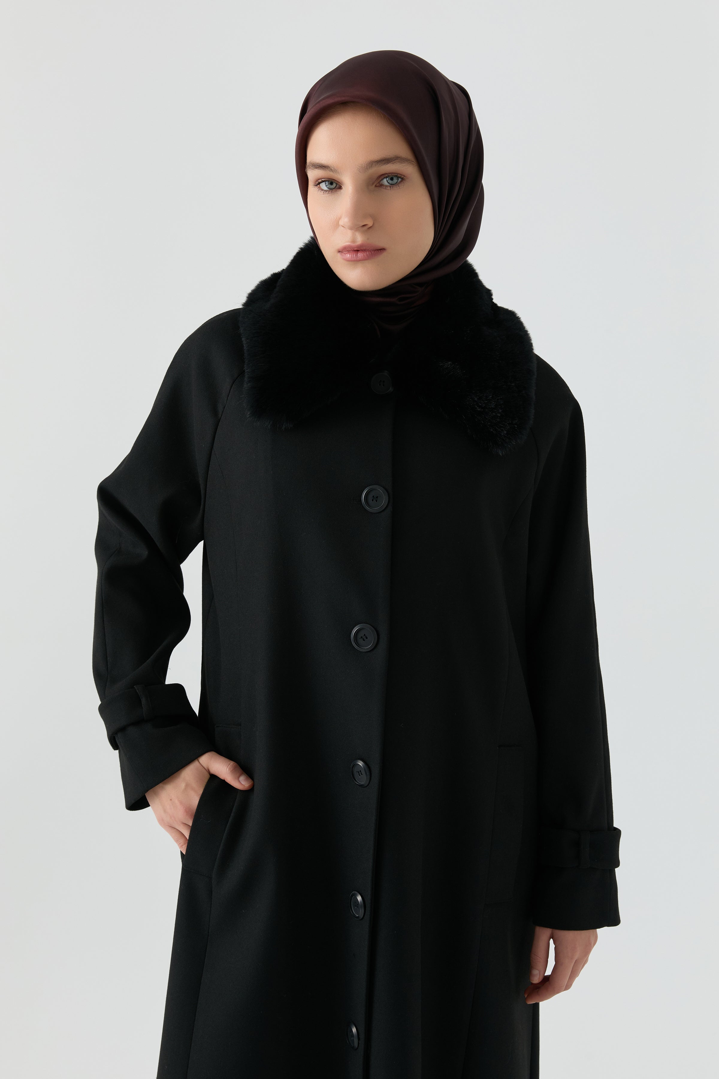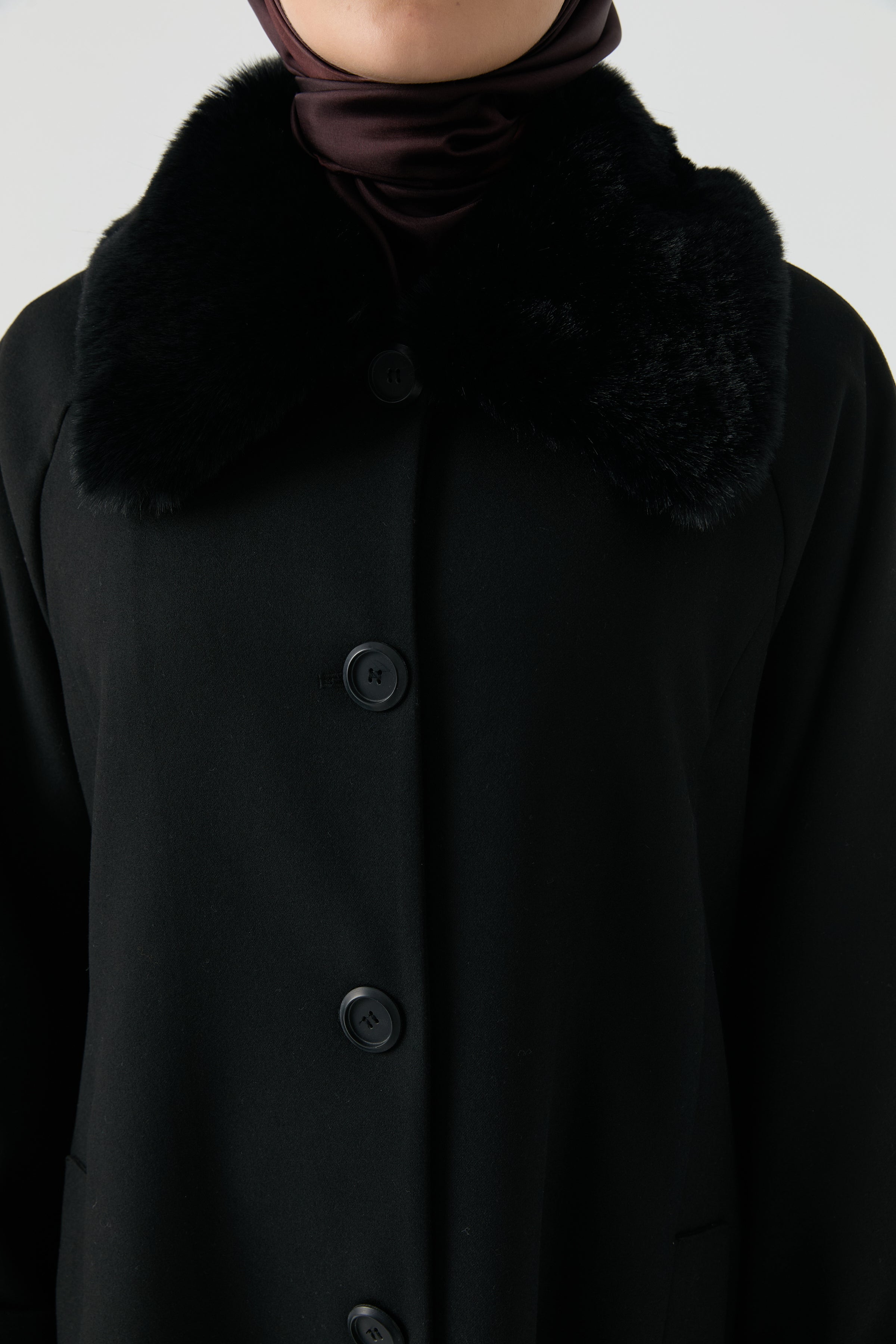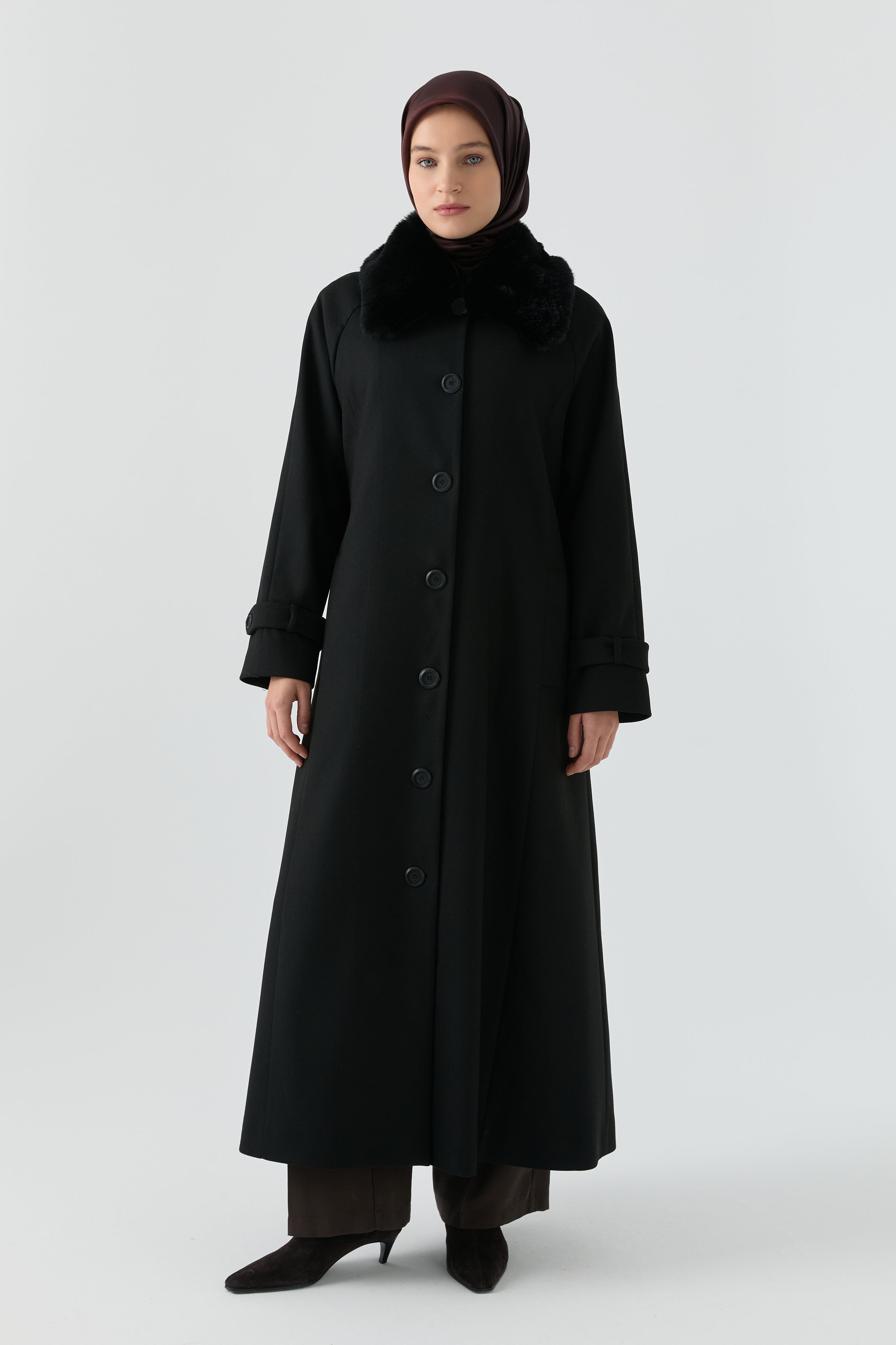 Abrigo de cachemira con mangas raglán de talla grande - Negro