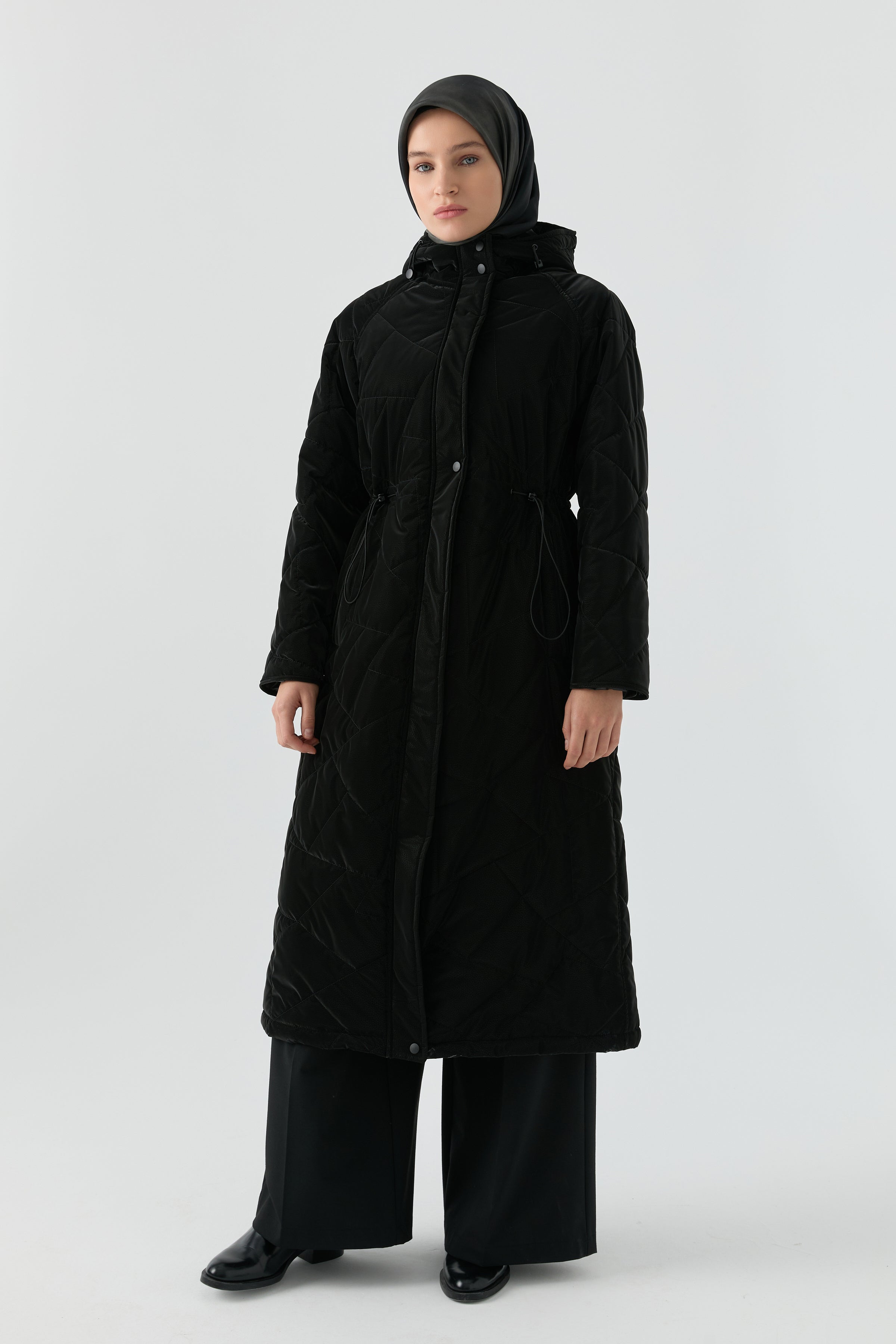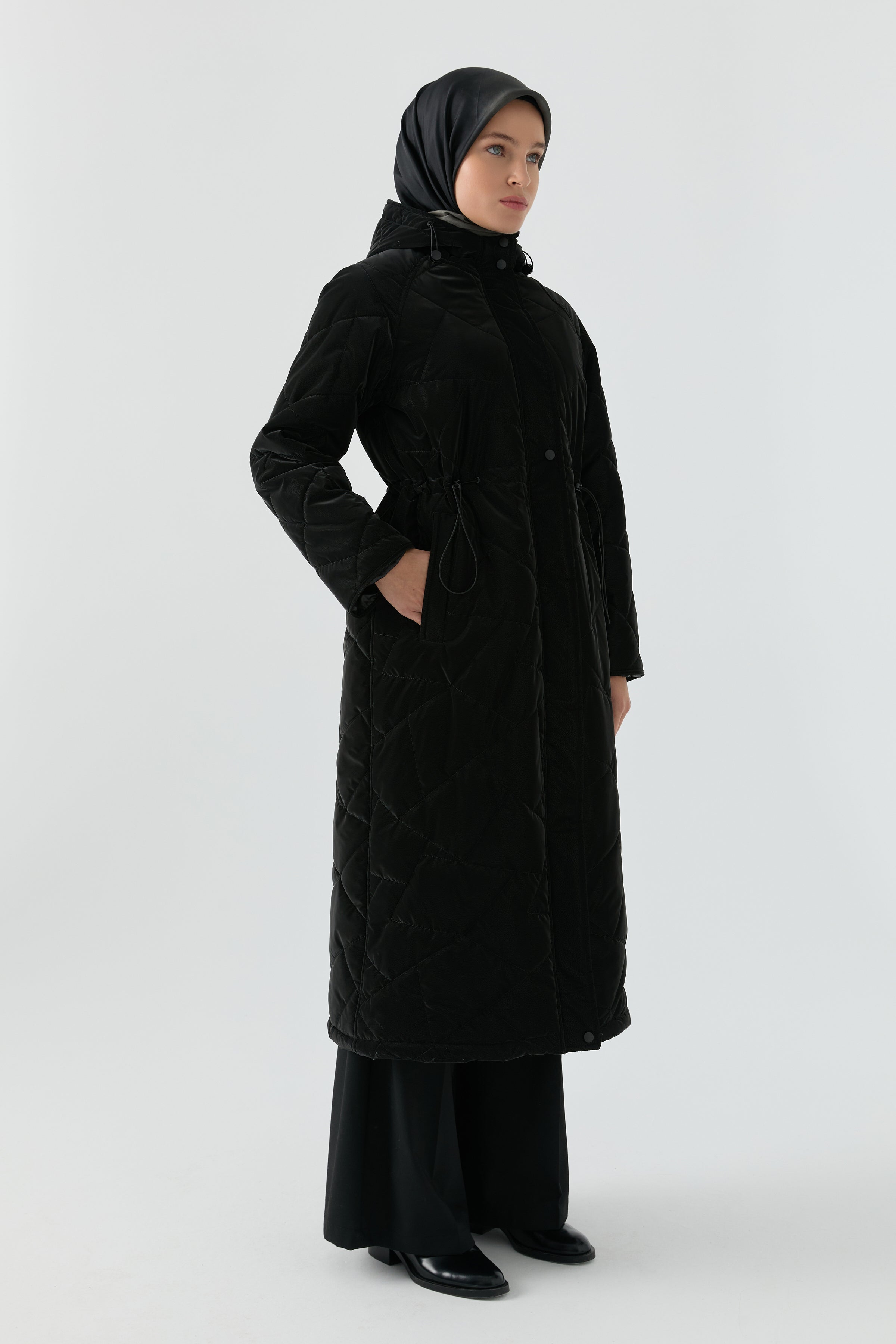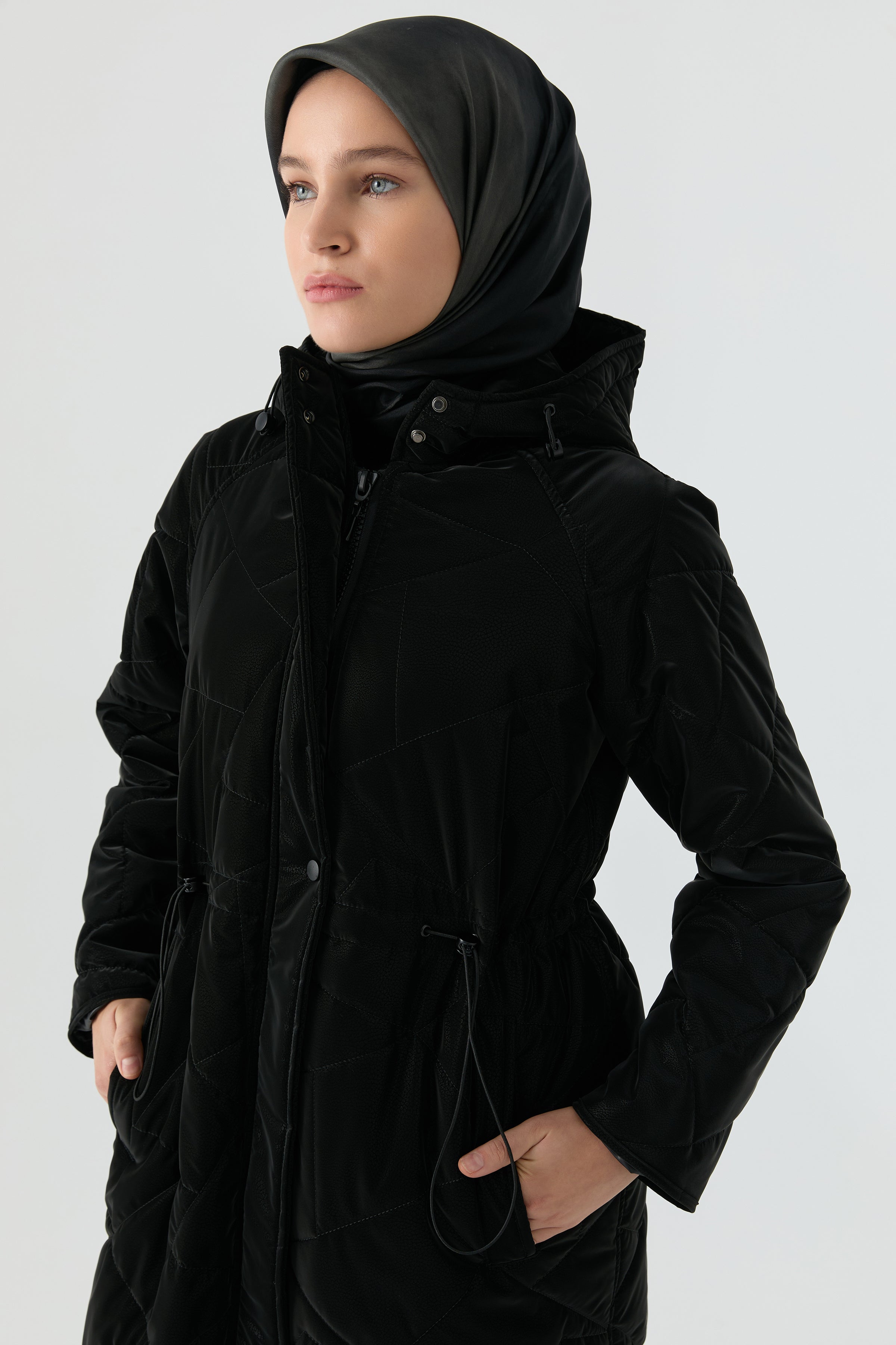 Este abrigo, con su llamativo acolchado de efecto fragmentado, ofrece una versión moderna y audaz del clásico diseño acolchado. Su silueta estructurada le aporta un toque urbano y atrevido, mientras que su textura ligera y cálida garantiza comodidad durante todo el año.