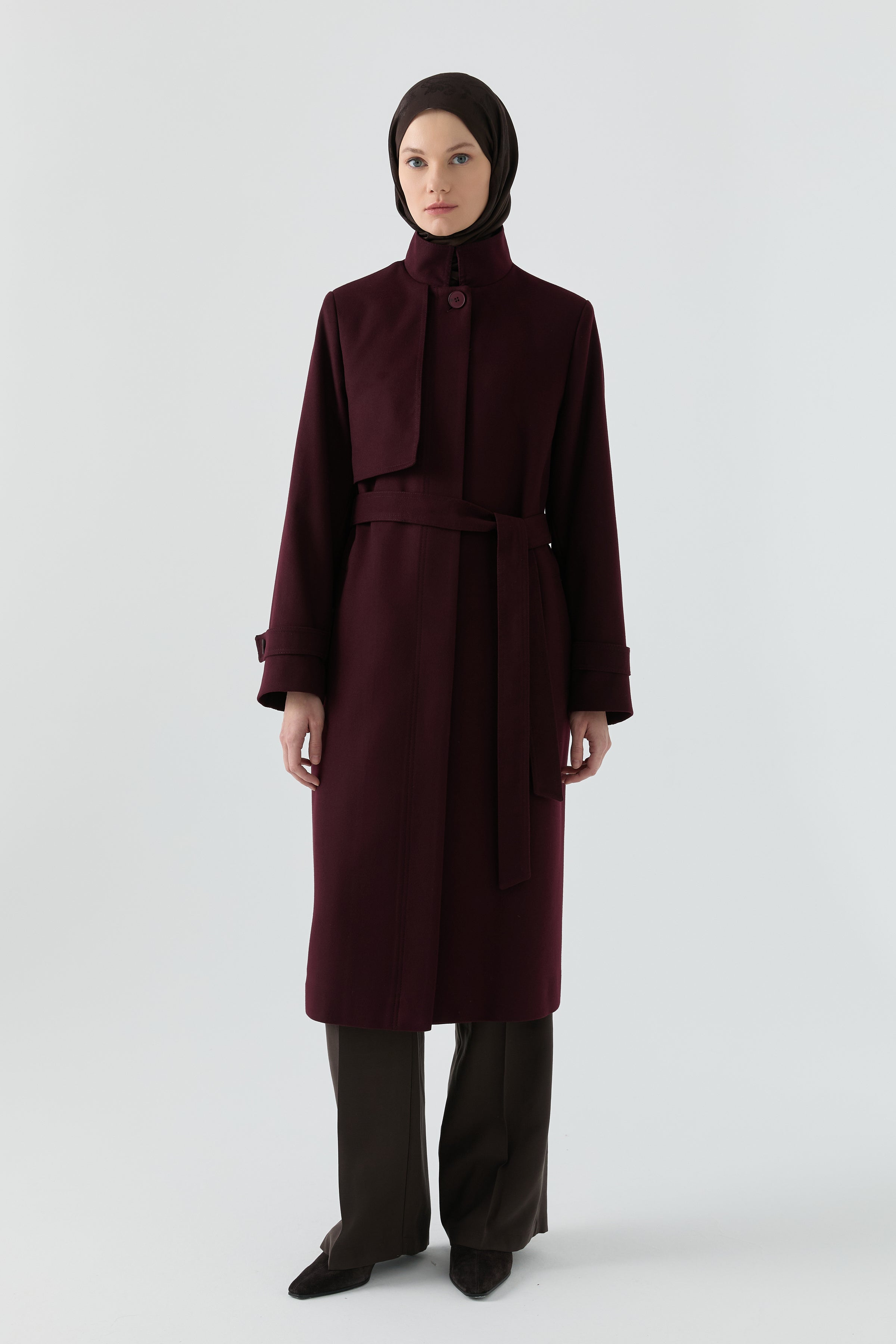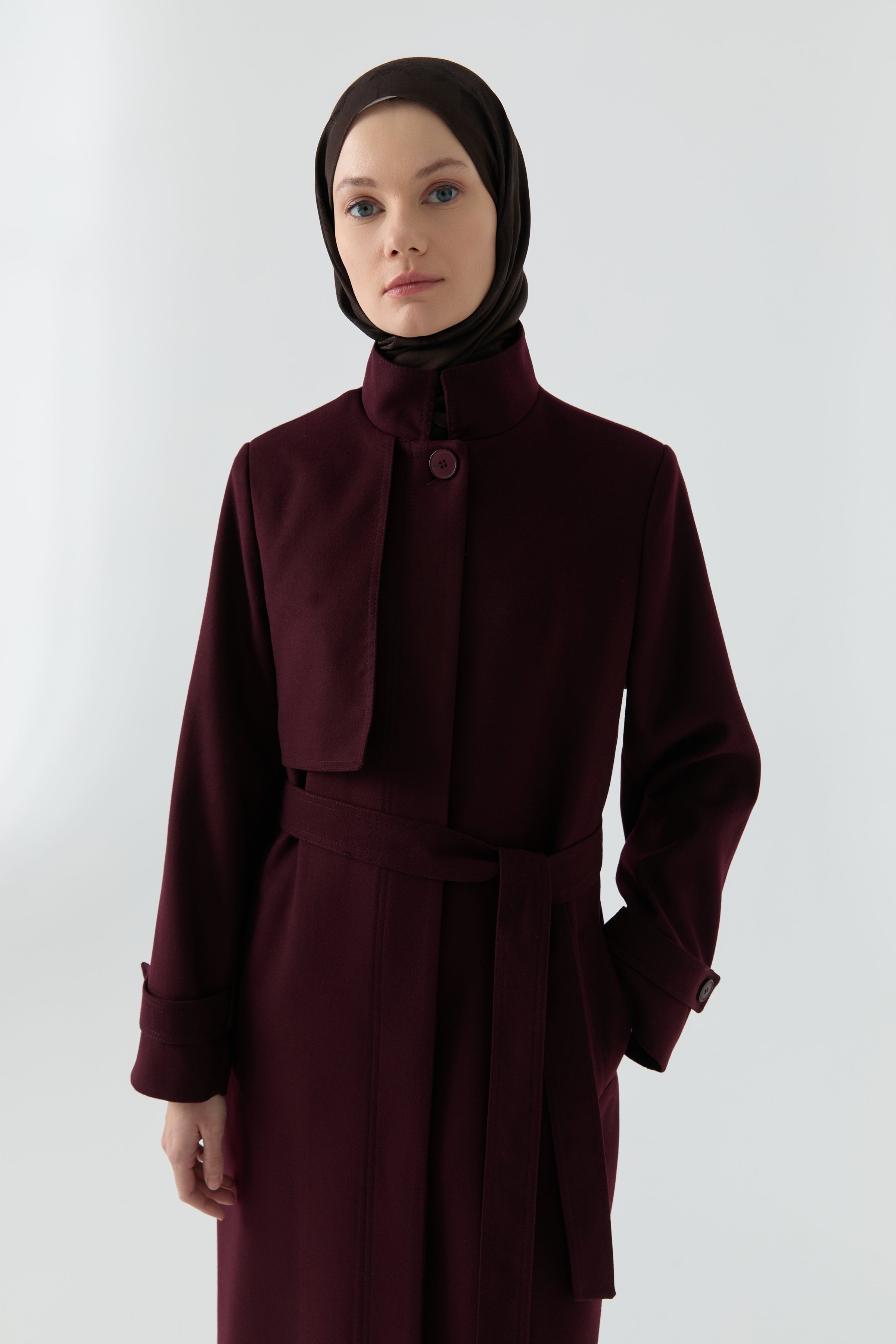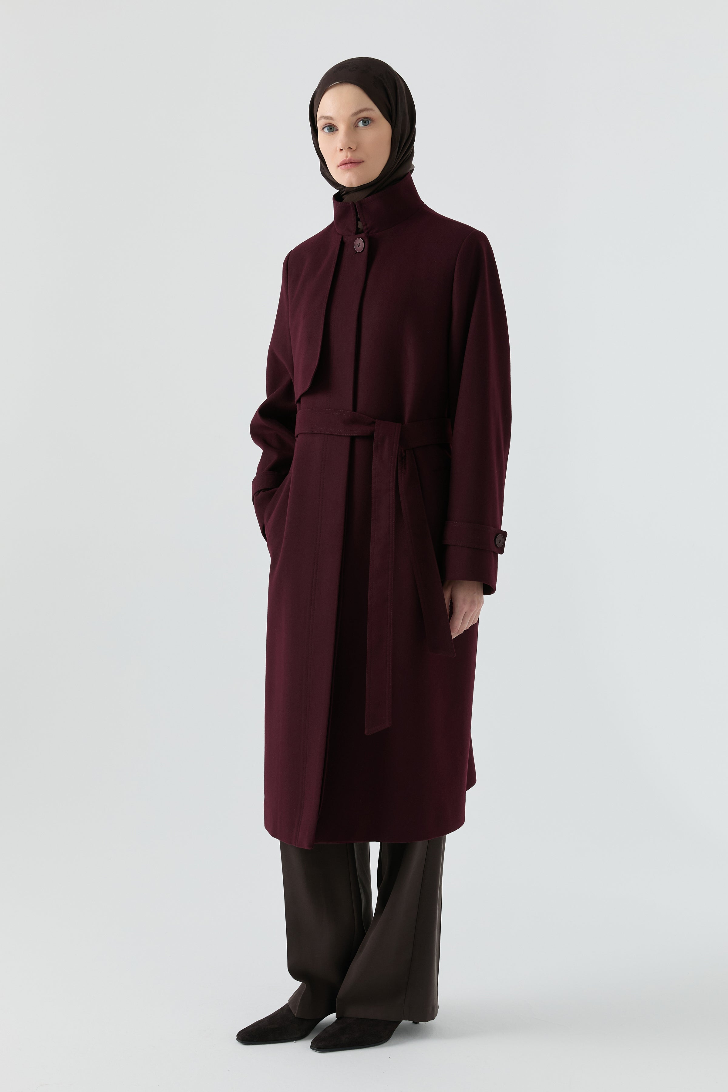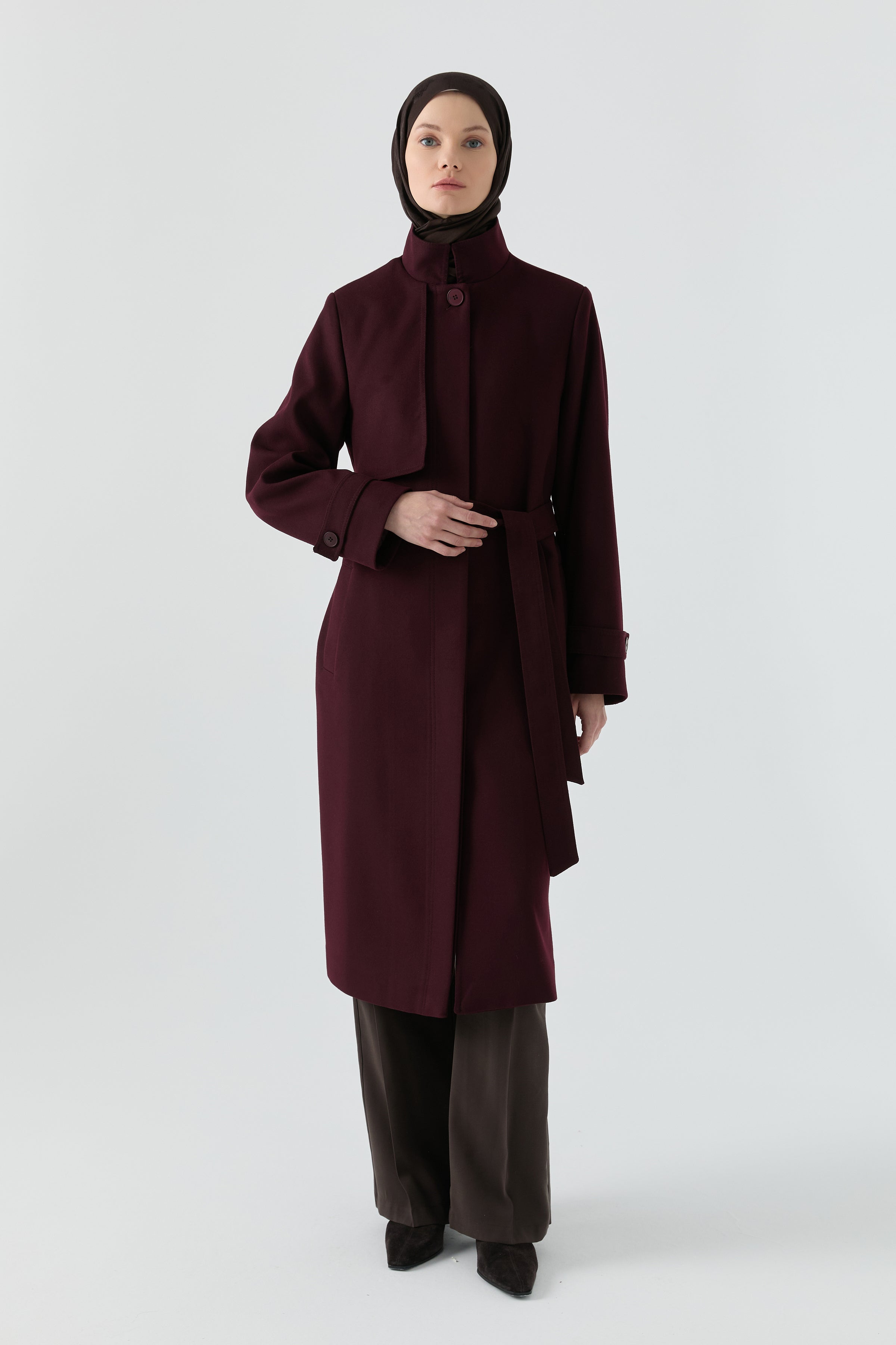 Abrigo con cuello alto - Ciruela