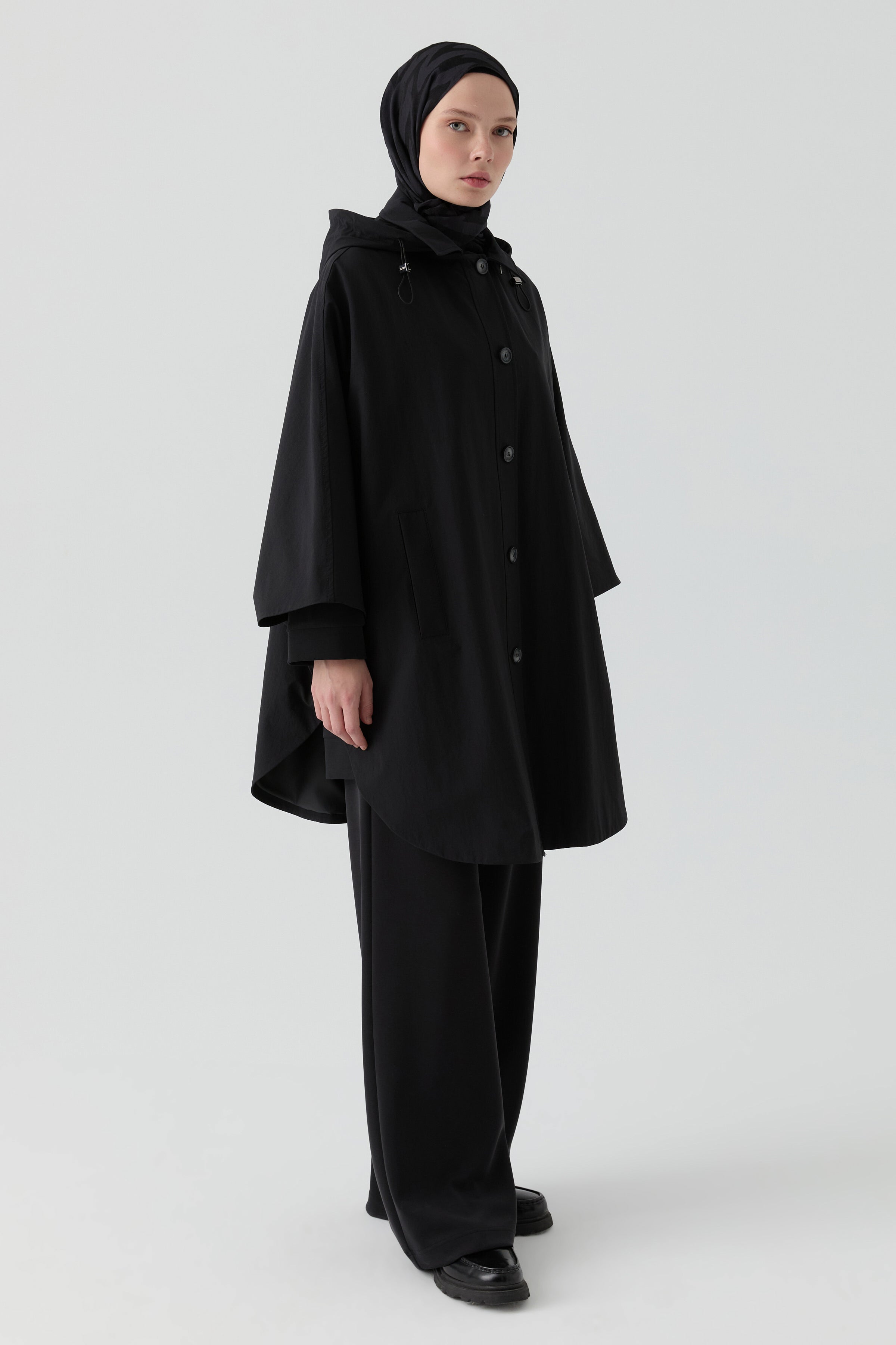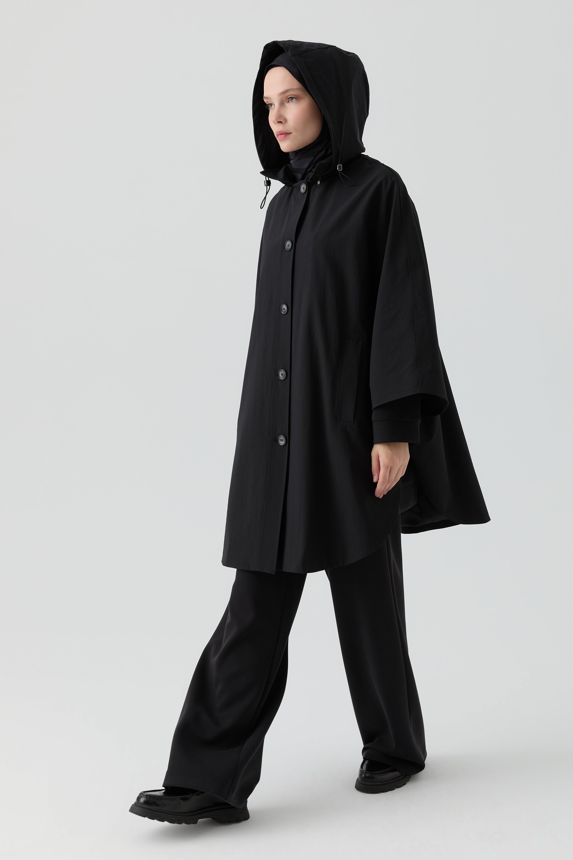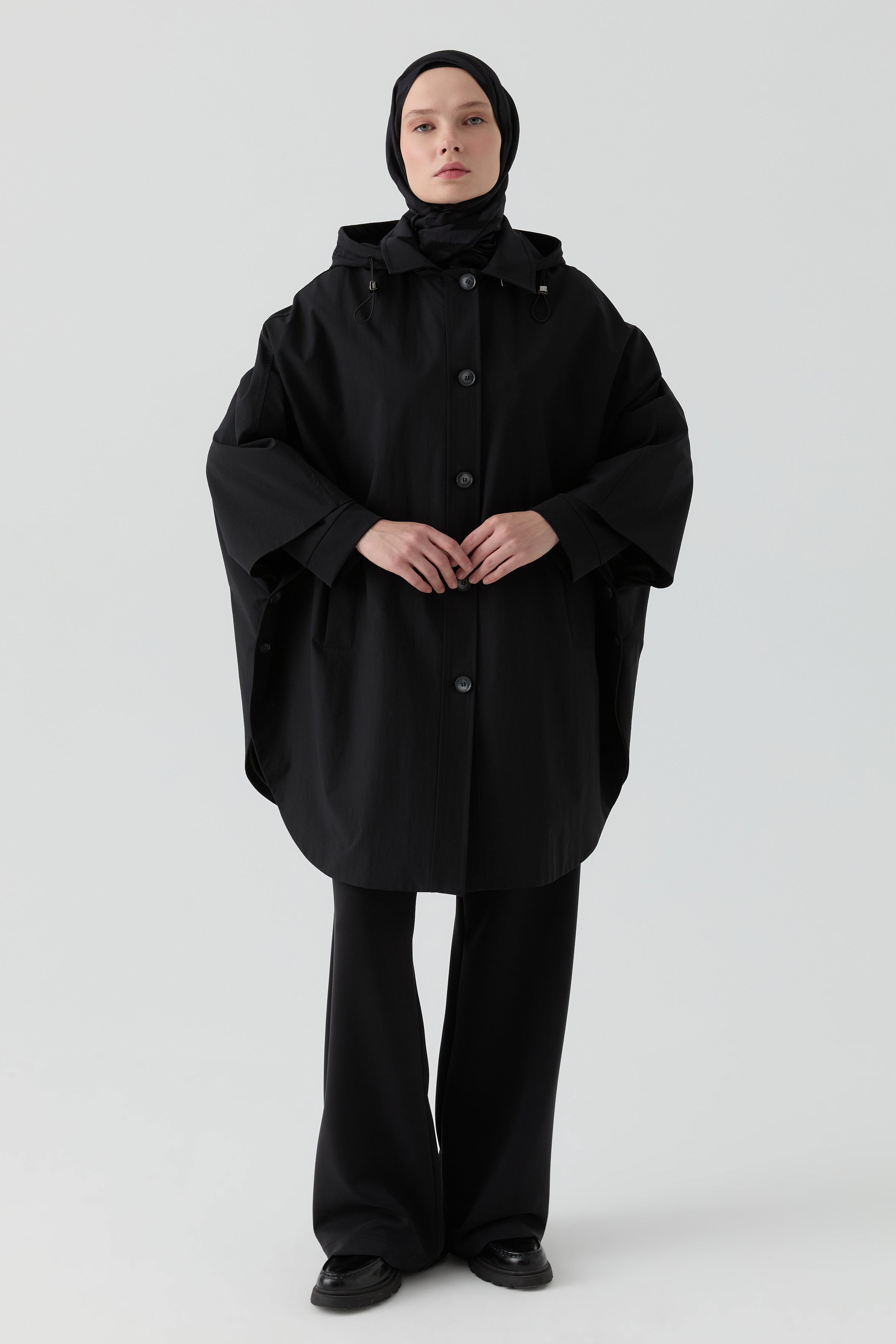 El poncho con capucha ofrece un estilo moderno y cómodo gracias a su textura suave y su detalle de capucha. Es una prenda versátil que puedes usar fácilmente tanto para looks de diario como para actividades de fin de semana.
