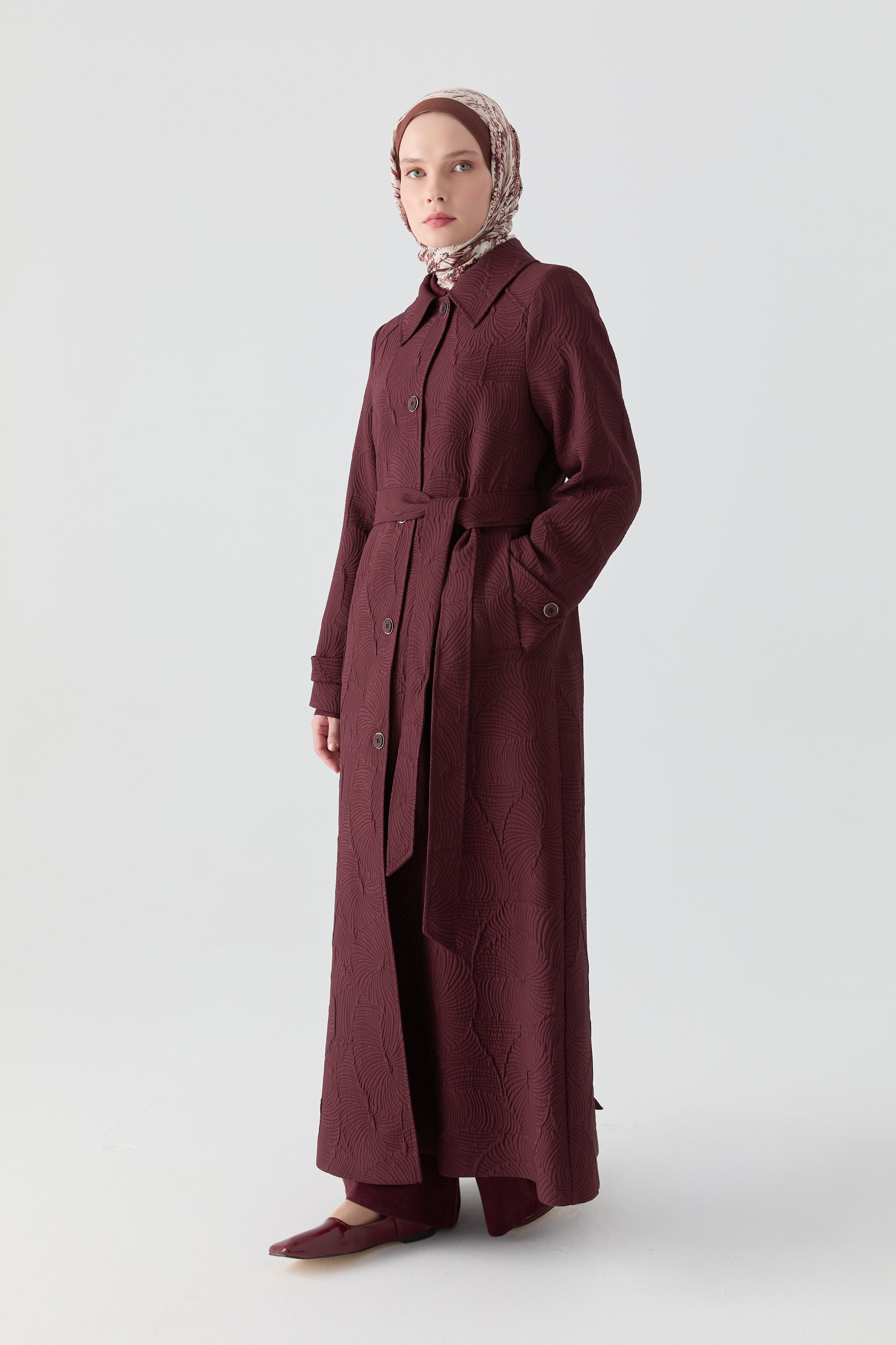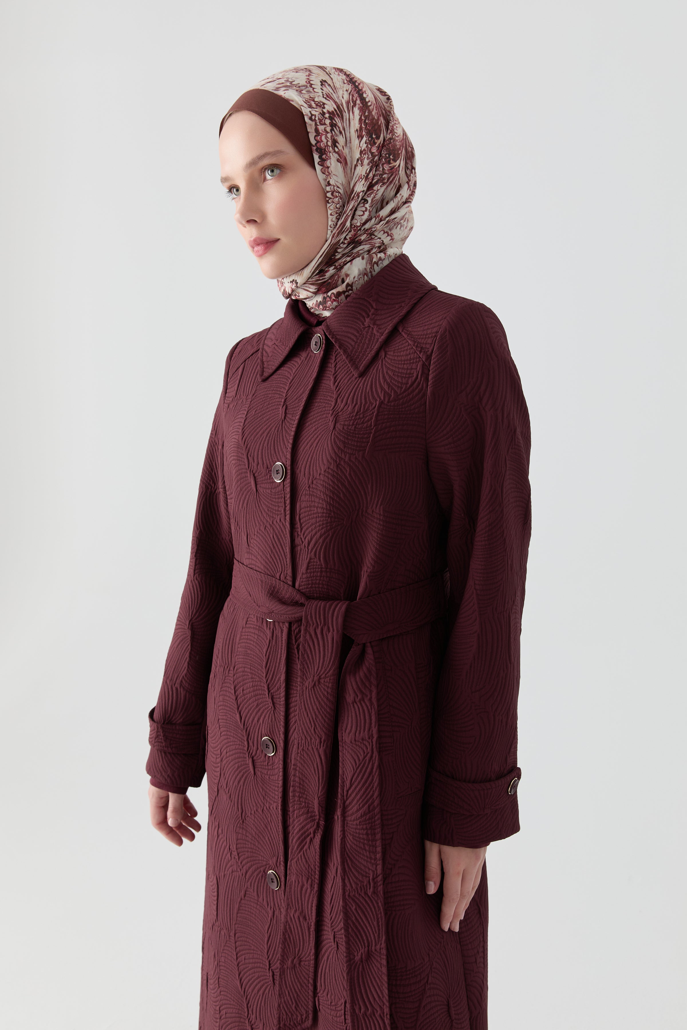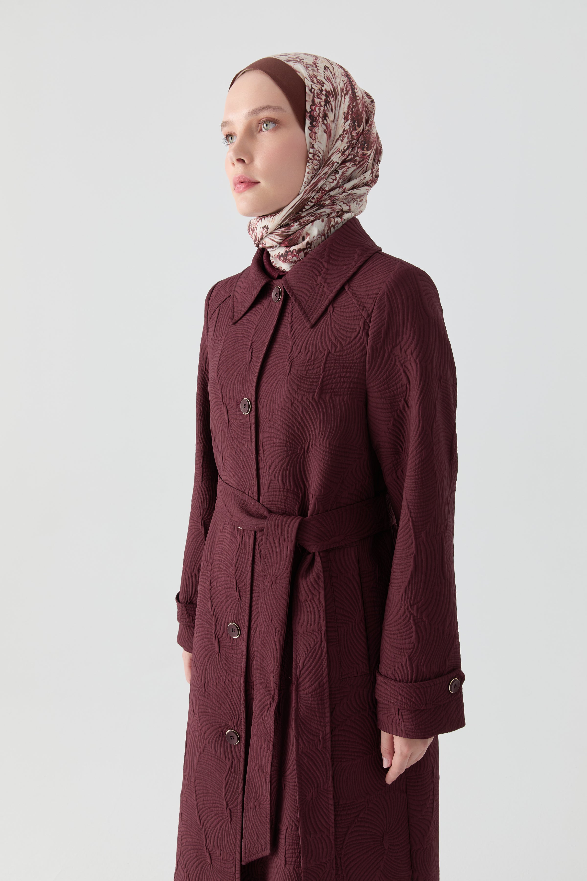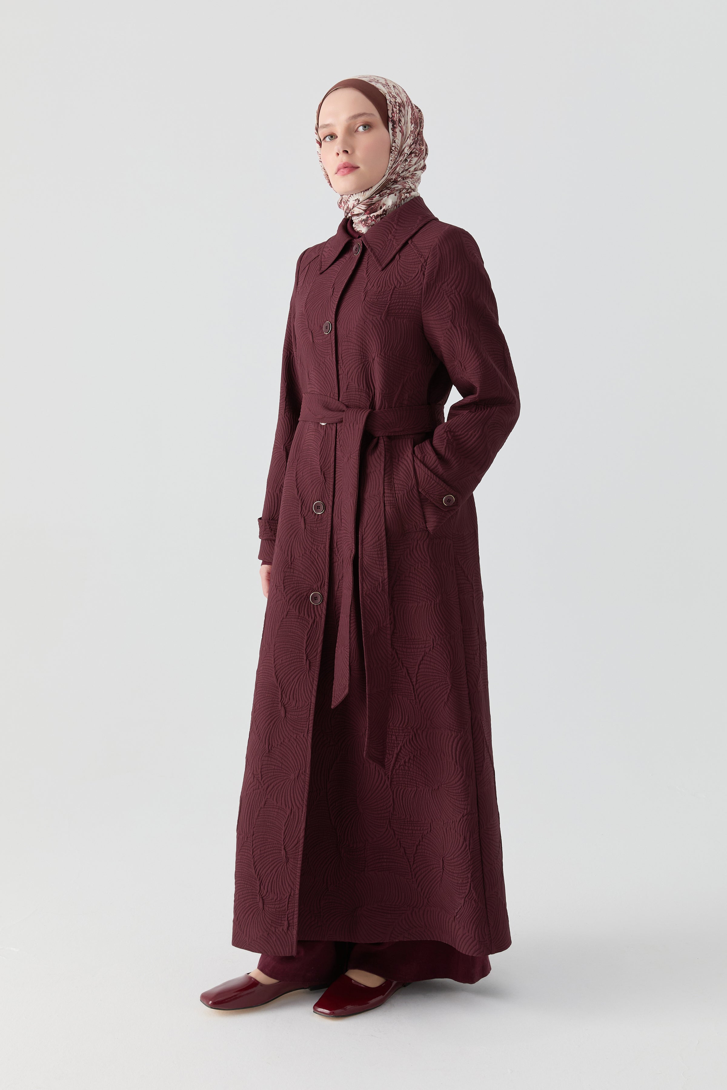 Abrigo acolchado con detalle de brazalete - Ciruela