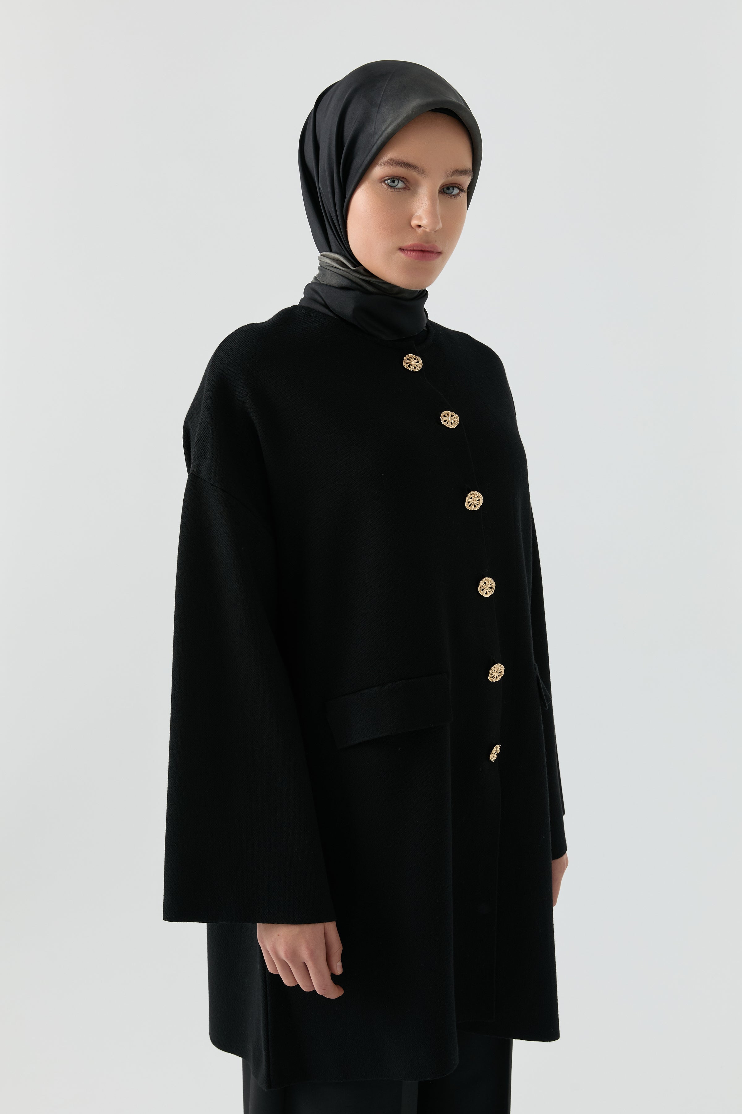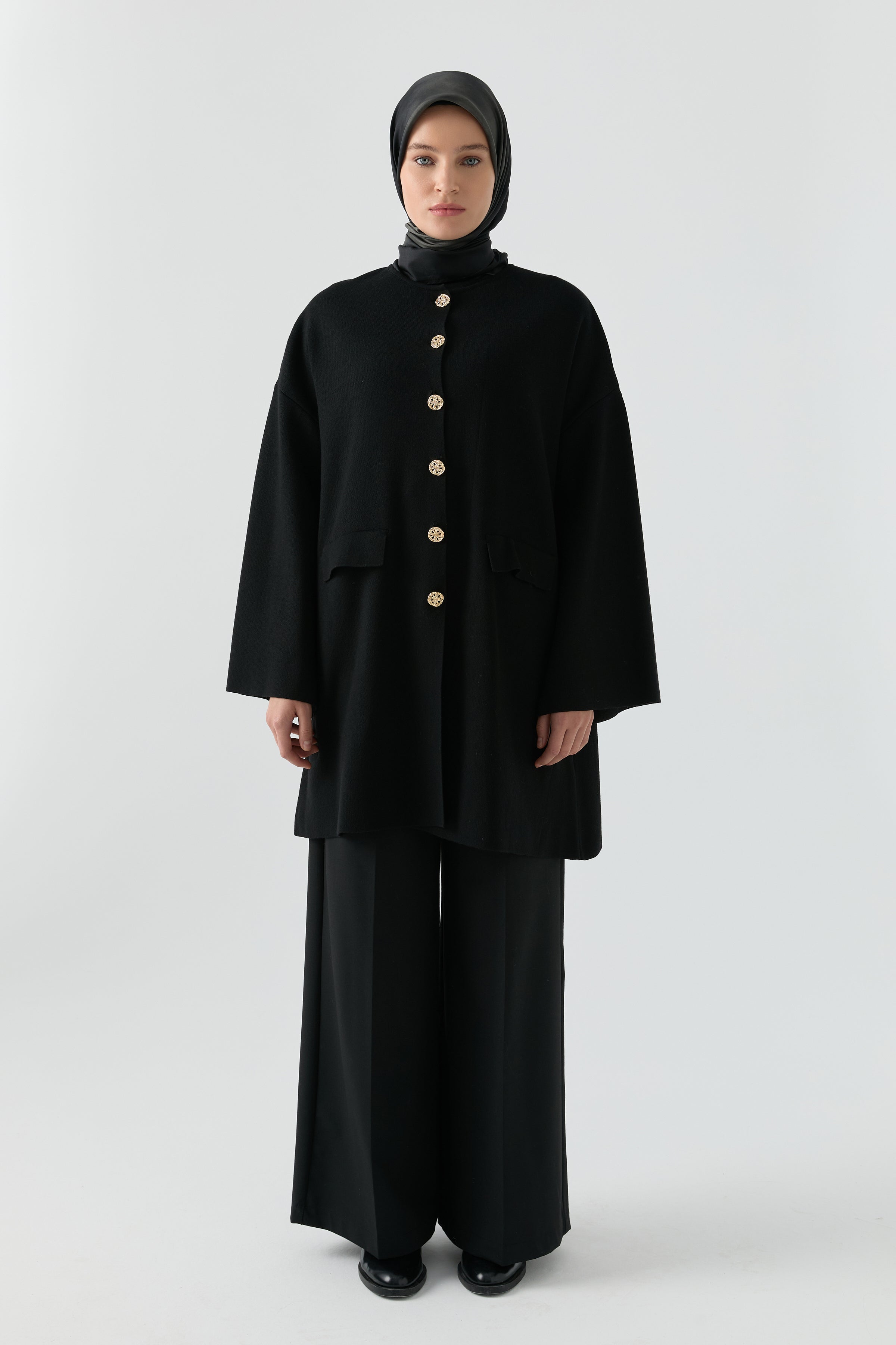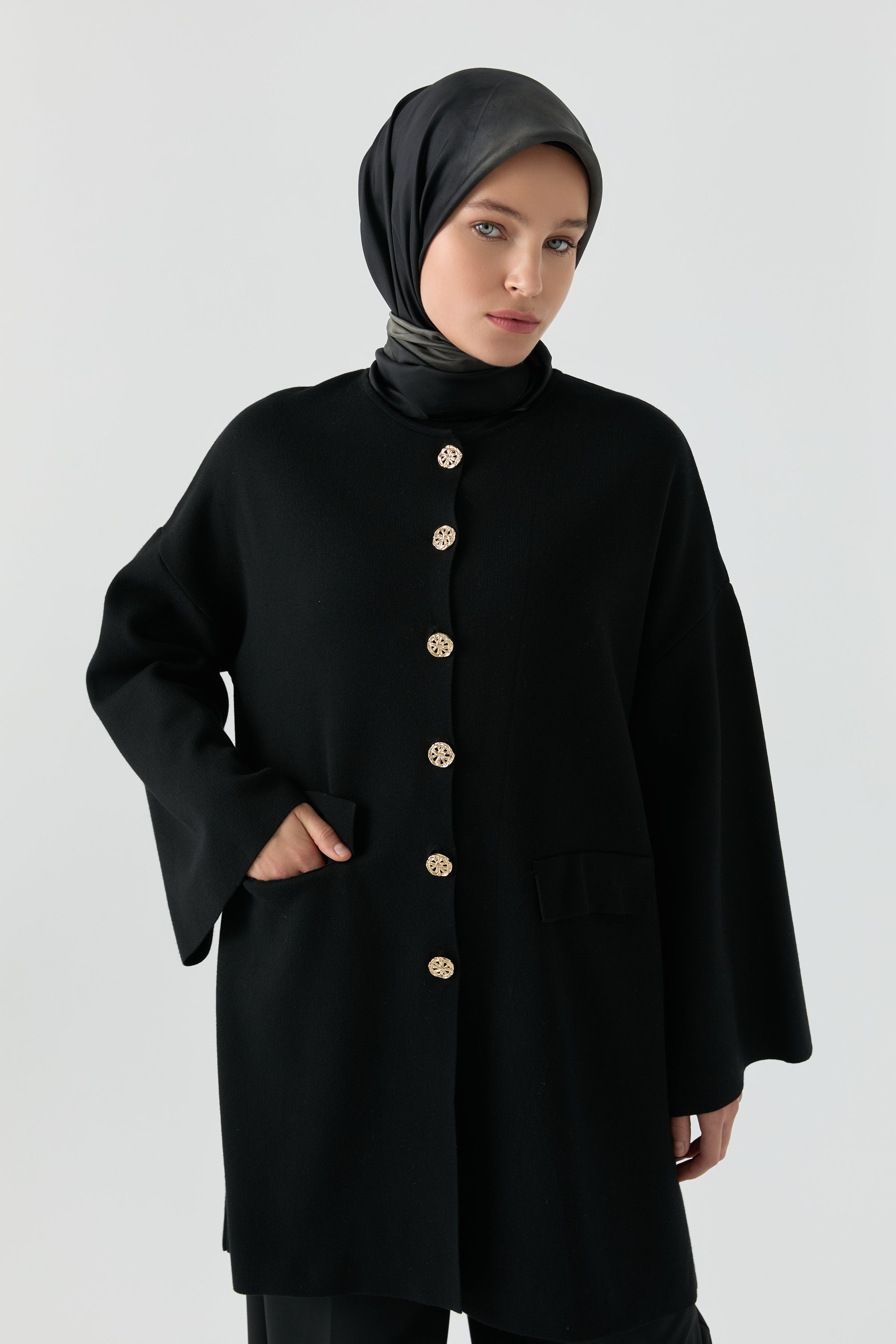 Este cárdigan, con sus botones dorados, añade un toque de sofisticación a su silueta minimalista. Su textura suave garantiza comodidad durante todo el día, mientras que el sutil brillo de los detalles dorados crea un look sofisticado que realza incluso los conjuntos más sencillos.