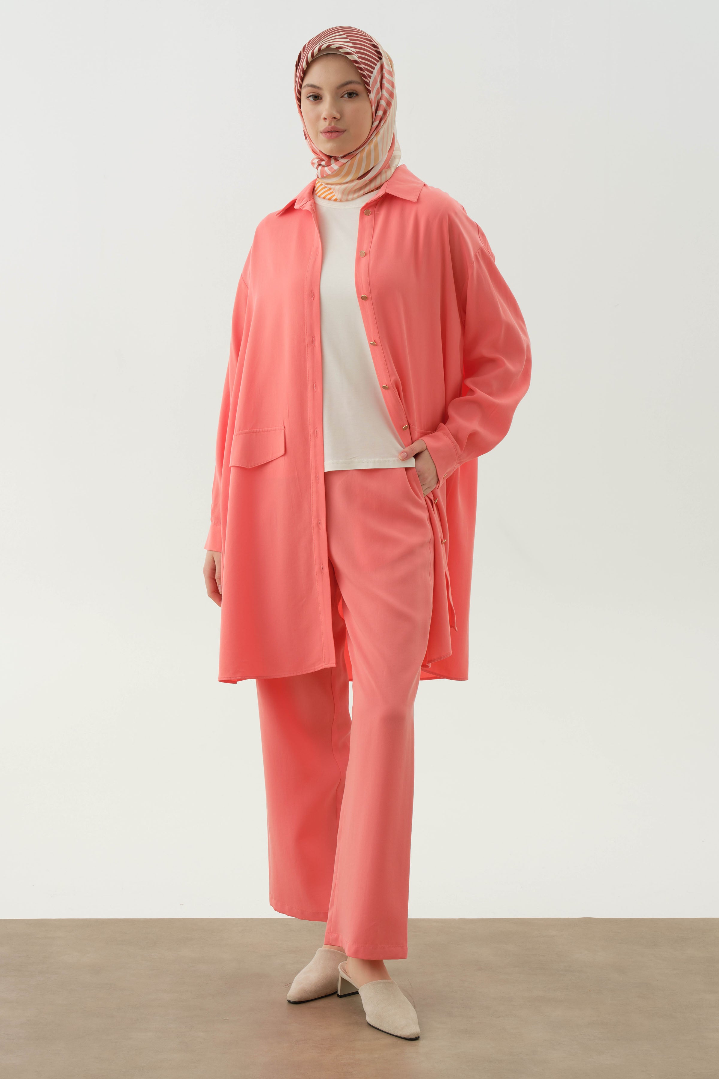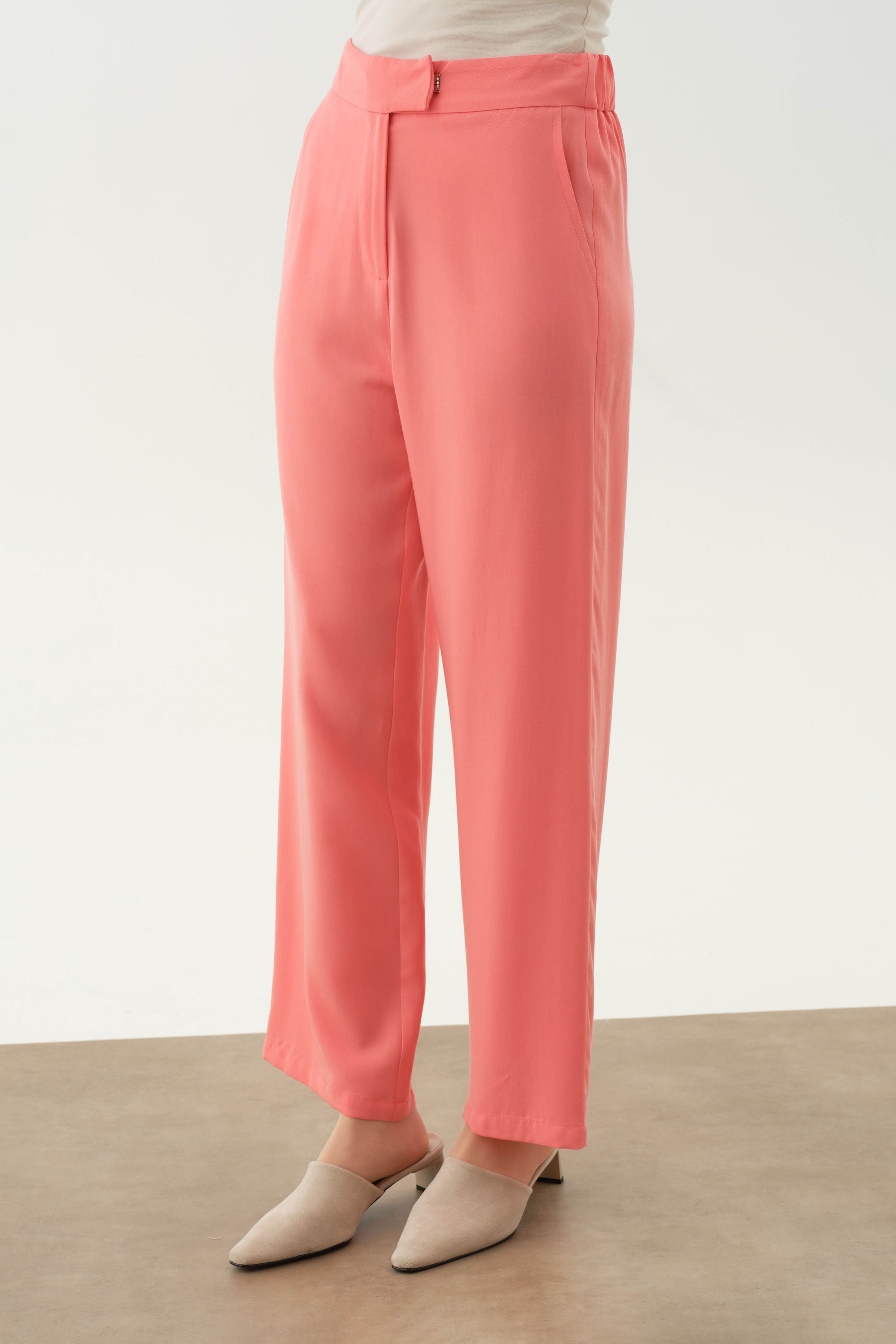 Pantalones con cintura elástica en la espalda - Coral