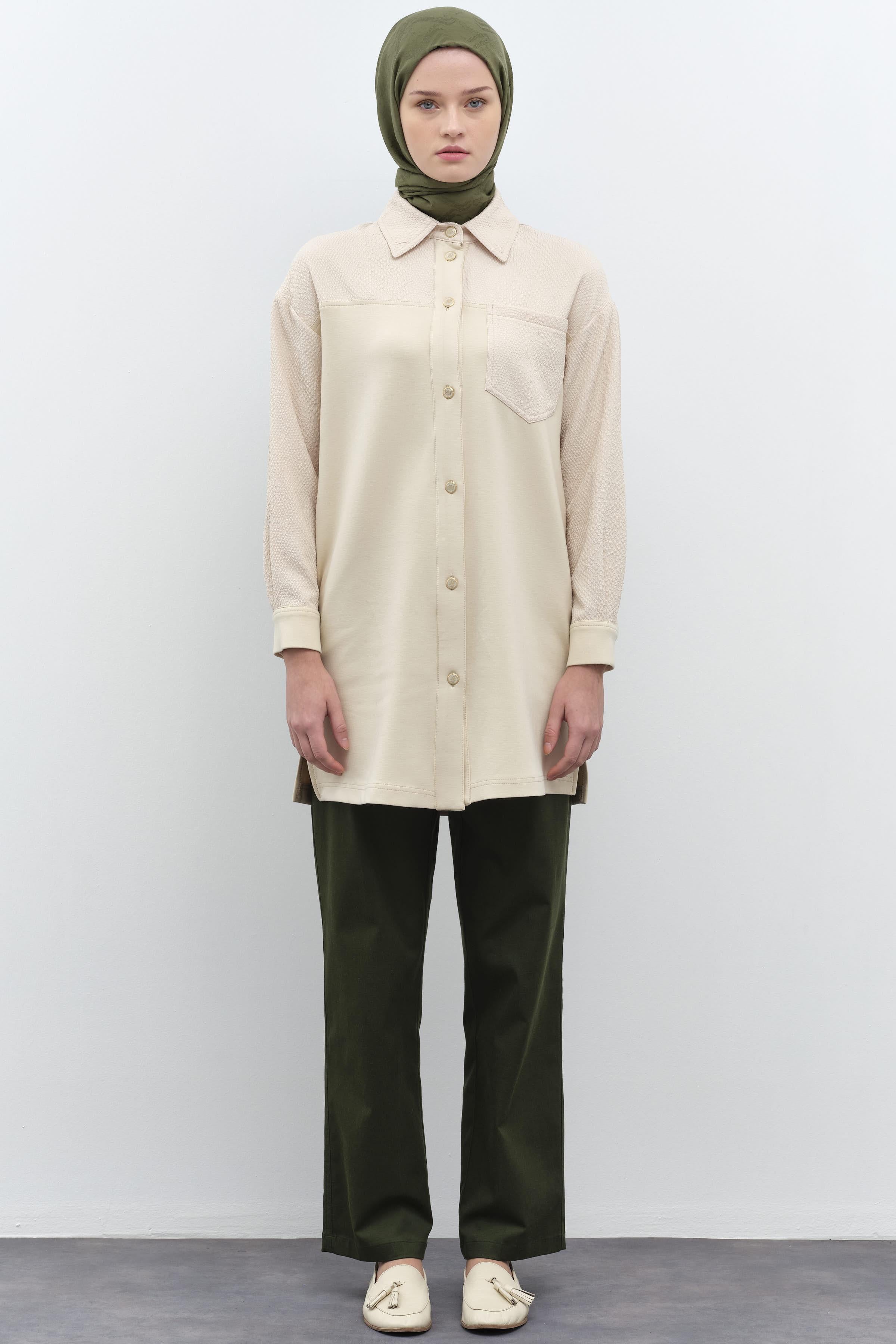 Composición del tejido: 61 % lyocell, 36 % algodón, 3 % elastano.