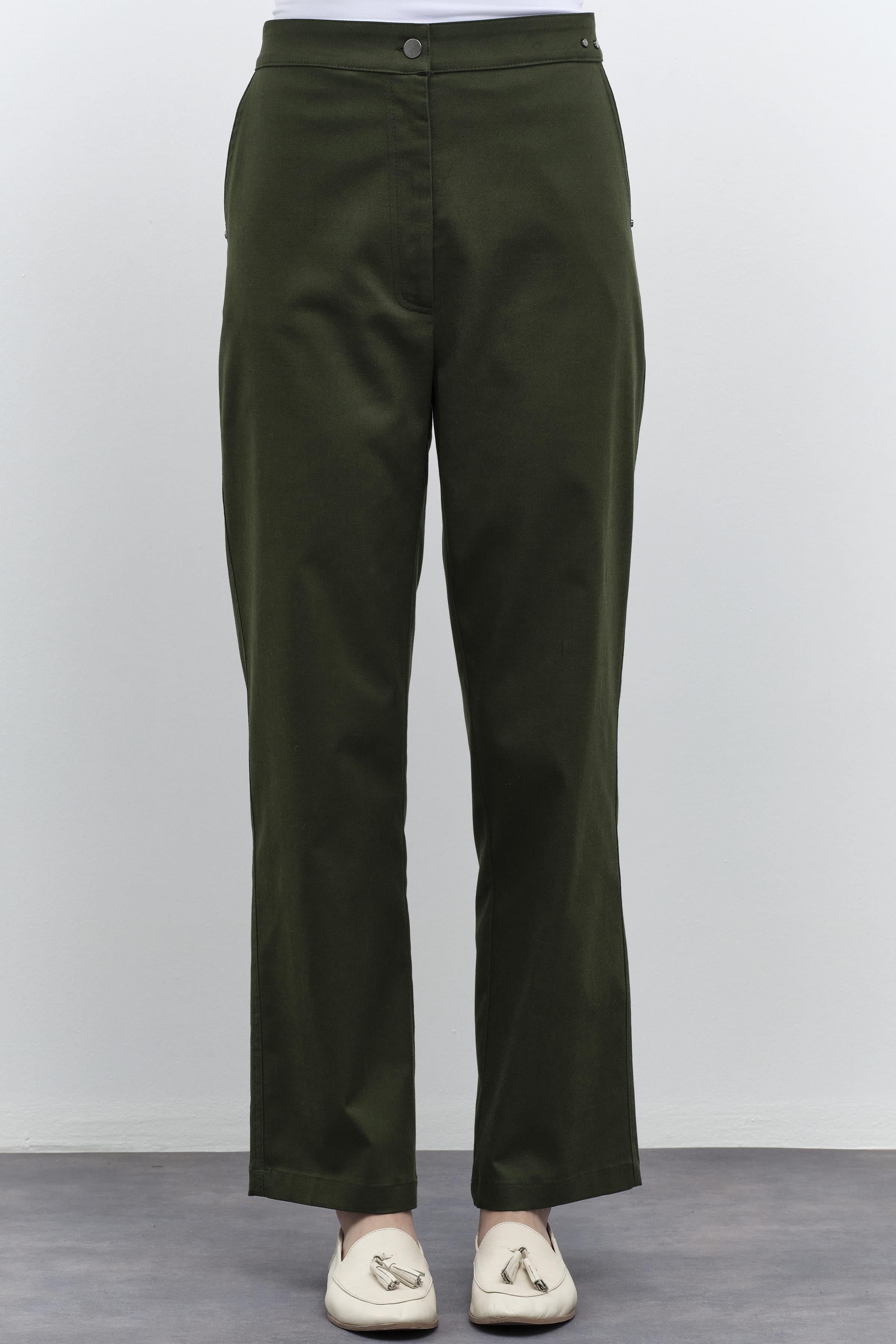 Los pantalones de lona con detalles de remaches se destacan por su estructura resistente y sus elegantes detalles. Los detalles de remaches metálicos en los pantalones añaden un aire moderno y fuerte al diseño. Es duradero y cómodo gracias a su tejido de lona. Una pieza ideal para combinaciones diarias y casuales.