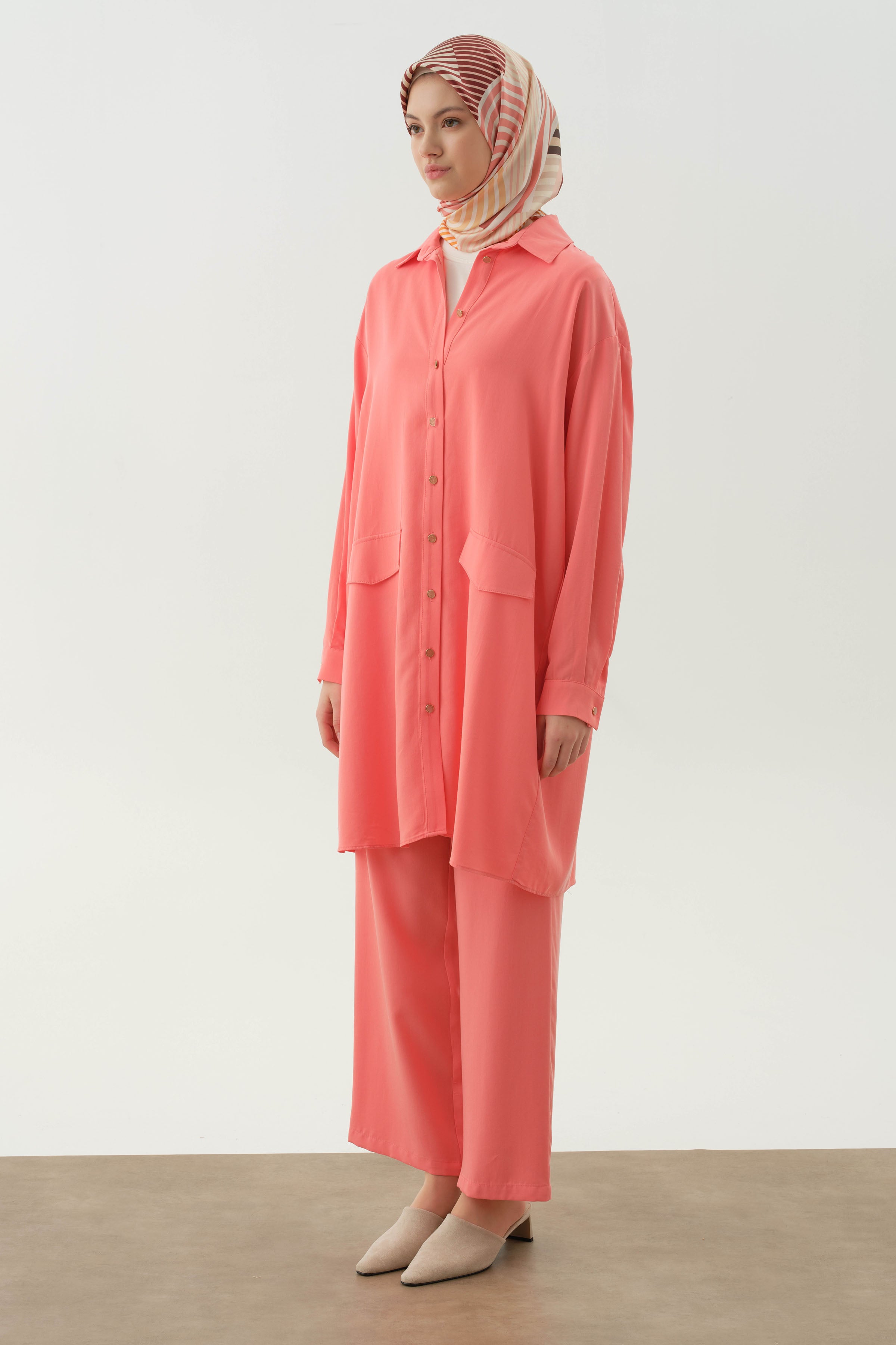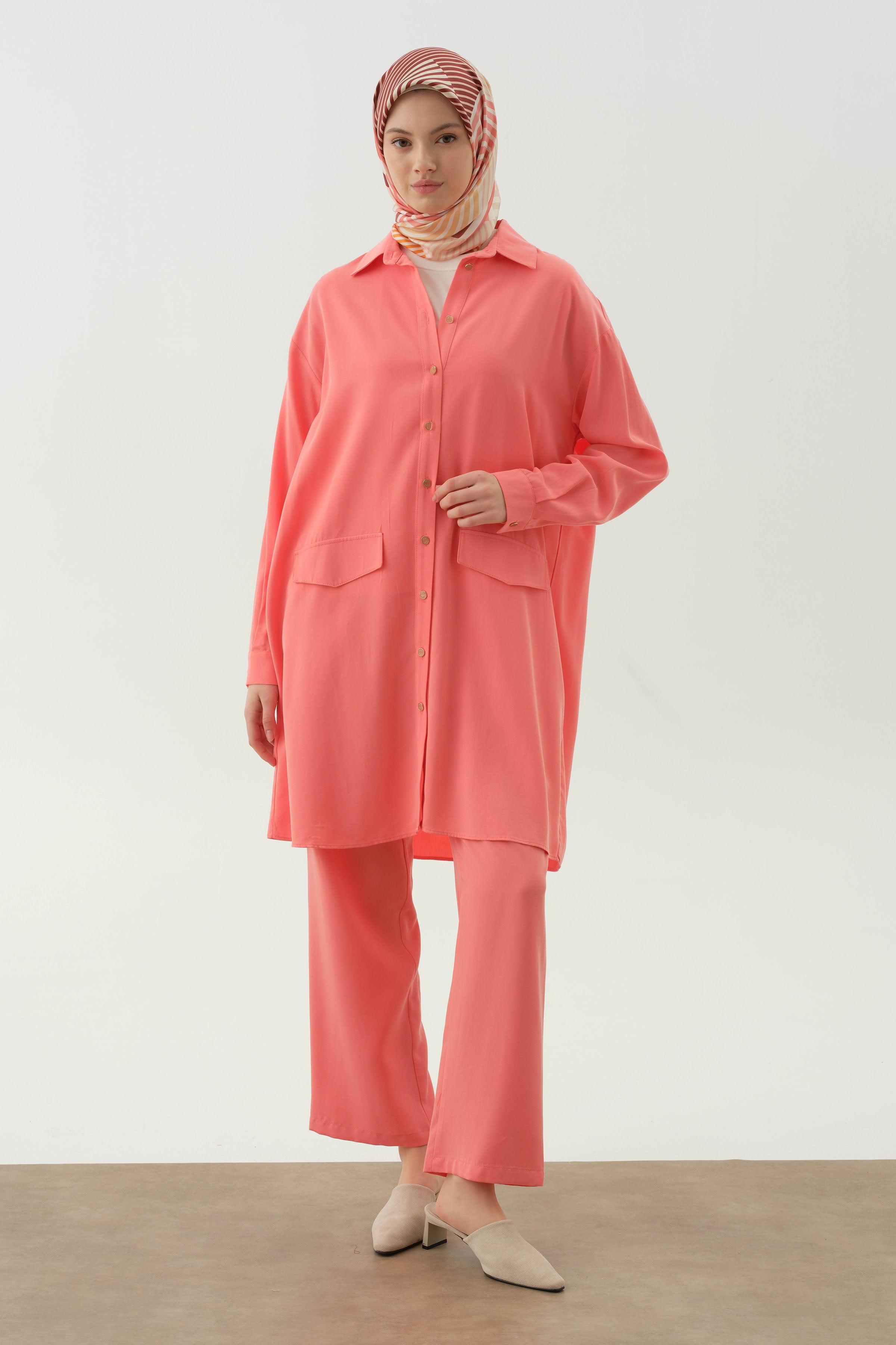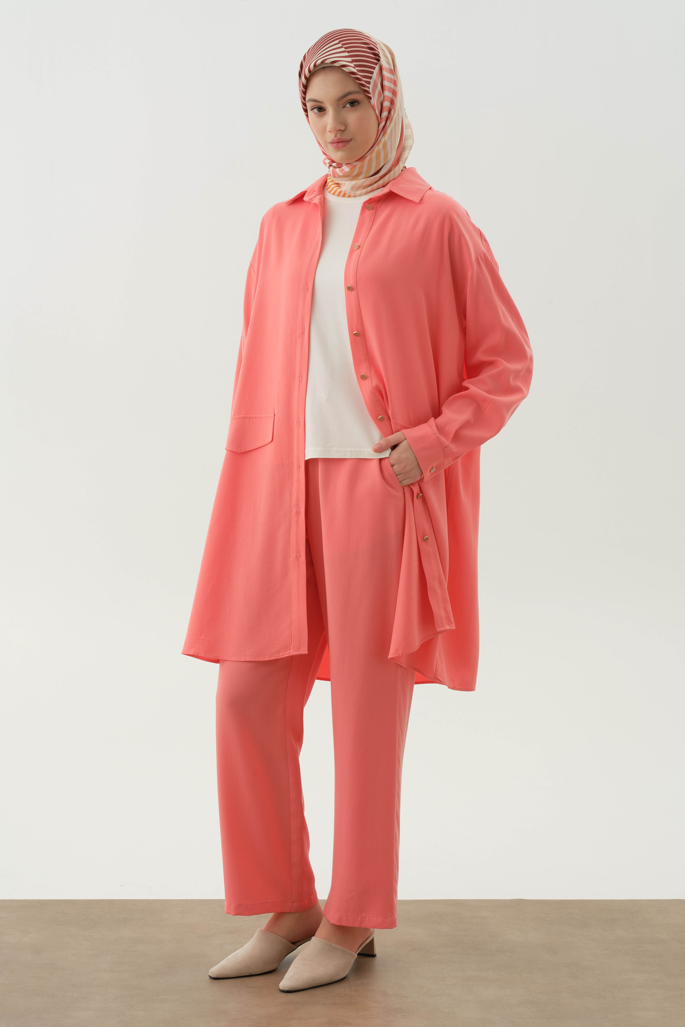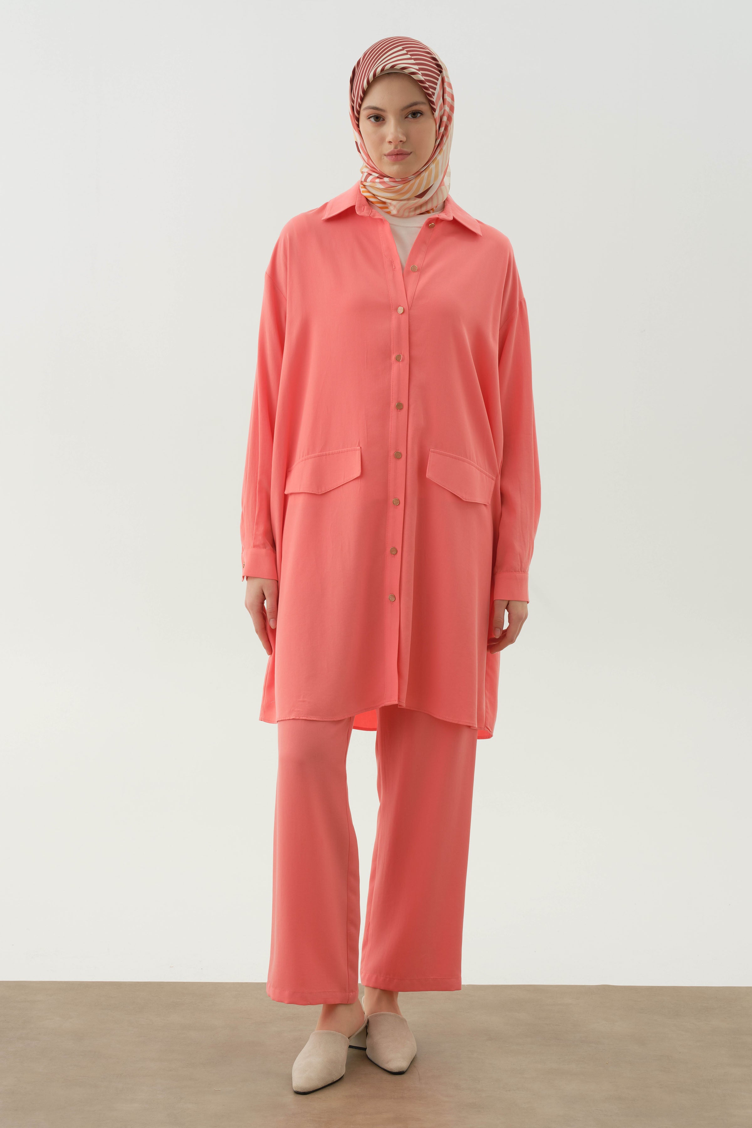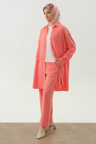 Conjunto de túnica larga con blusa de punto - Coral