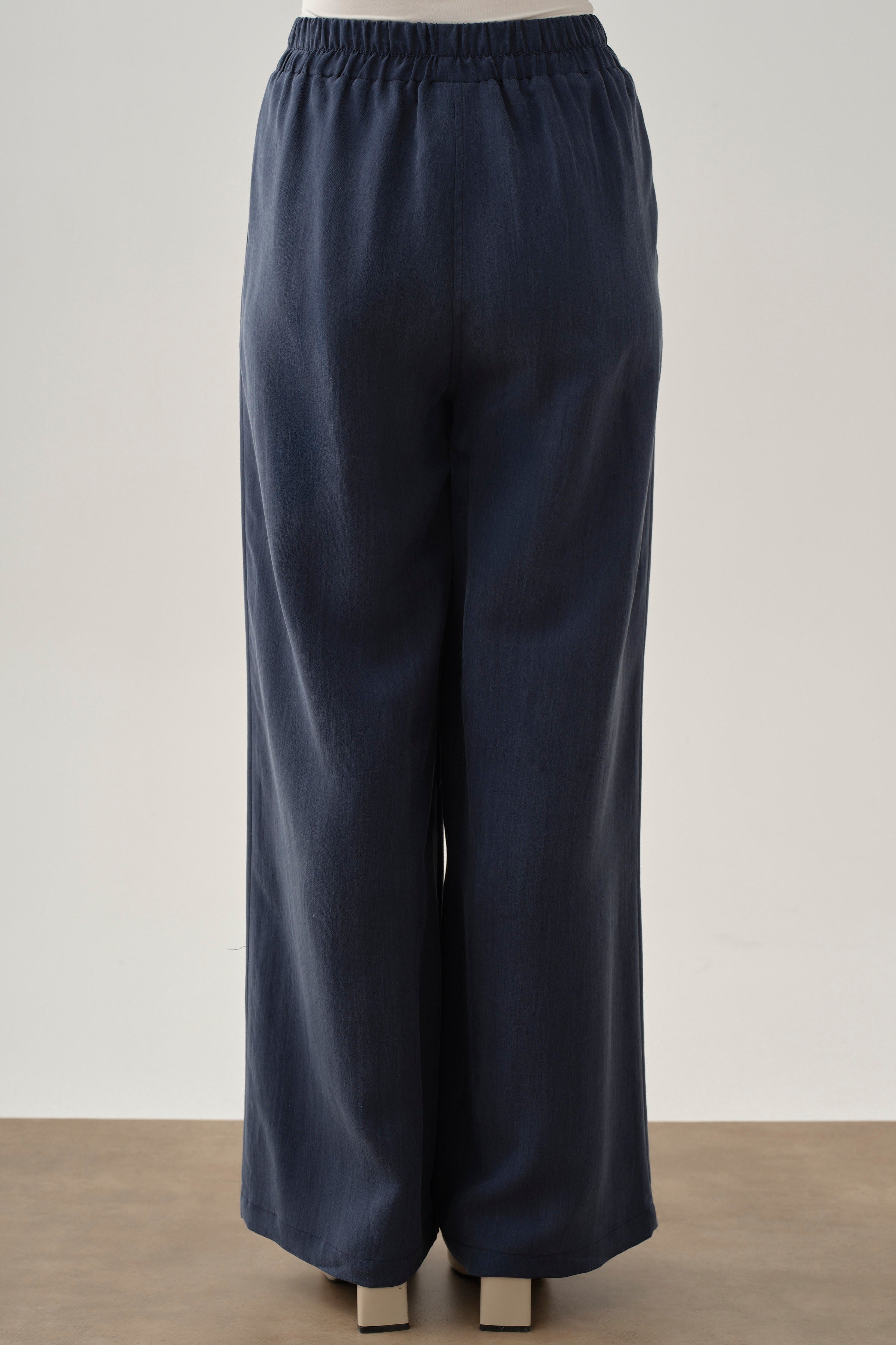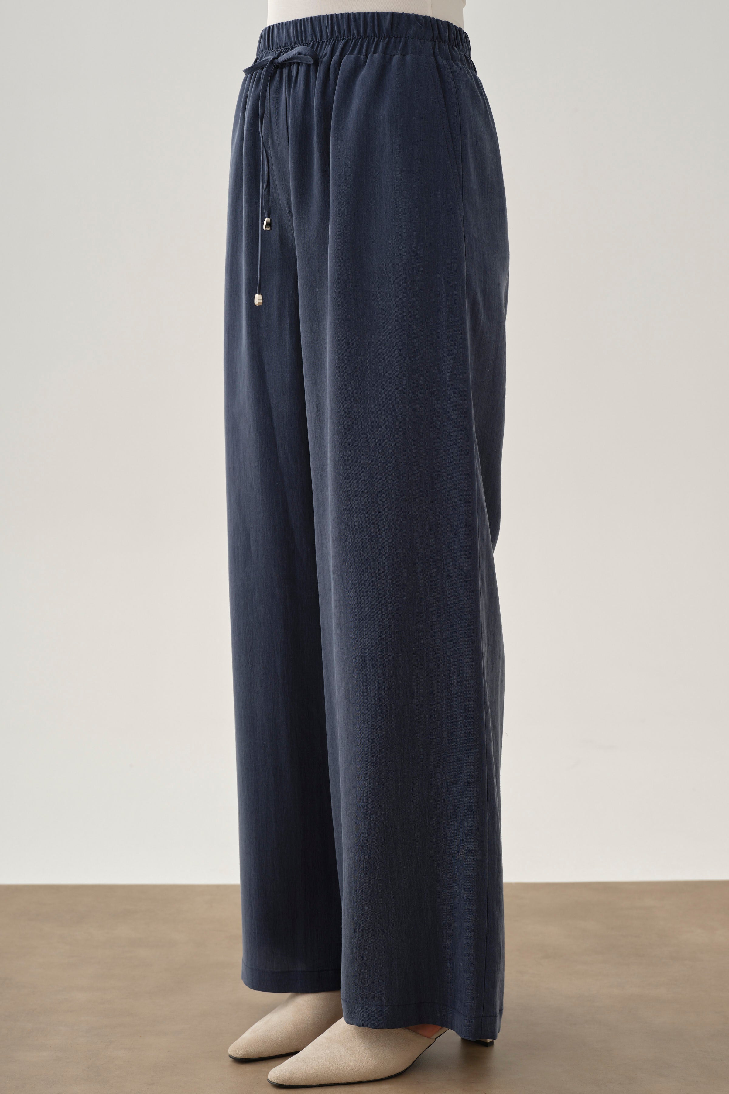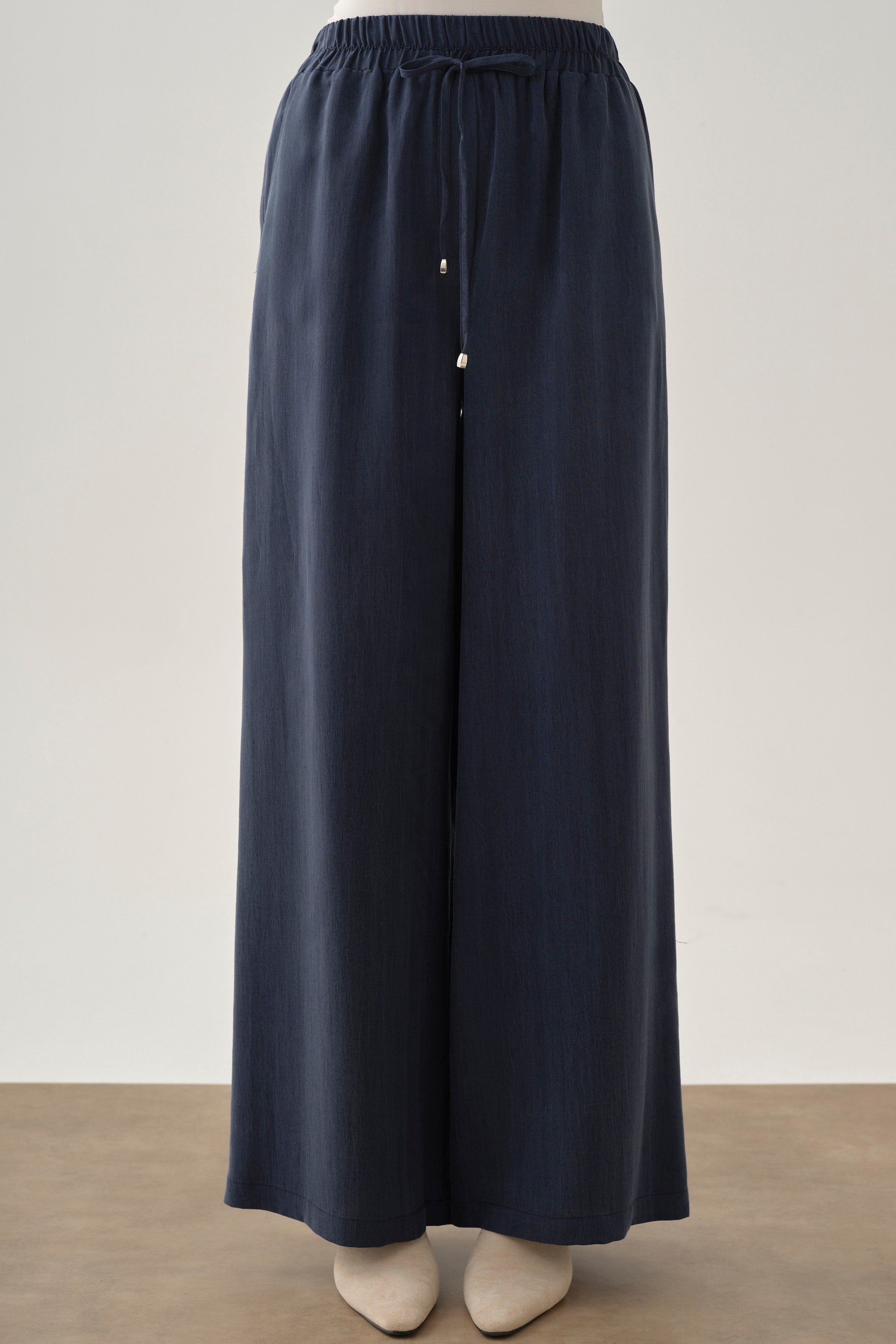 Pantalón azul marino con cintura elástica y detalle de lazo