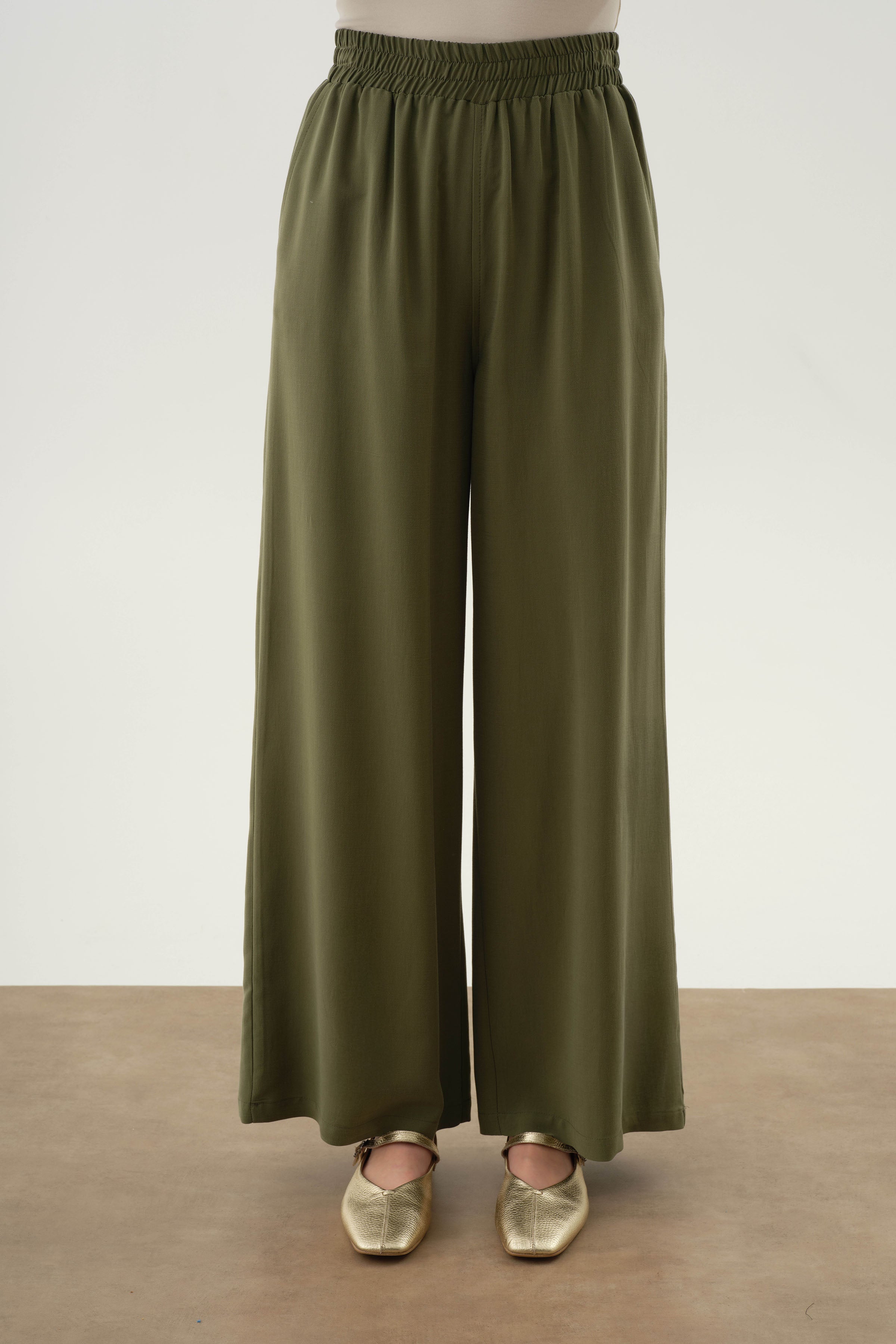 Ofreciendo un uso cómodo gracias a su cintura elástica, estos pantalones se adaptan fácilmente a cualquier estilo con su diseño sencillo. Ofrece elegancia y comodidad diarias juntas. Es una parte indispensable del armario durante las transiciones estacionales.