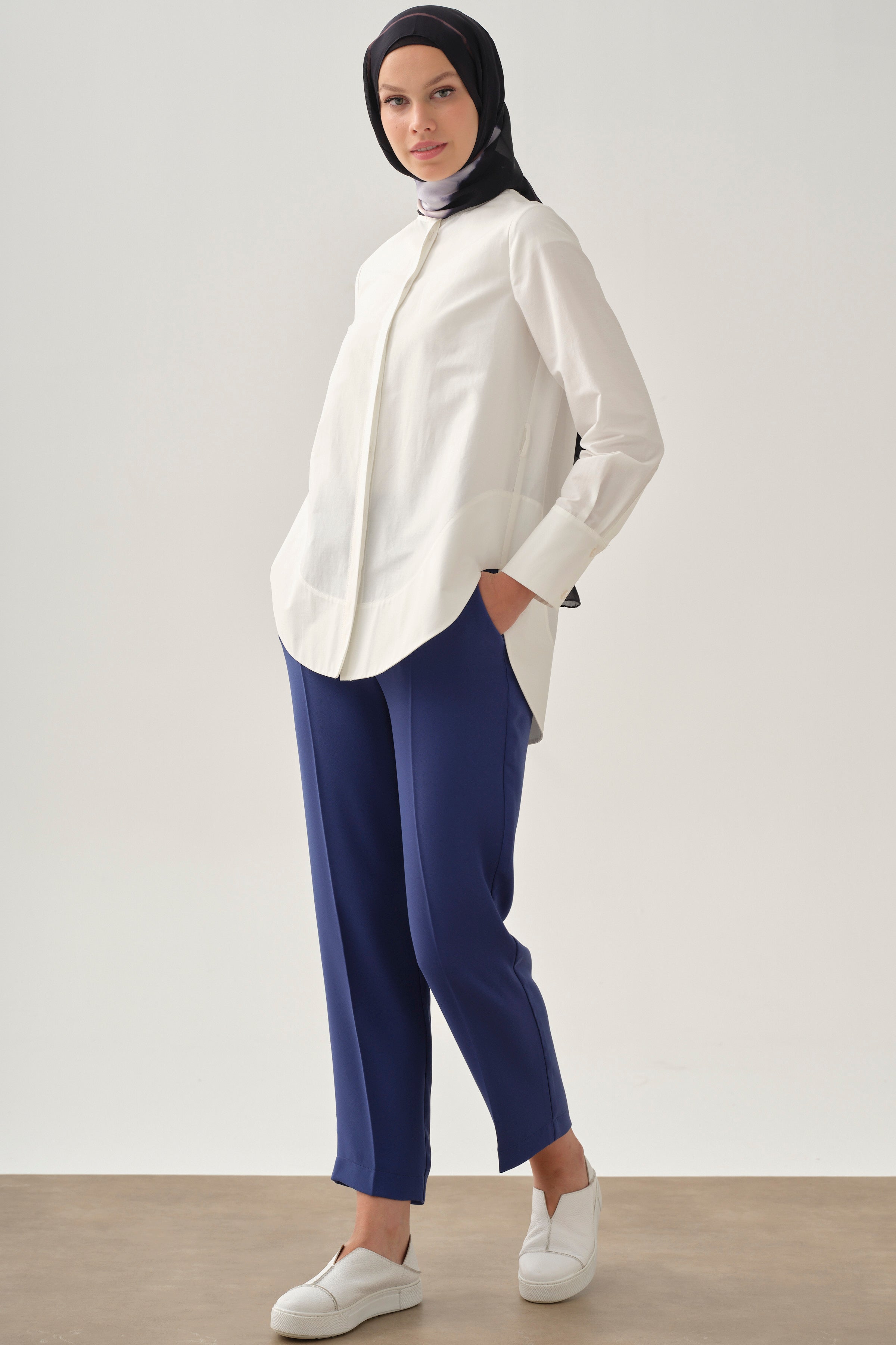 Estos pantalones de pernera ancha, de corte relajado y elegantes pinzas, ofrecen un look moderno y sofisticado. Su talle alto estiliza la figura y garantiza comodidad durante todo el día. Un básico imprescindible tanto para la oficina como para el día a día.