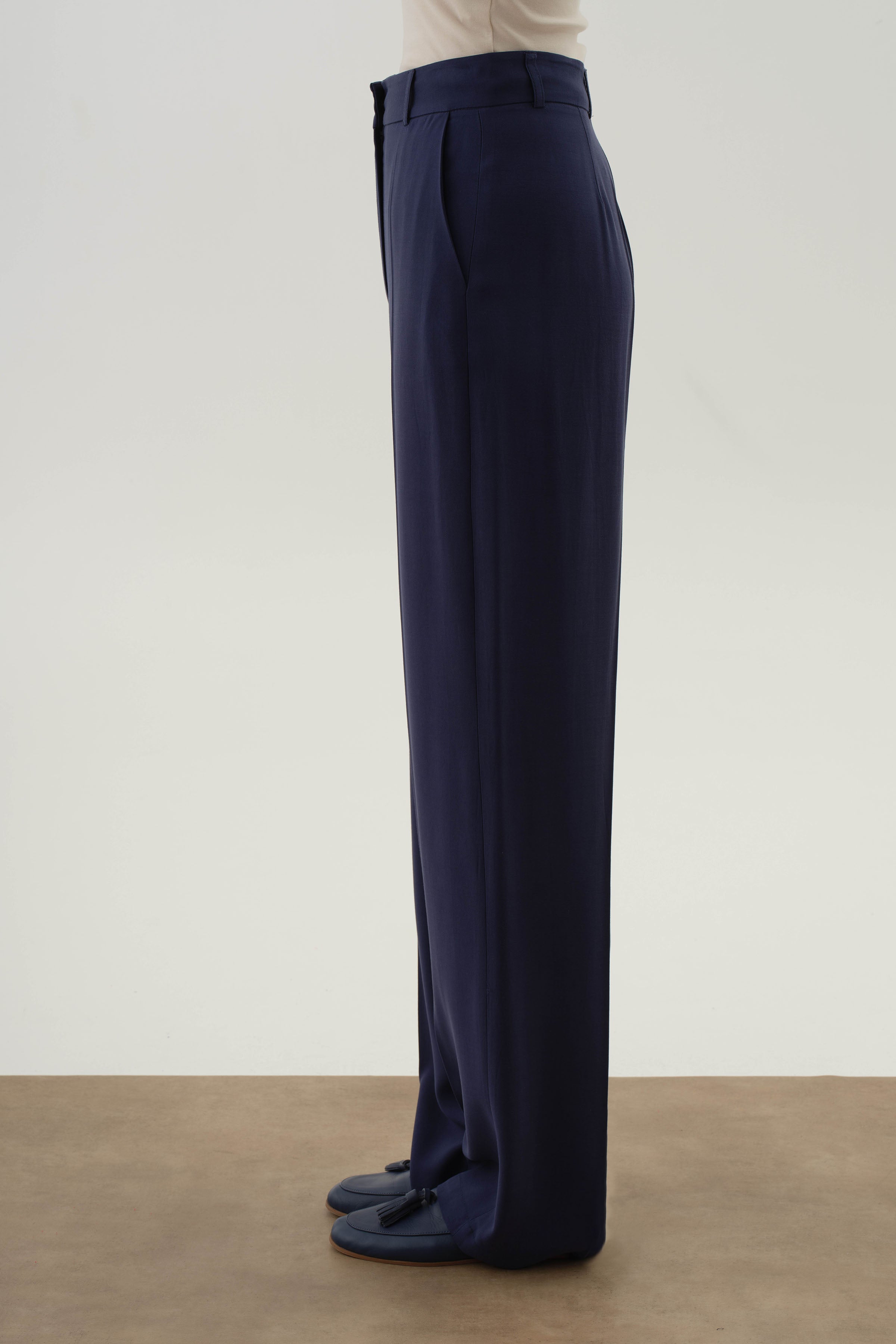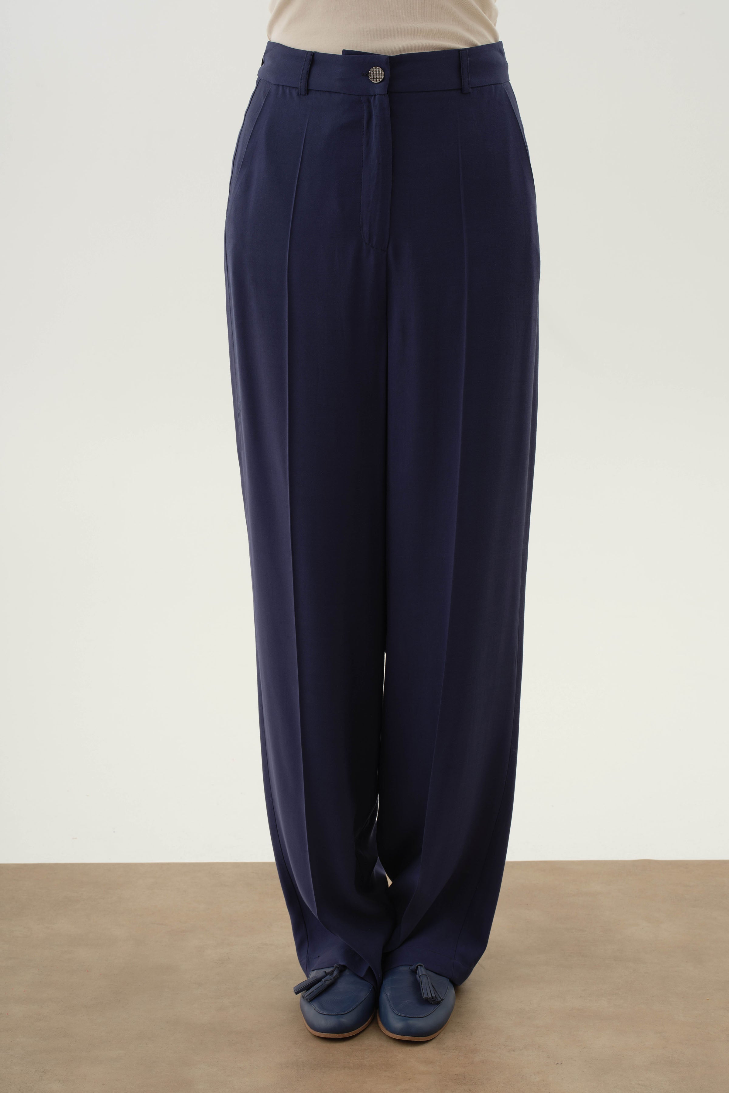 Pantalones anchos con bolsillos - Azul marino