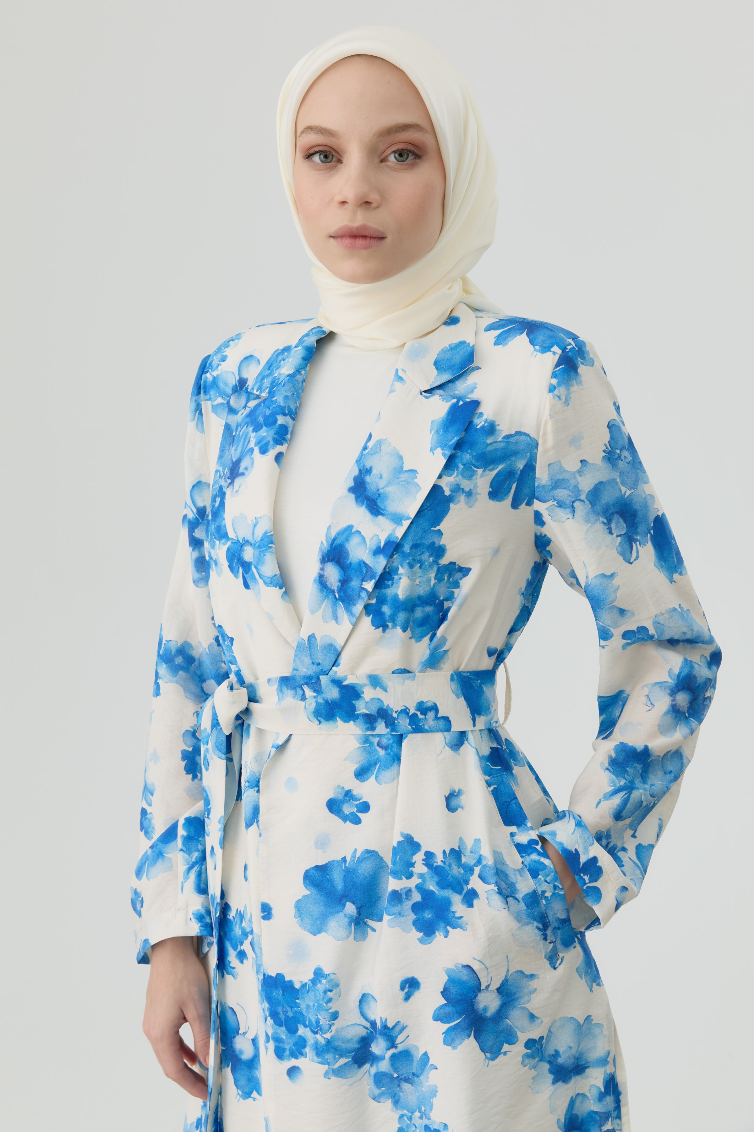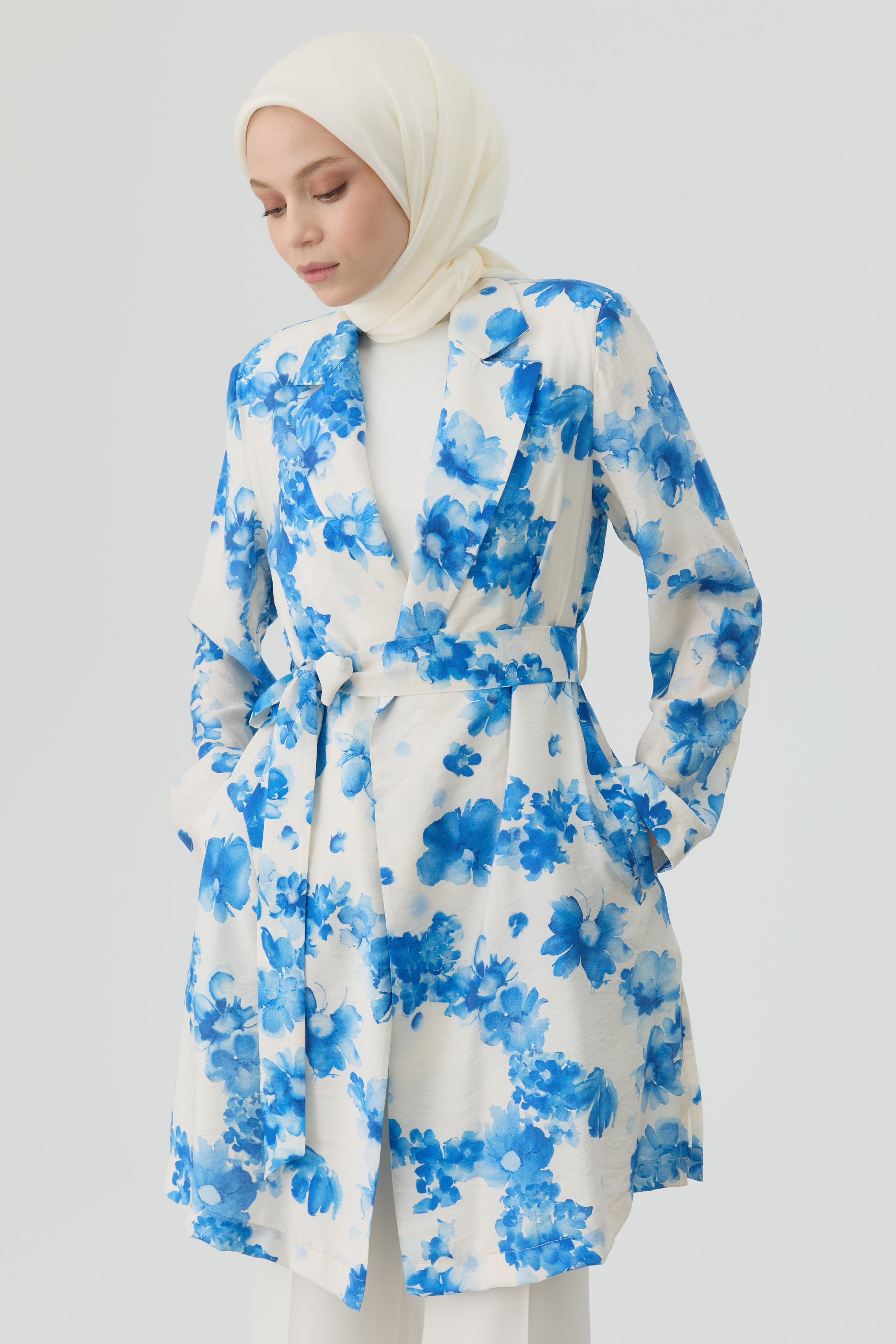 Chaqueta con estampado floral - Azul