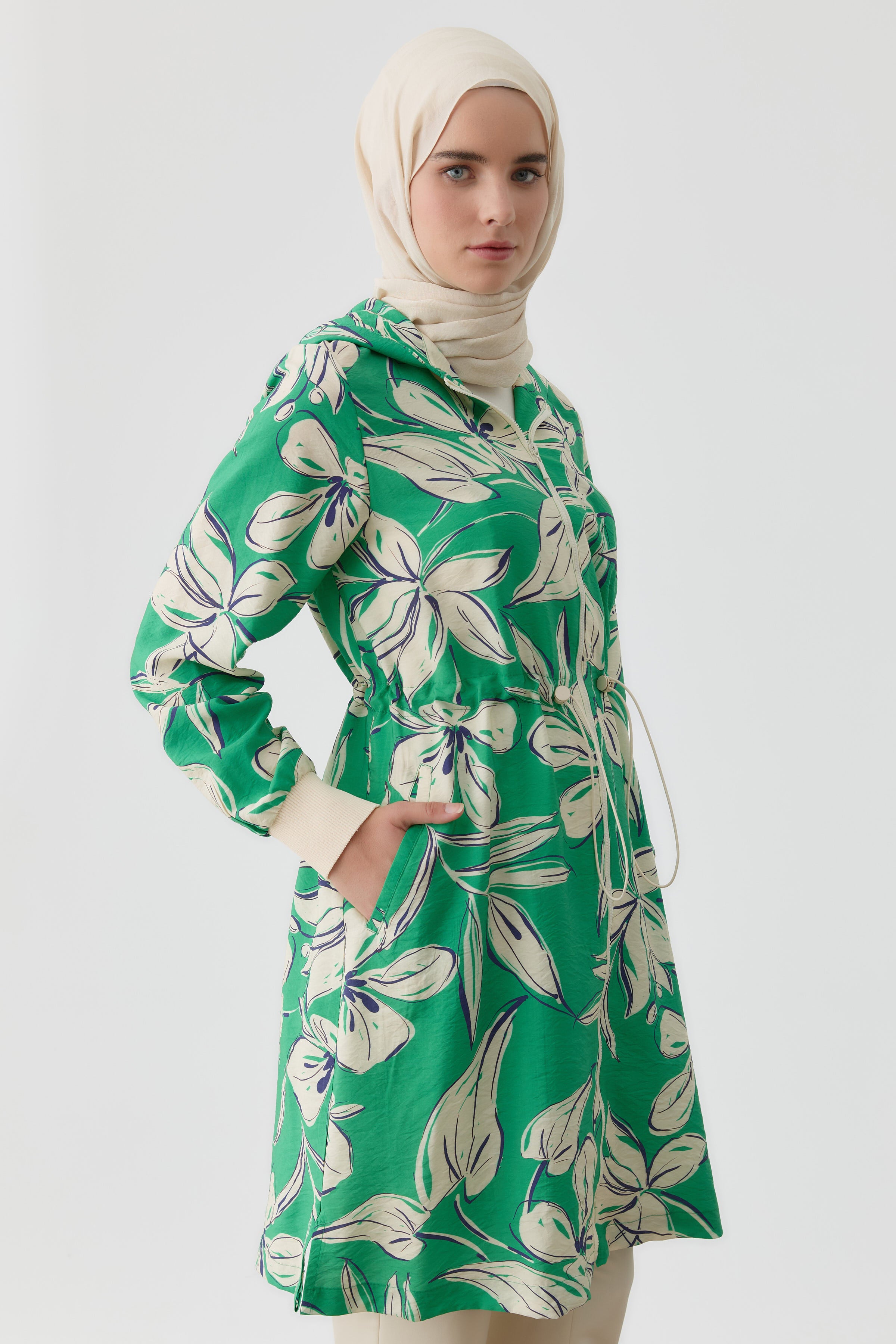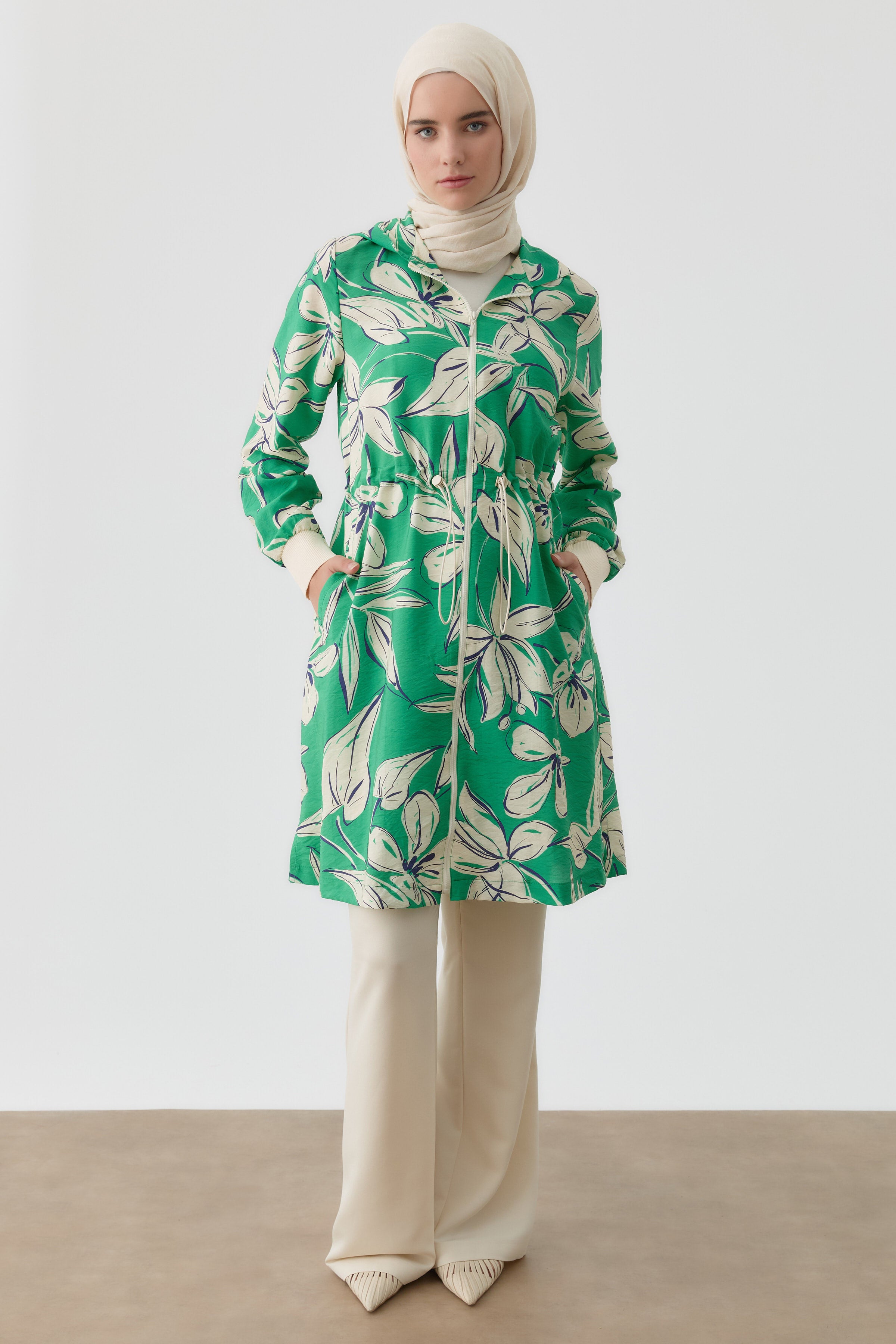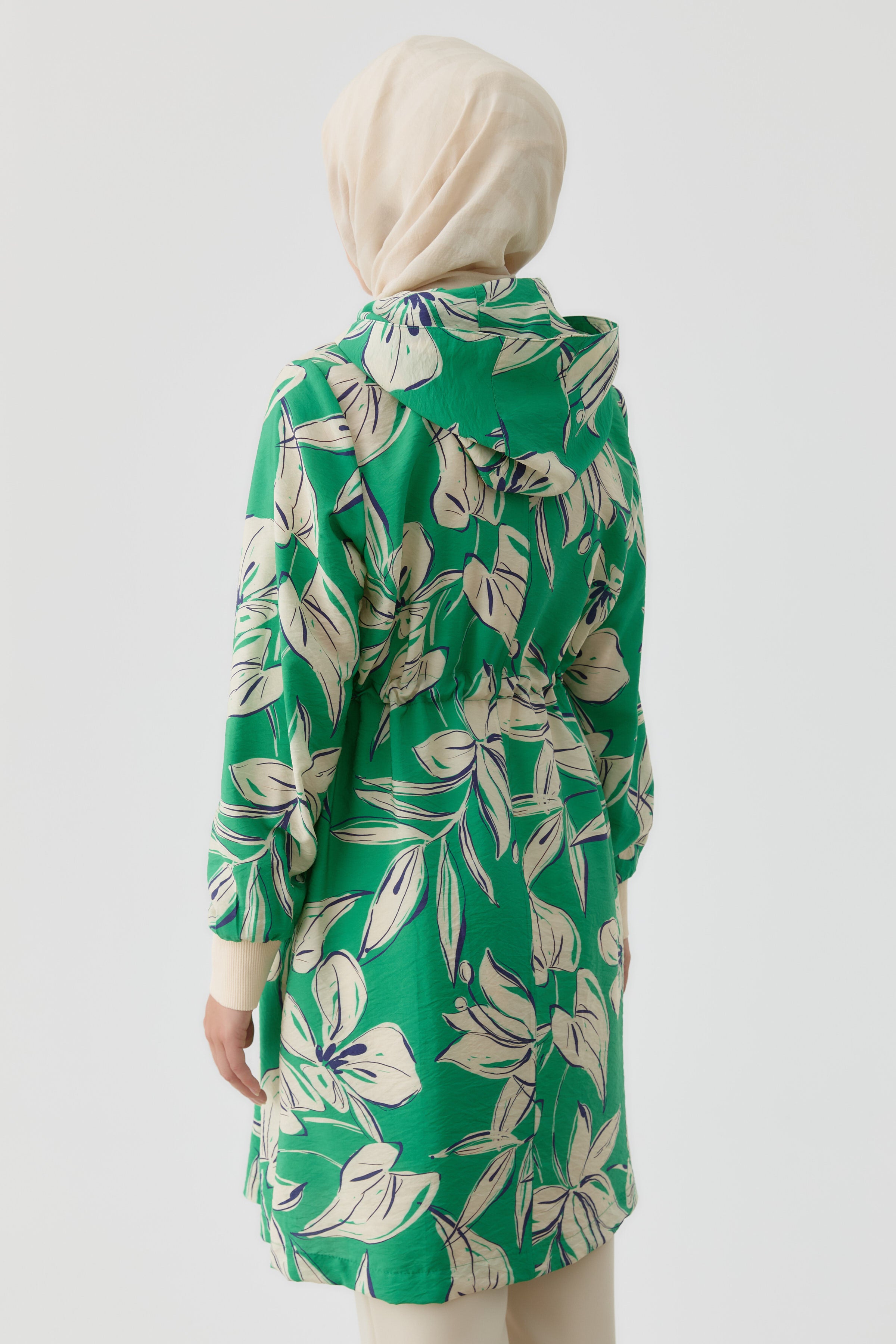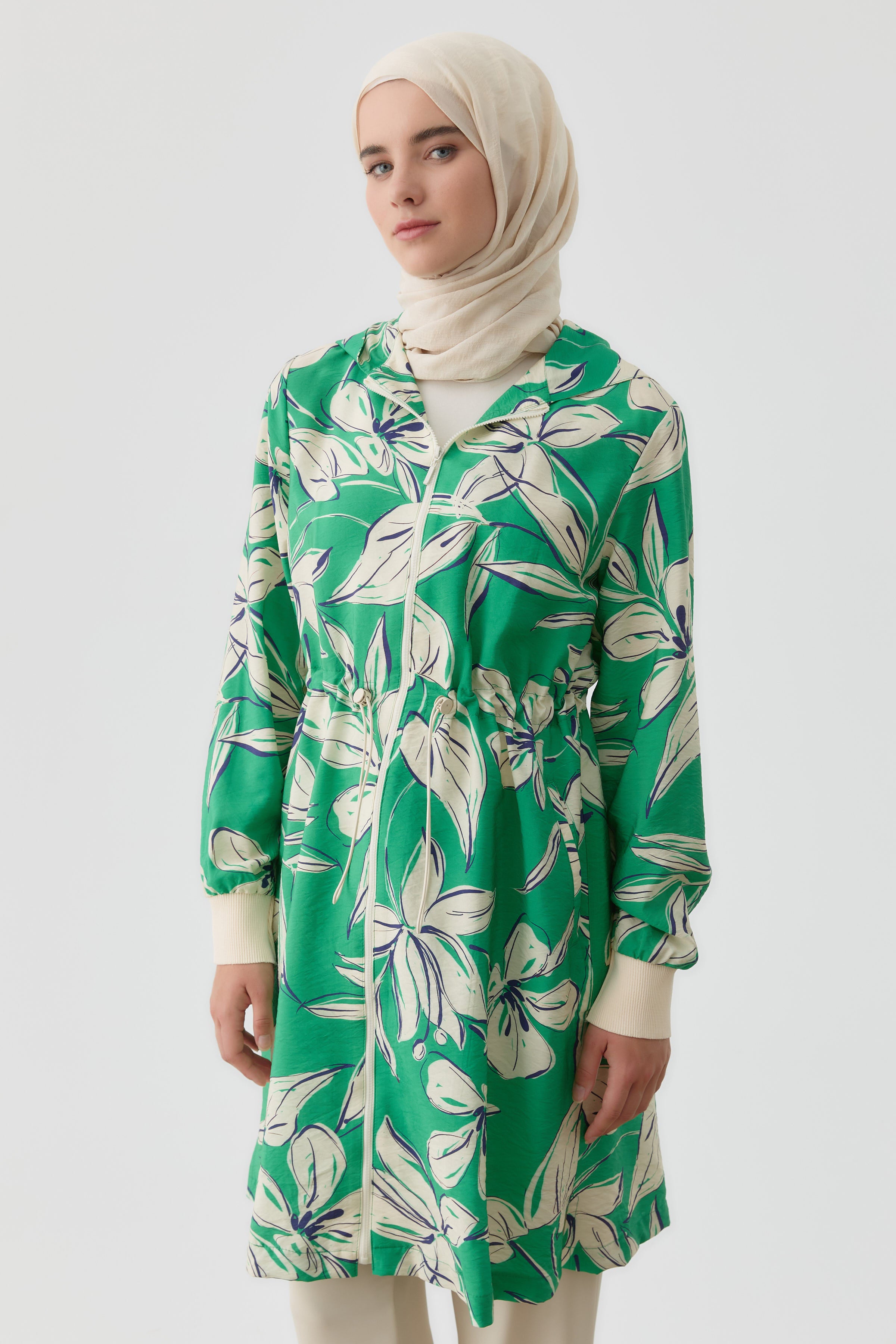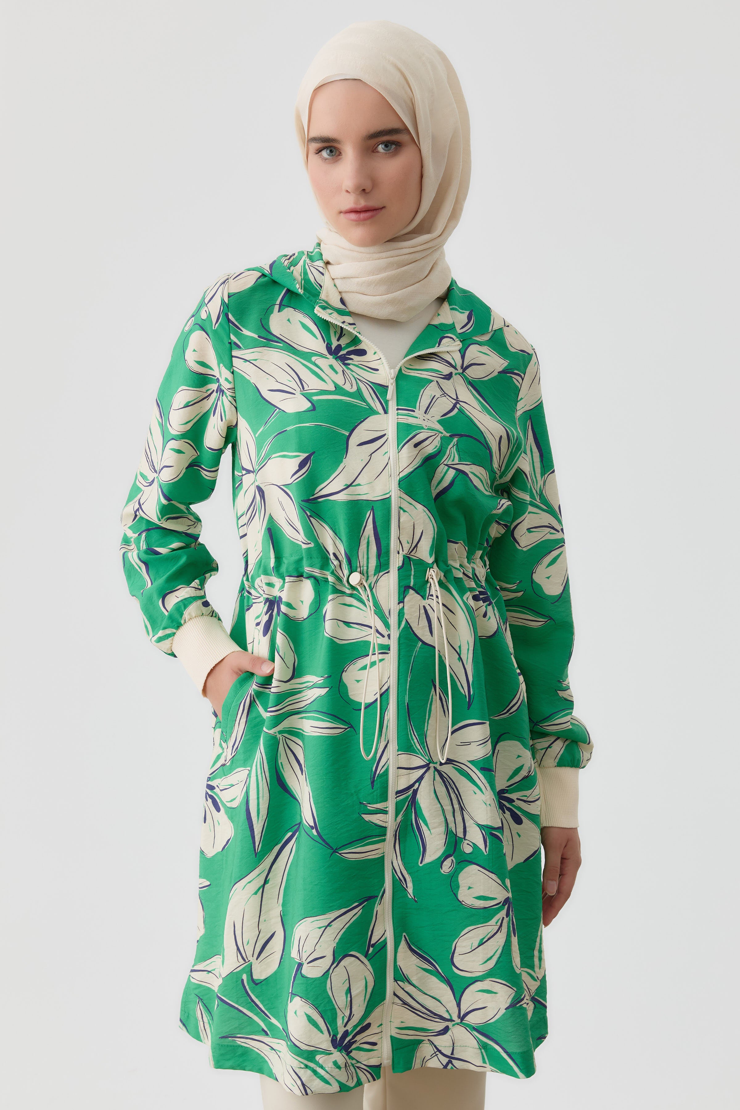 Este abrigo, con sus estampados florales y detalle de capucha, añade un toque deportivo y aporta comodidad y estilo a tus conjuntos diarios.