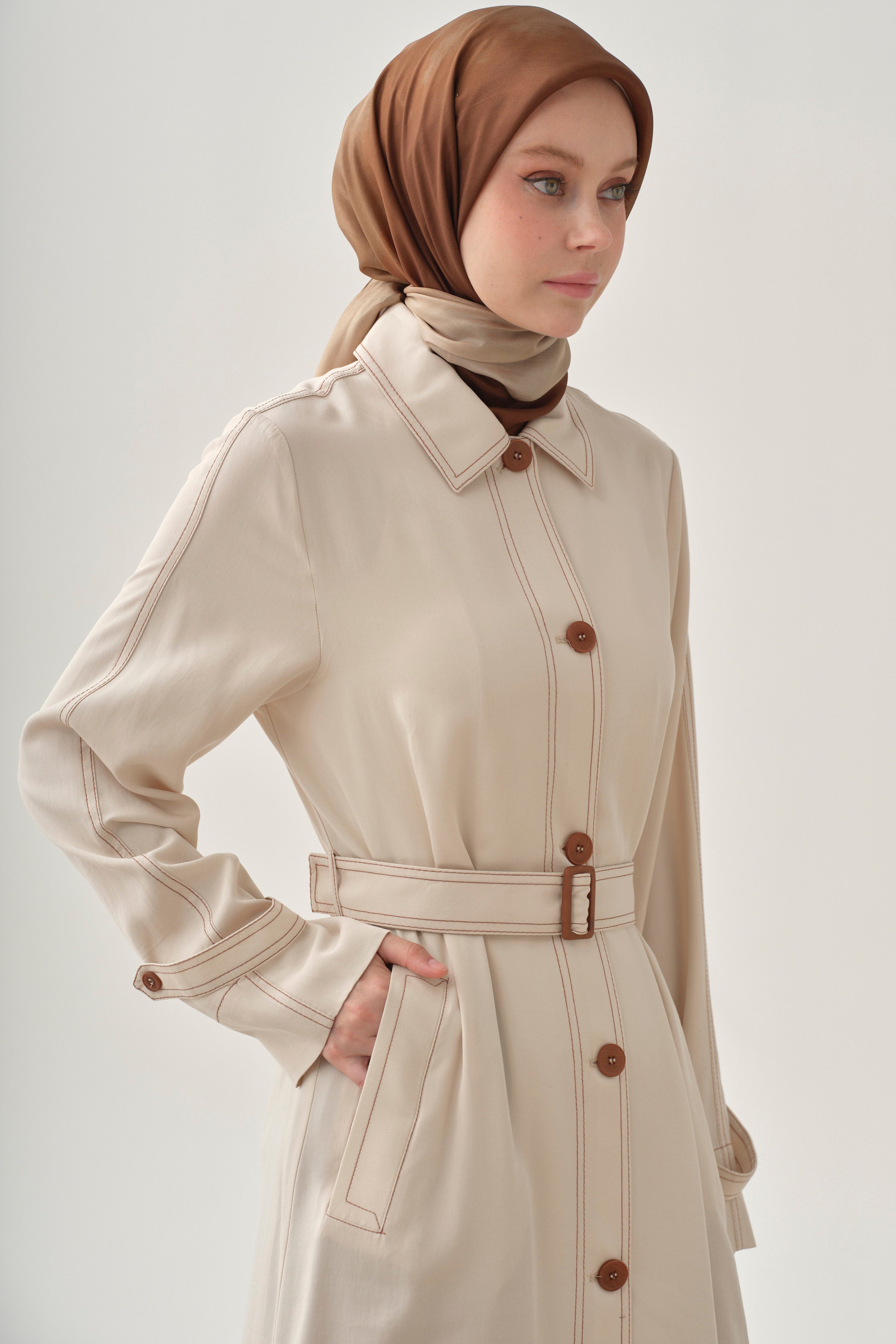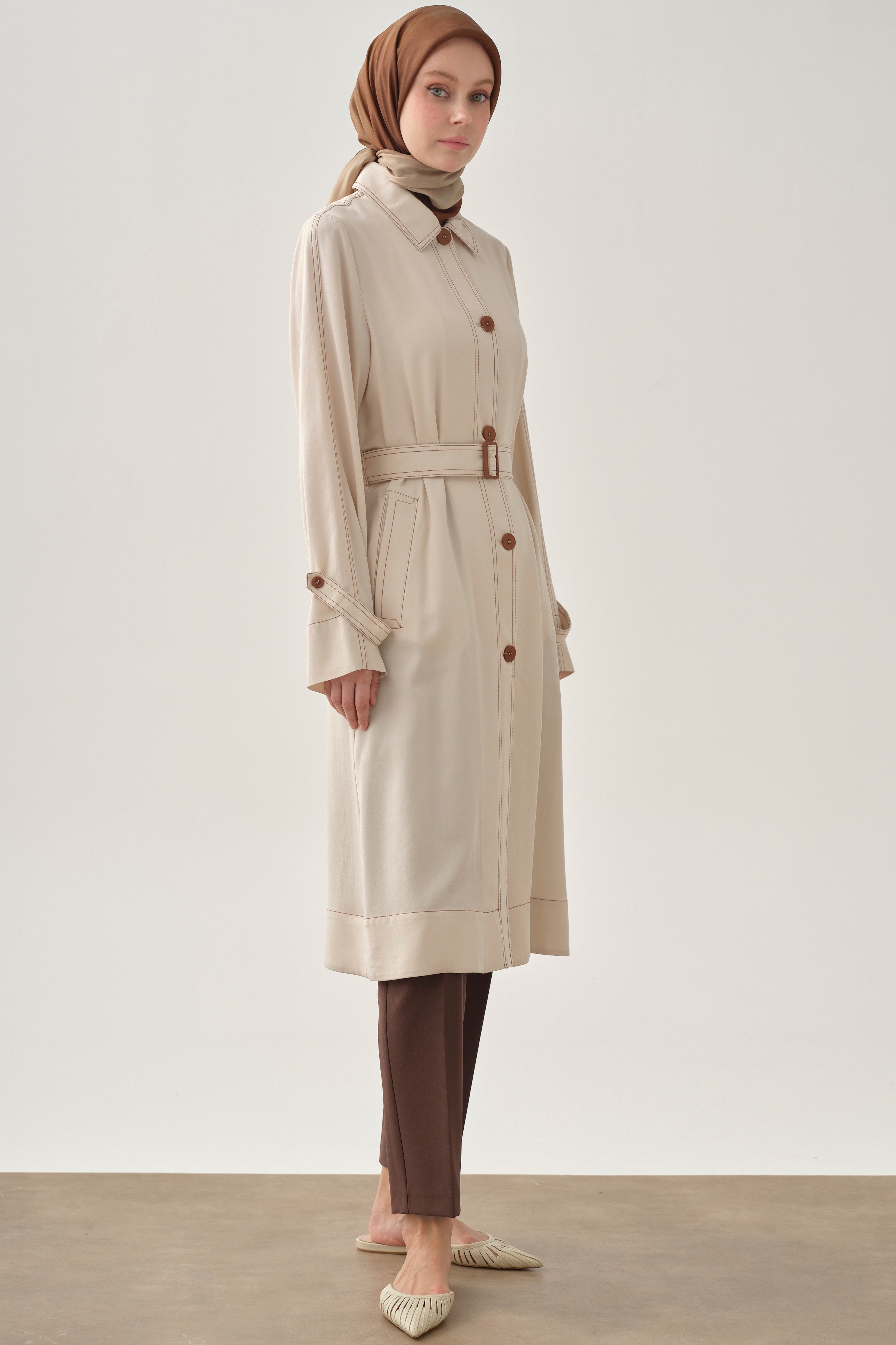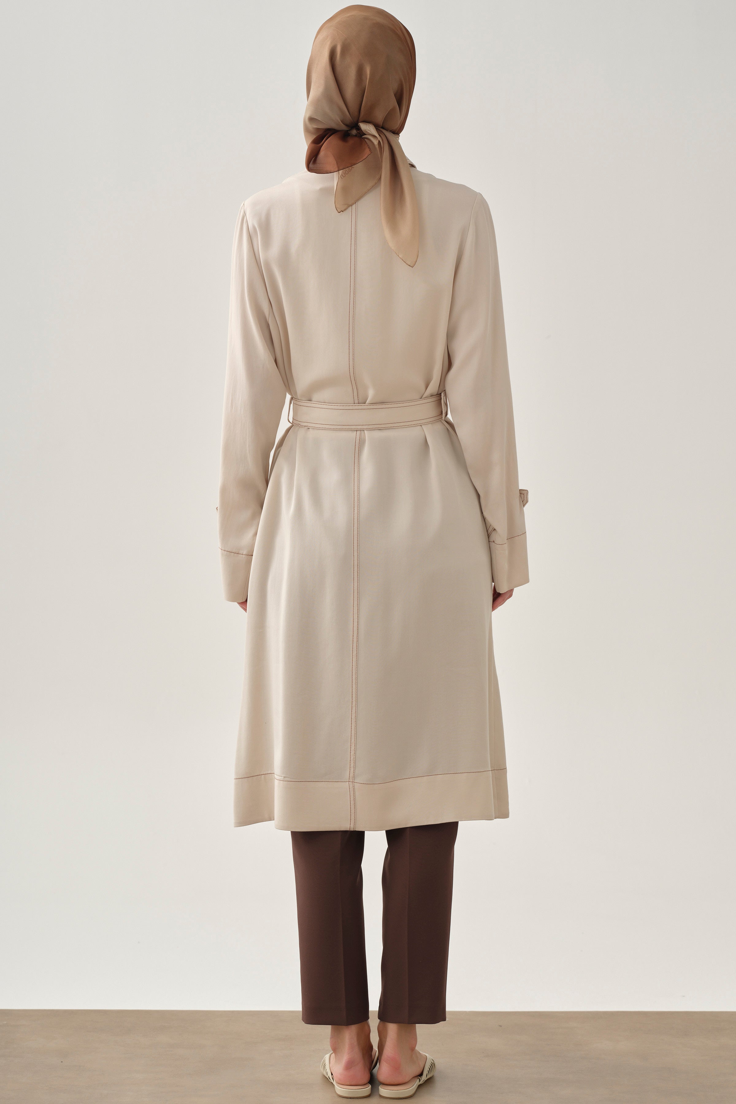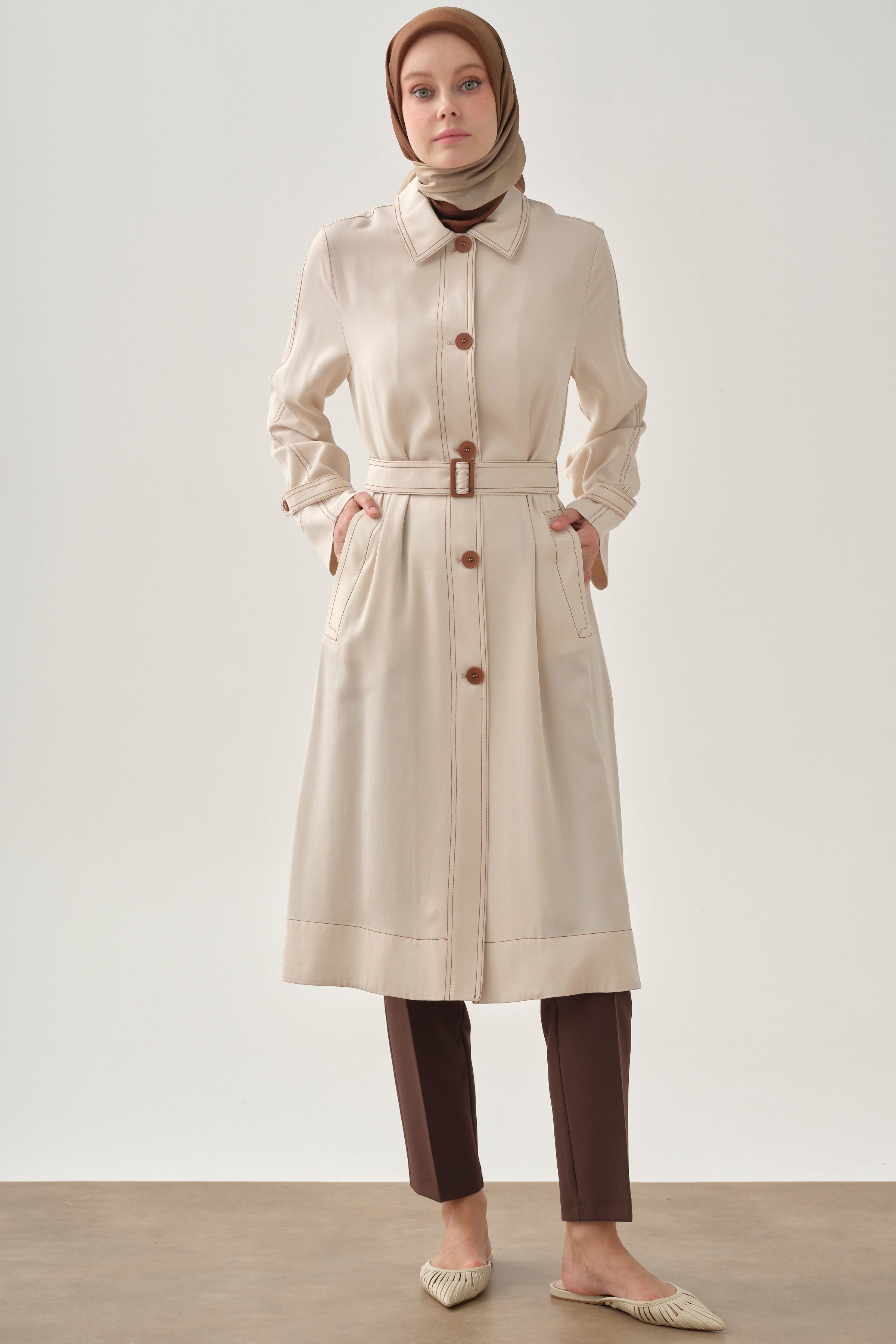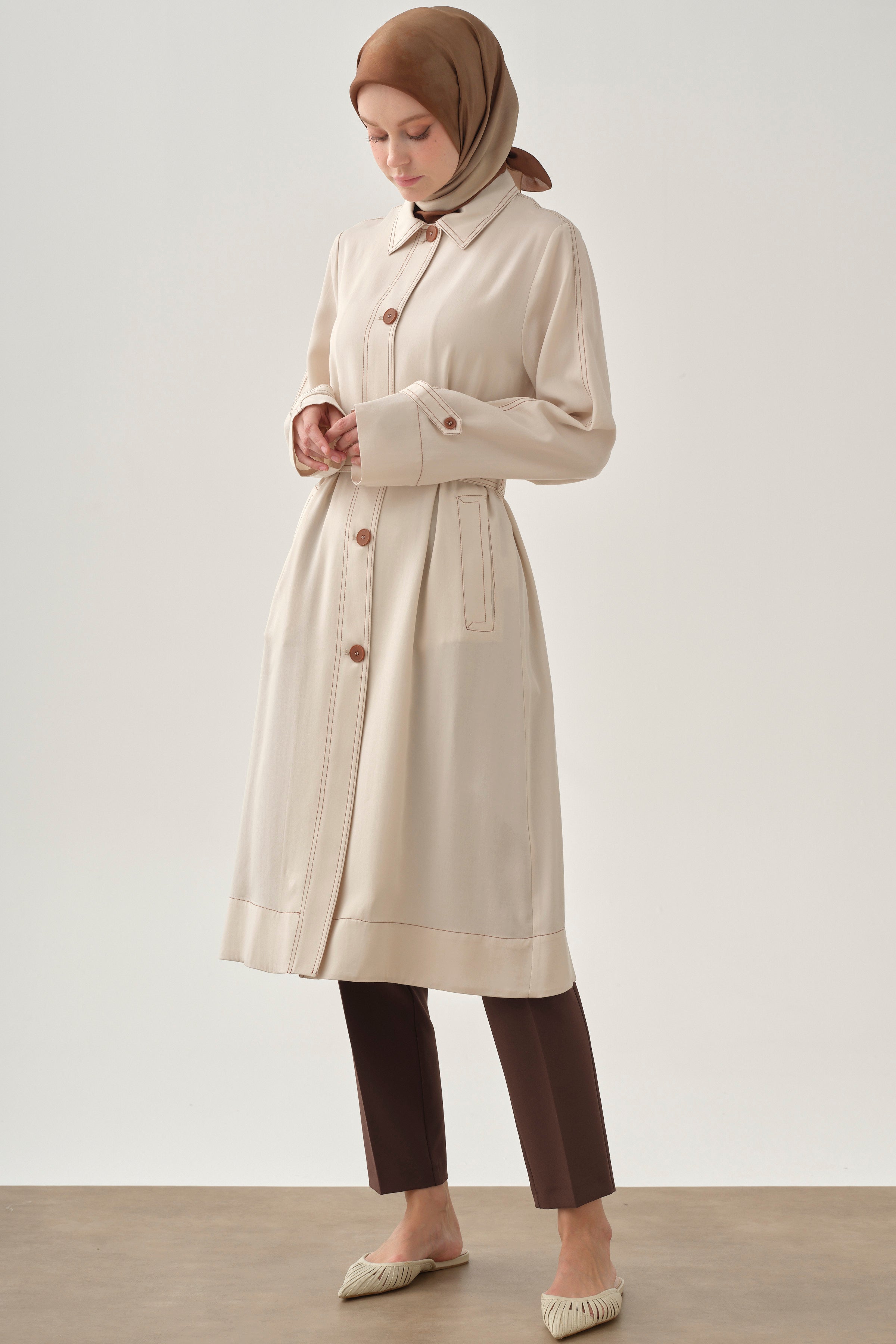 Chaqueta larga con detalles de costura - Crudo