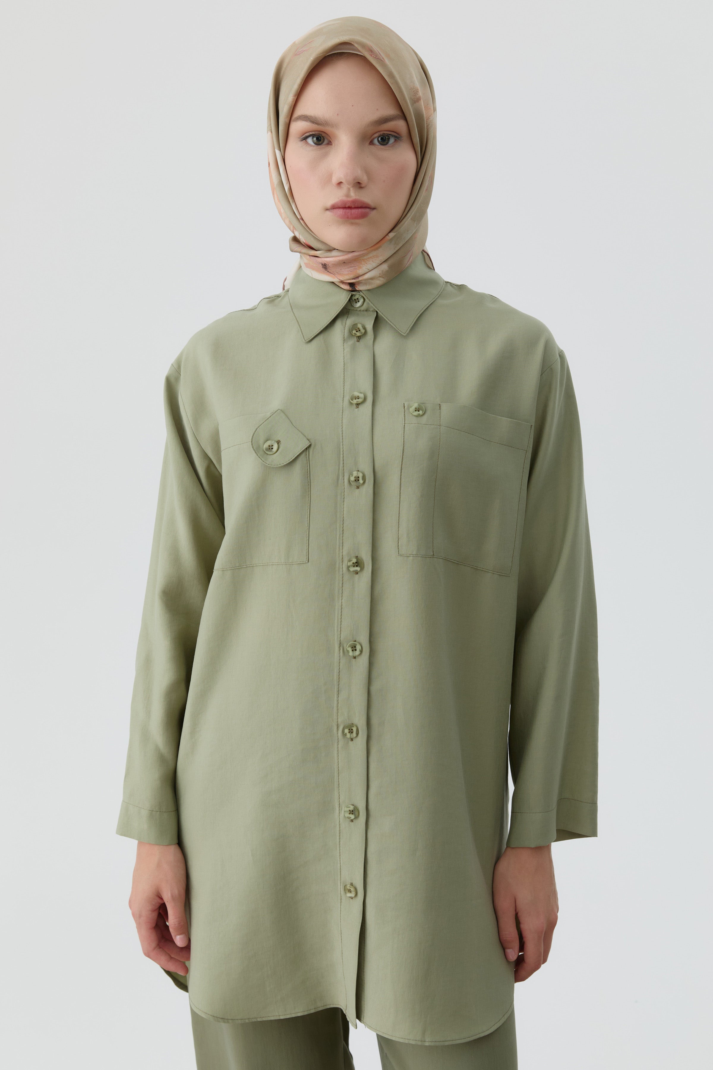 Si bien ofrece un aspecto moderno e informal con su corte de hombros bajos, también proporciona un uso funcional gracias a sus bolsillos delanteros.
