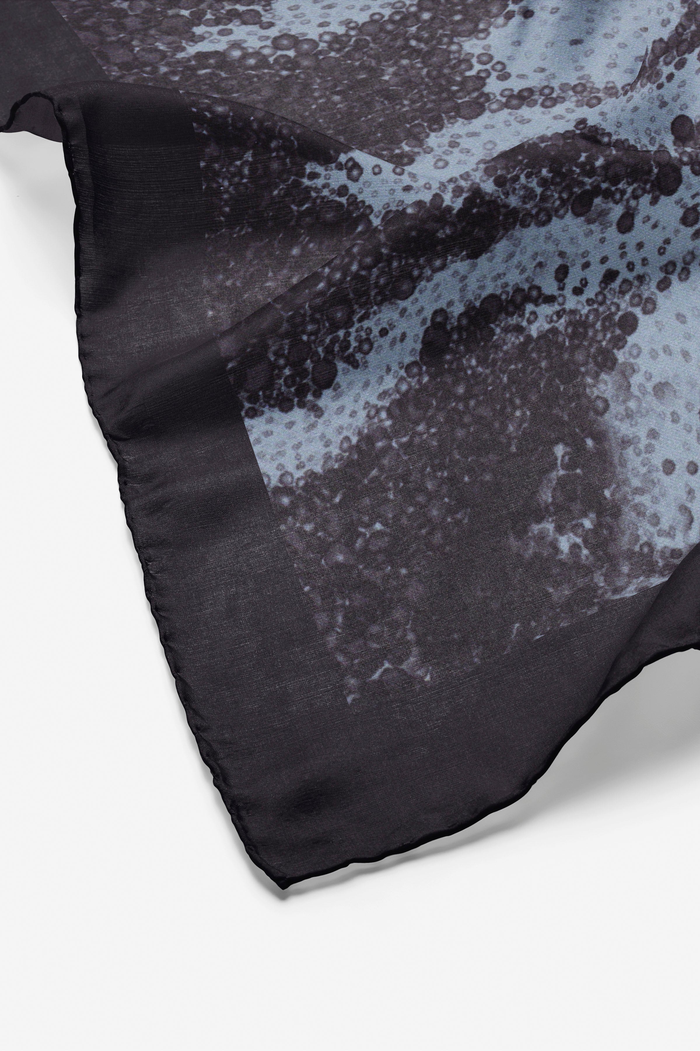 La bufanda de seda sarga con lunares es una pieza elegante que combina una comprensión moderna de los patrones con la elegancia clásica.