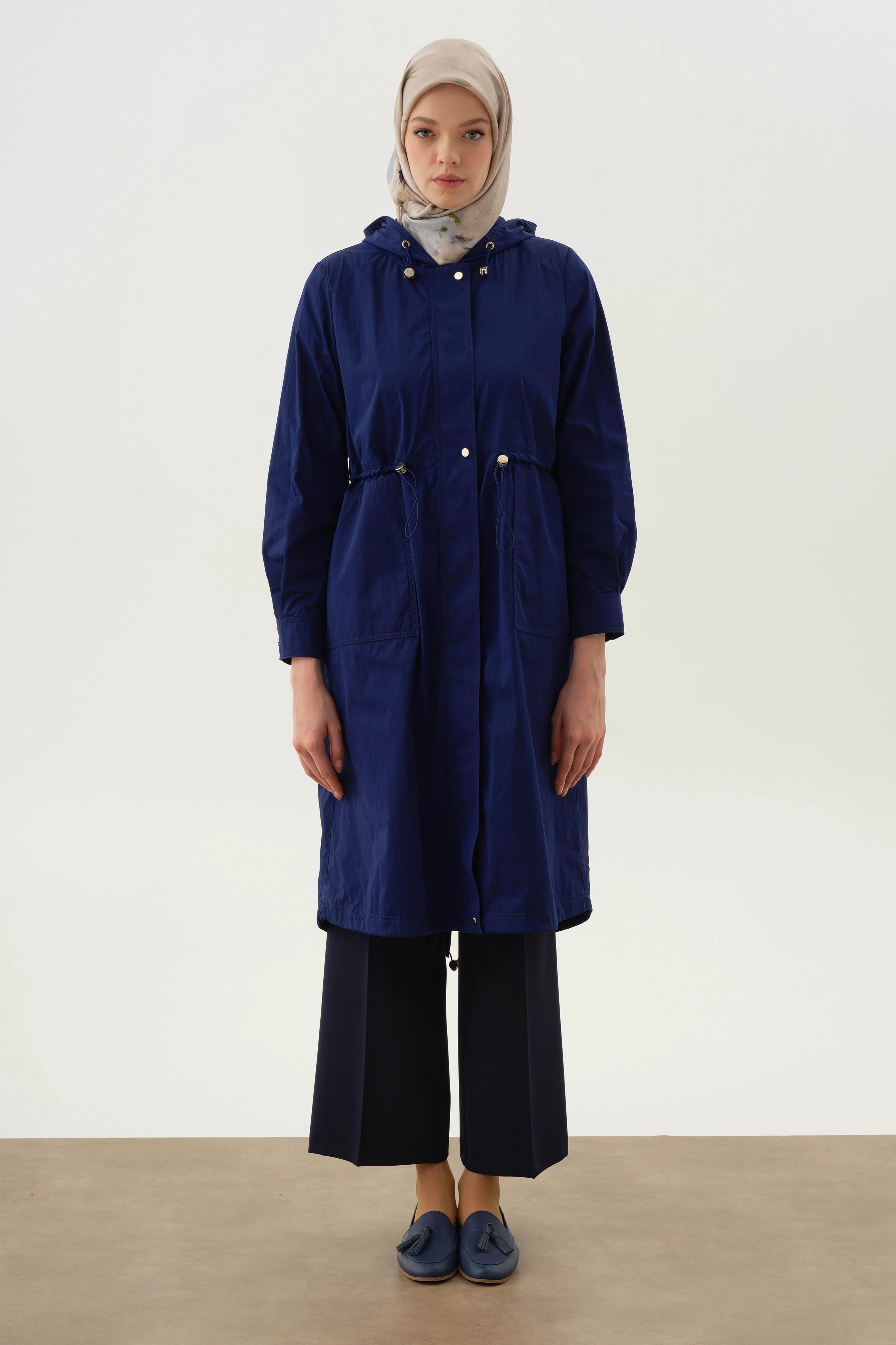 Ofreciendo un estilo cómodo y dinámico, la capa con capucha y detalles elásticos es una opción ideal para el uso diario. Mientras que los detalles elásticos en las muñecas y el dobladillo añaden un toque moderno, proporciona funcionalidad con su capucha. Es un complemento indispensable para combinaciones sporty-chic.