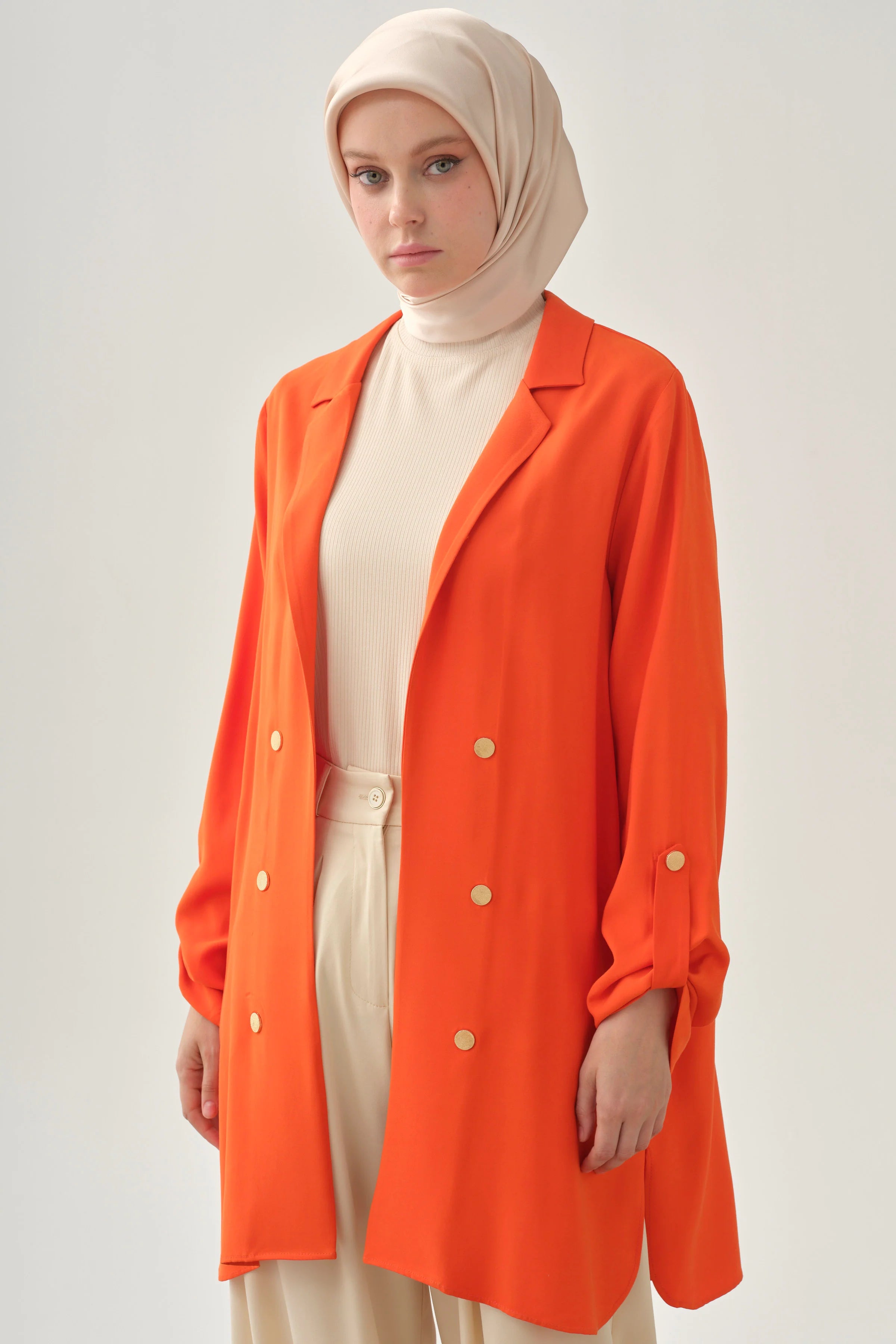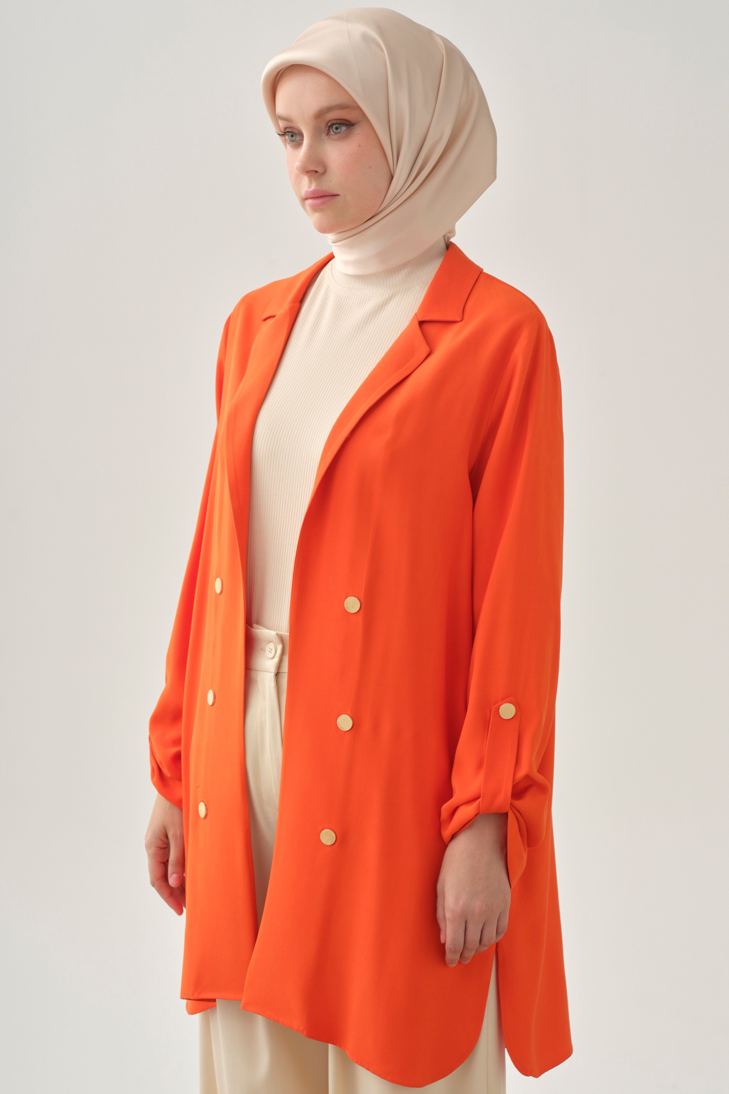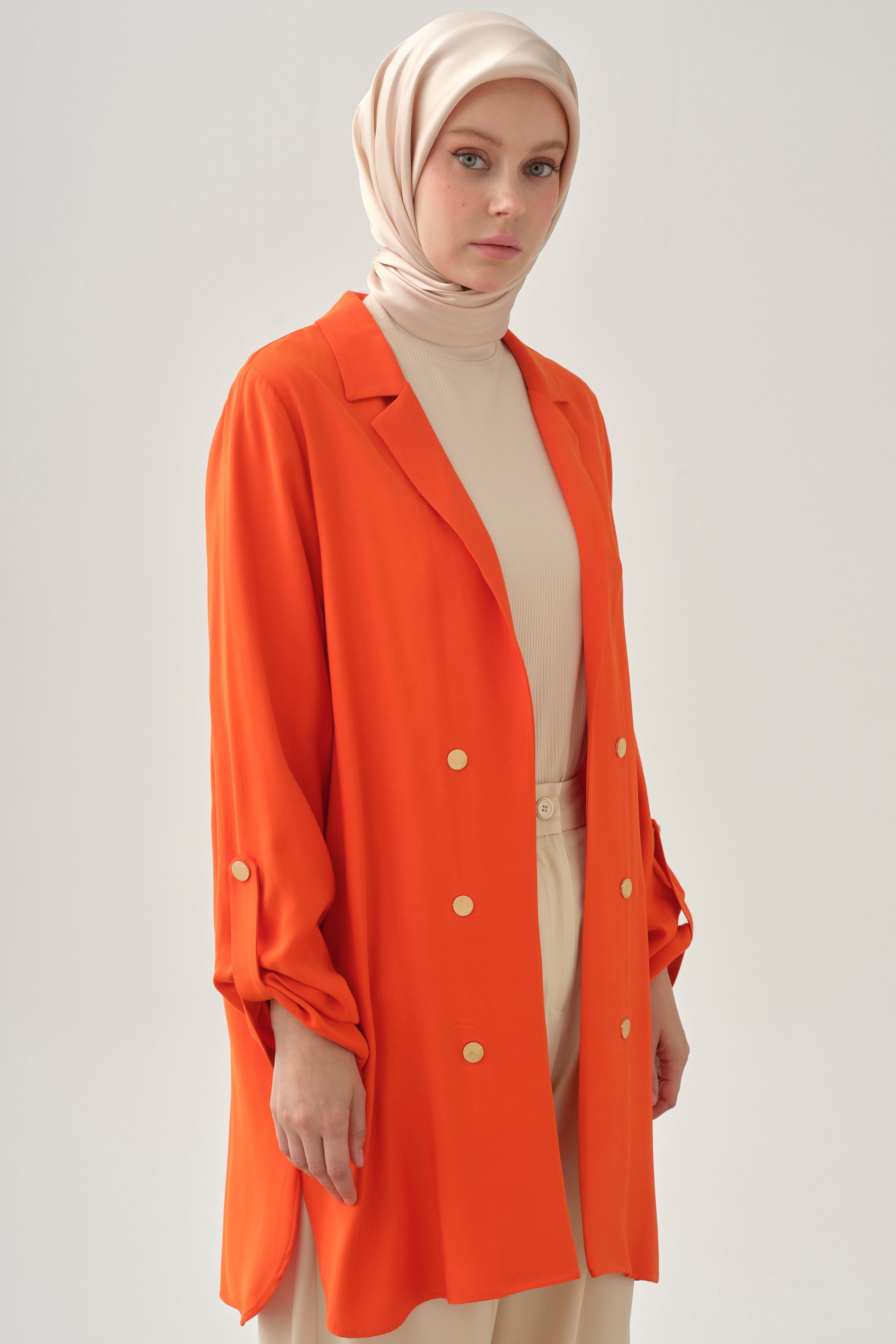 Chaqueta con abertura y detalle de banda en la manga - Coral