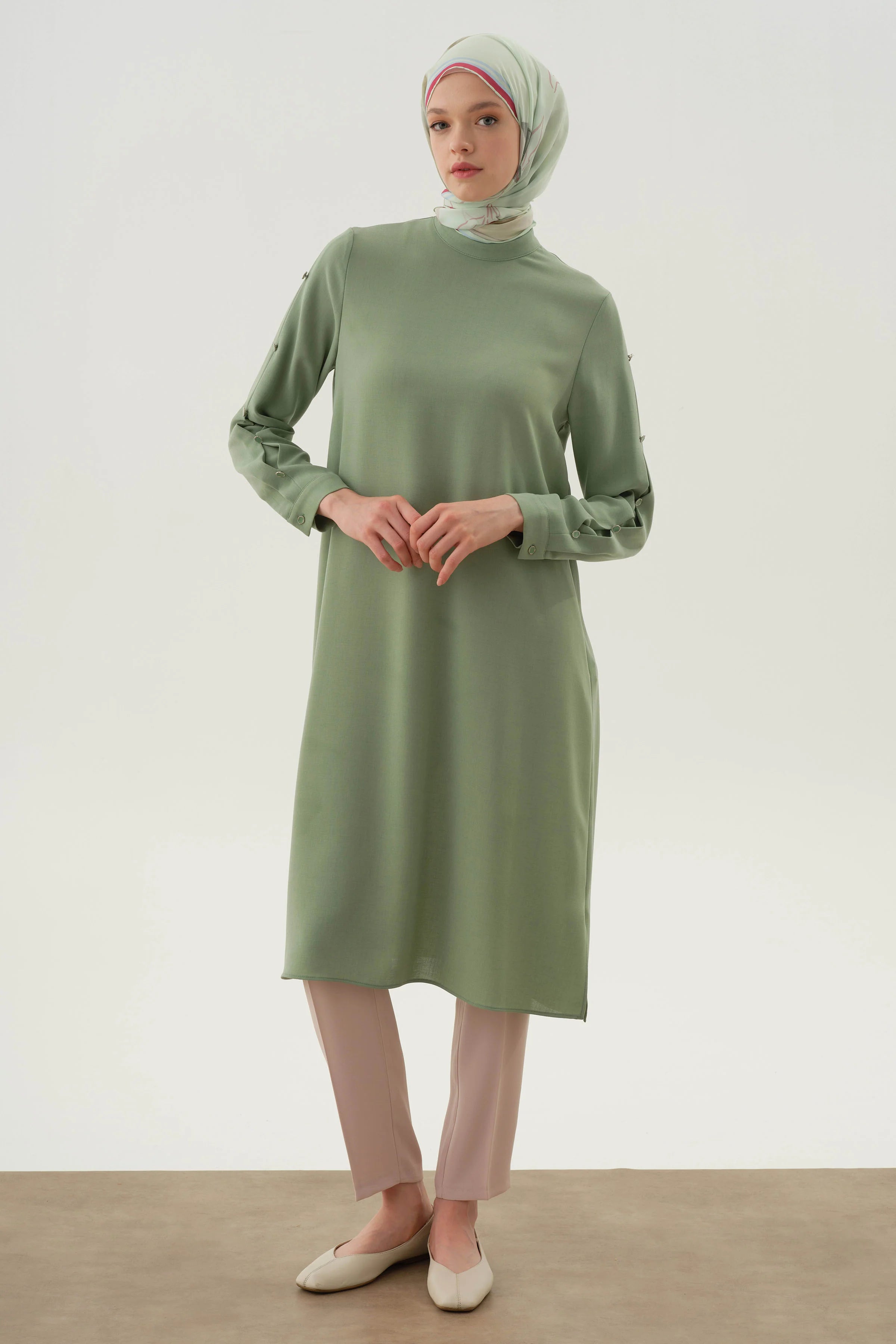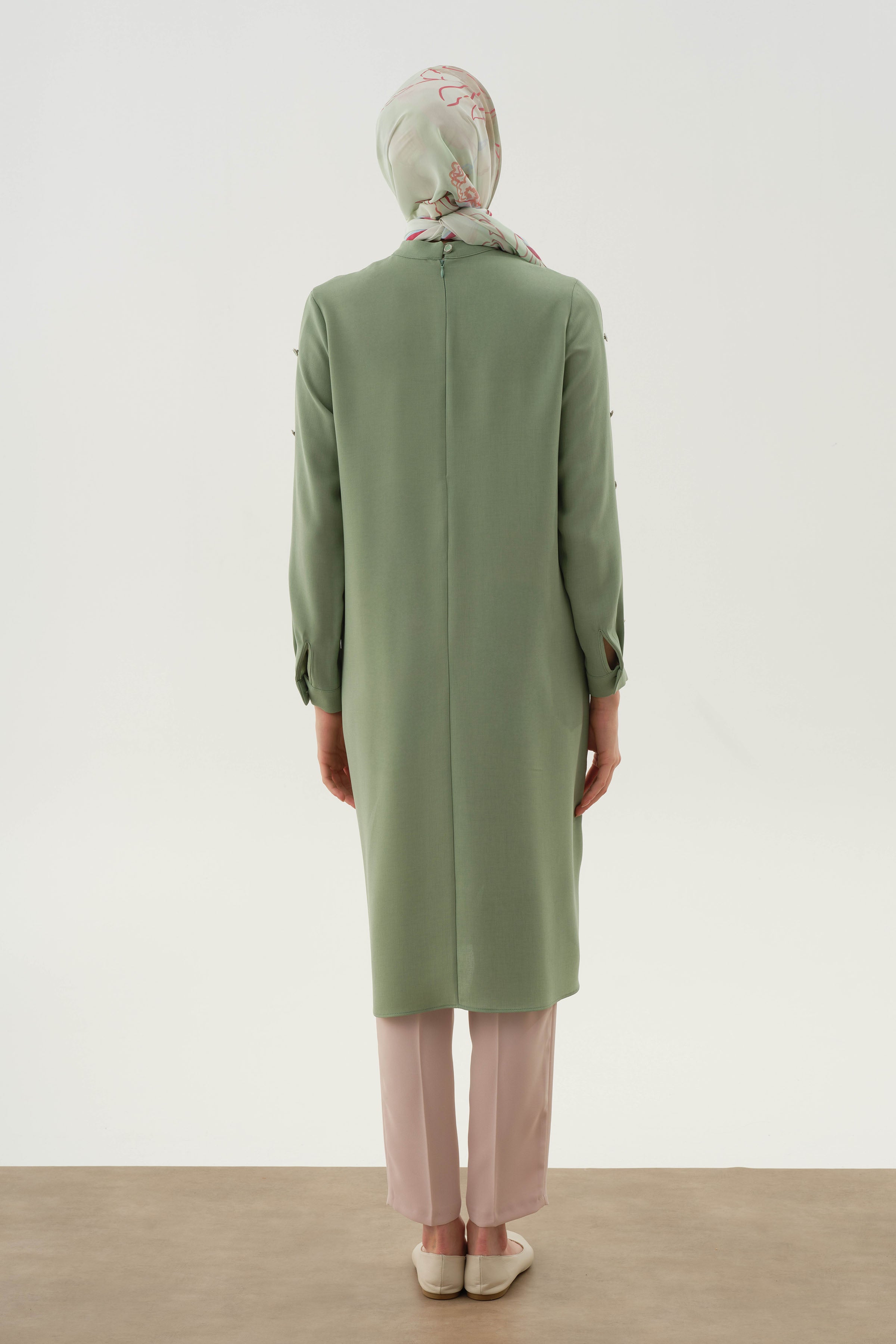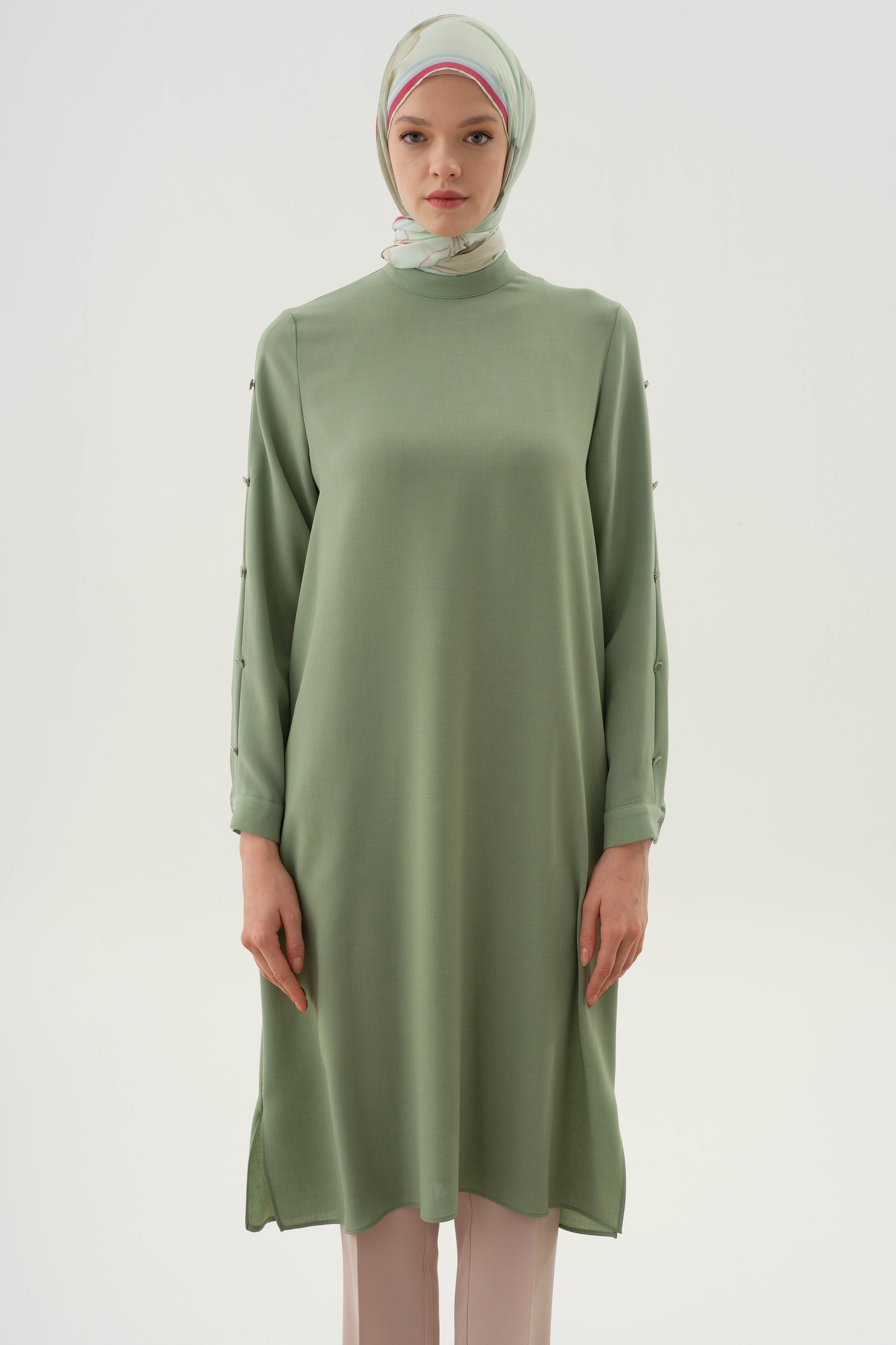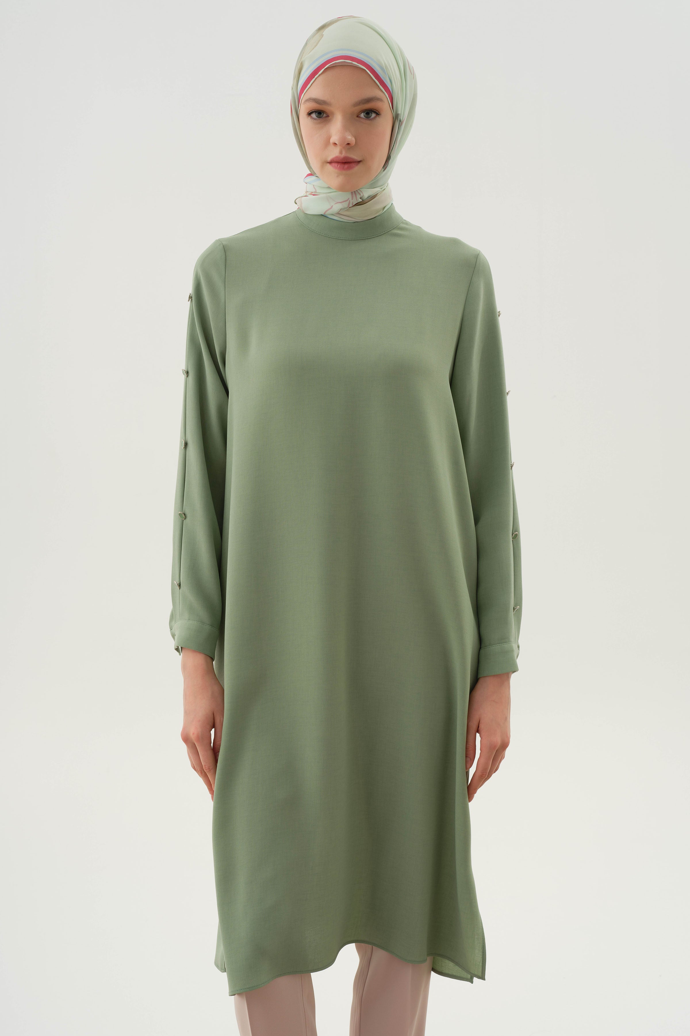 Túnica con detalle de botones plisados en las mangas - Verde agua