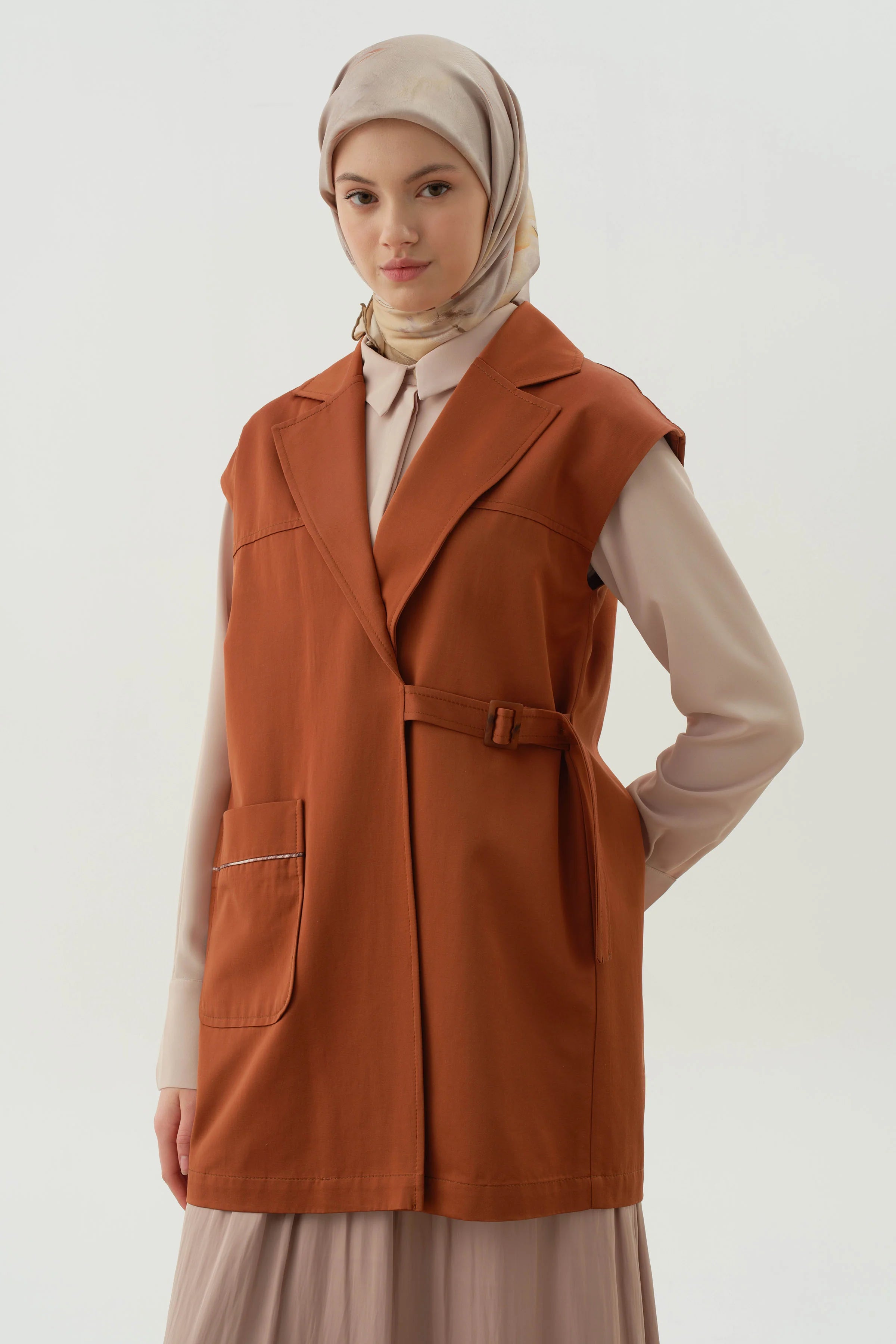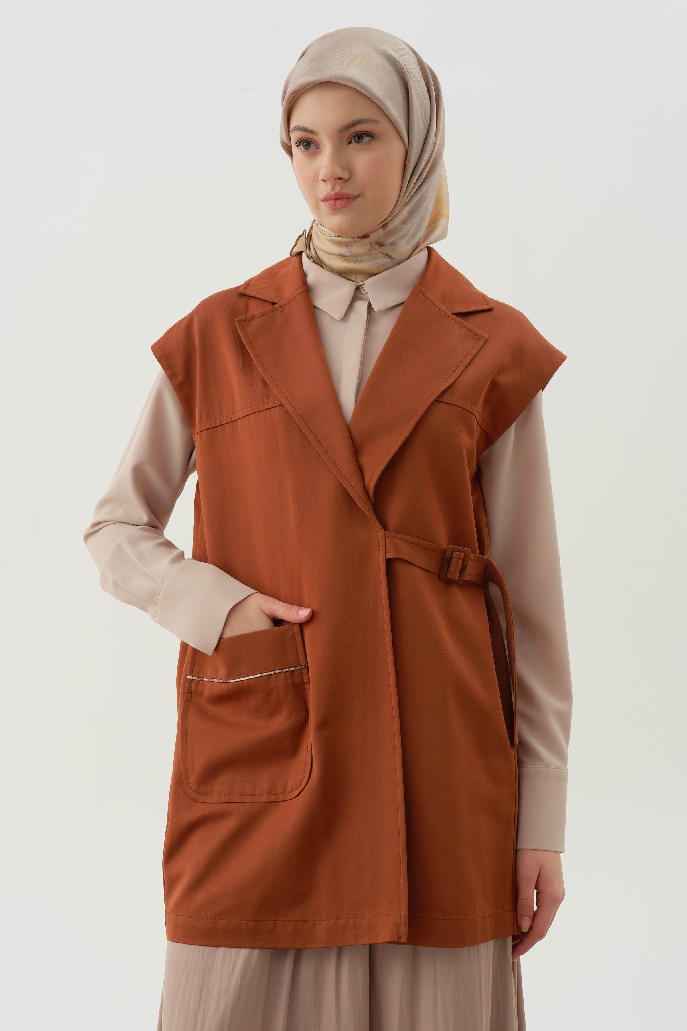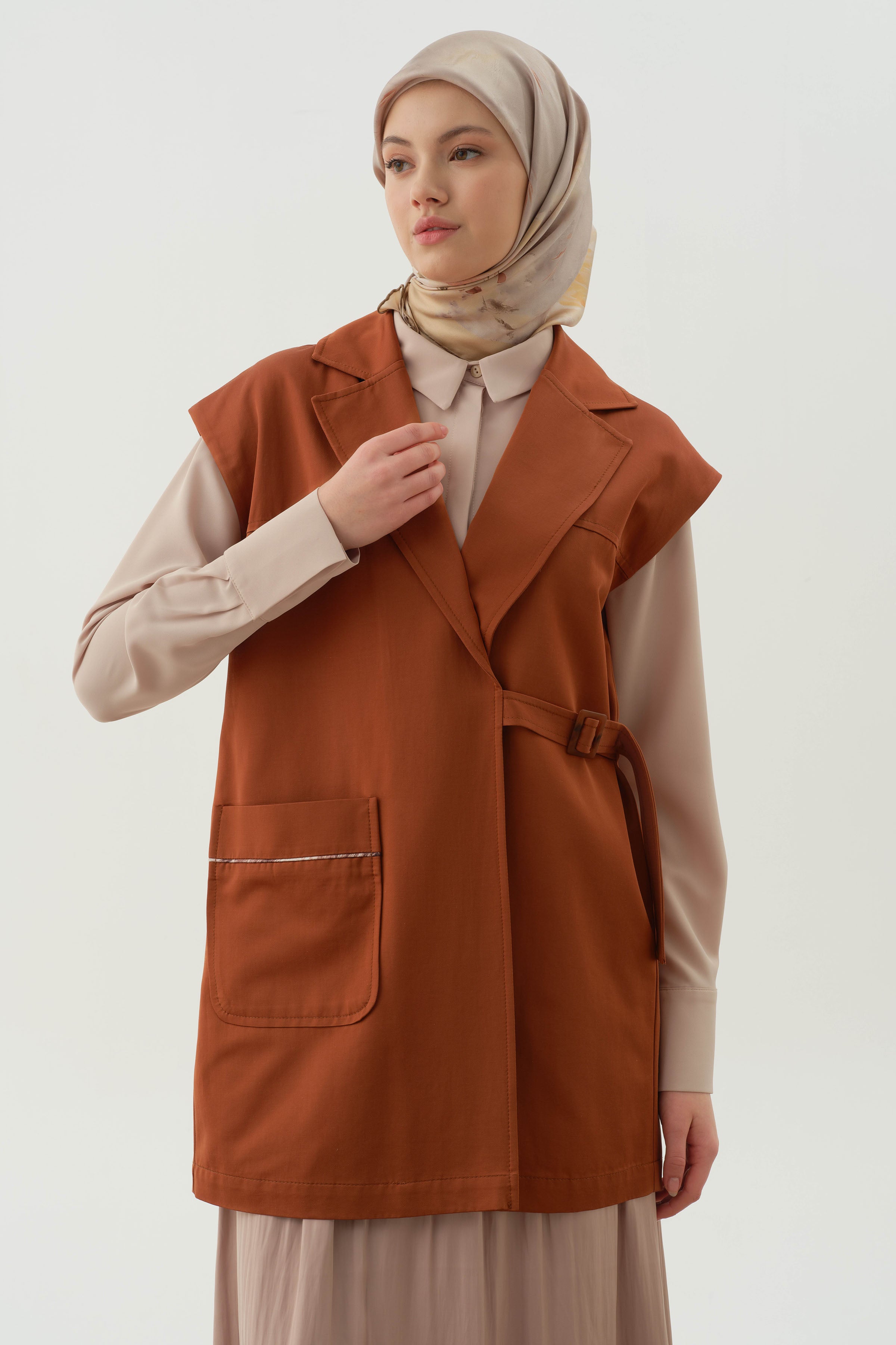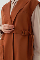 Chaleco cruzado con hebilla de cinturón - Canela