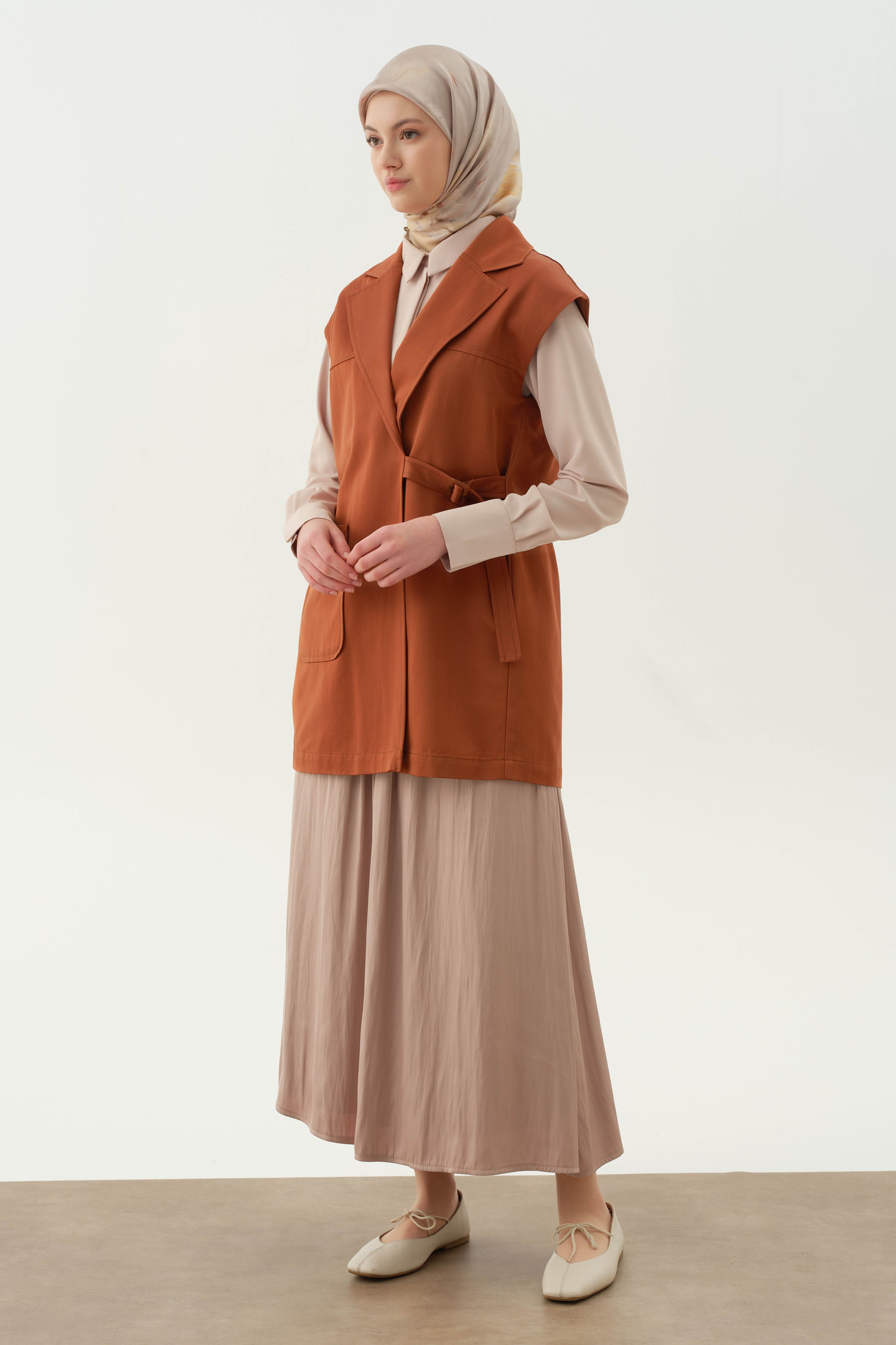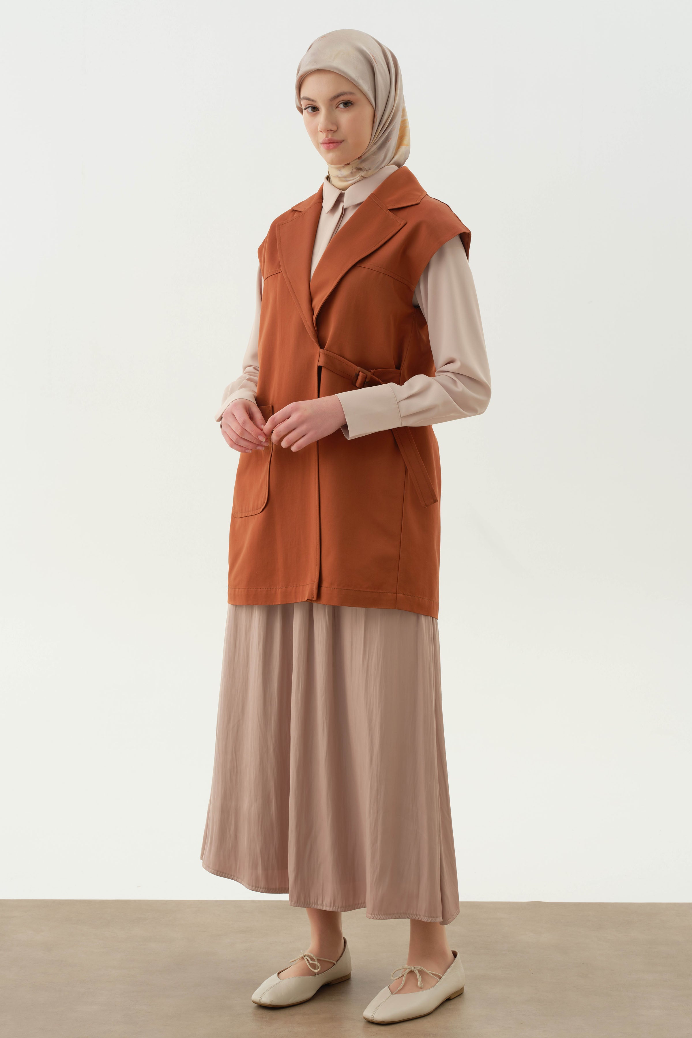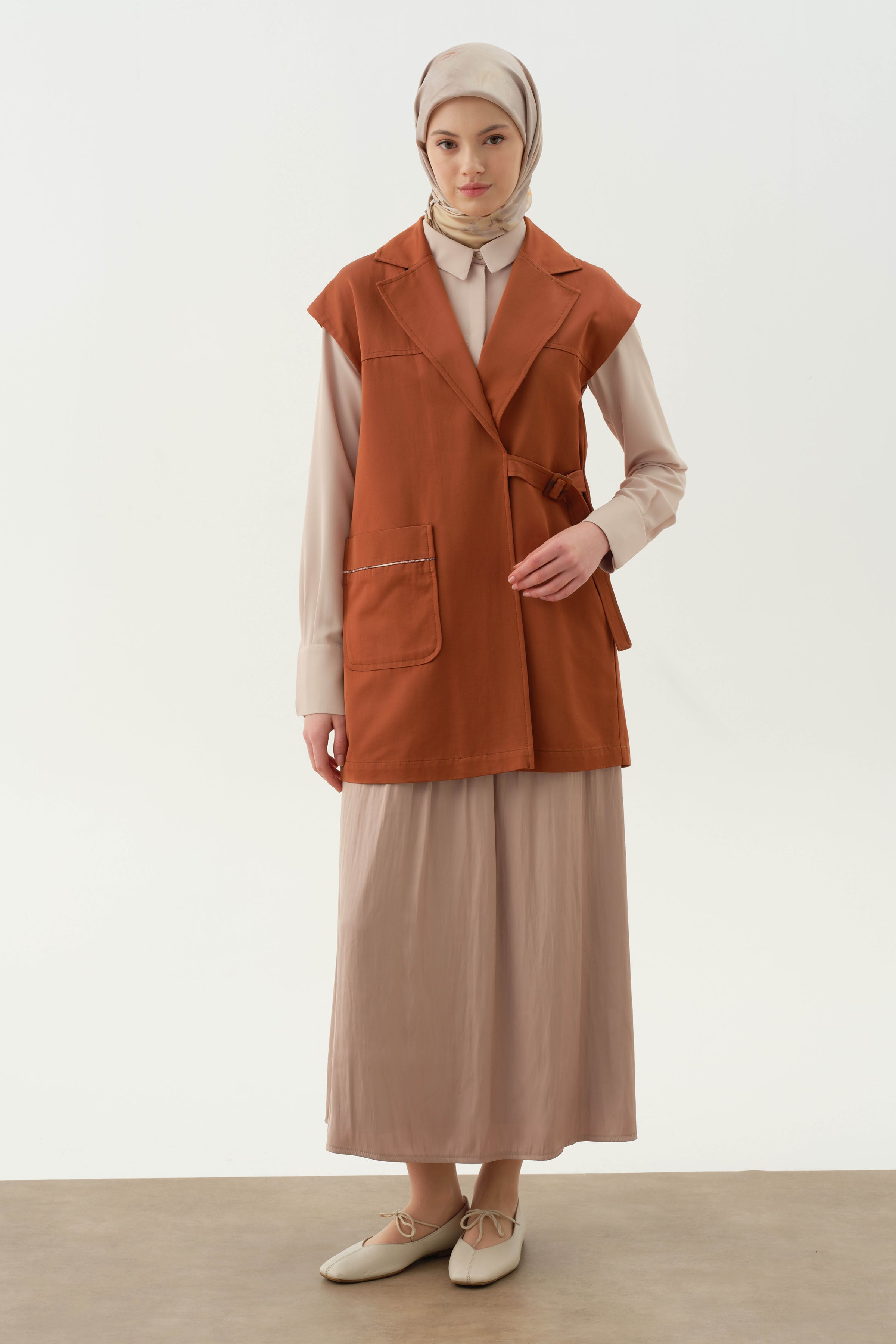 Chaleco cruzado con hebilla de cinturón - Canela