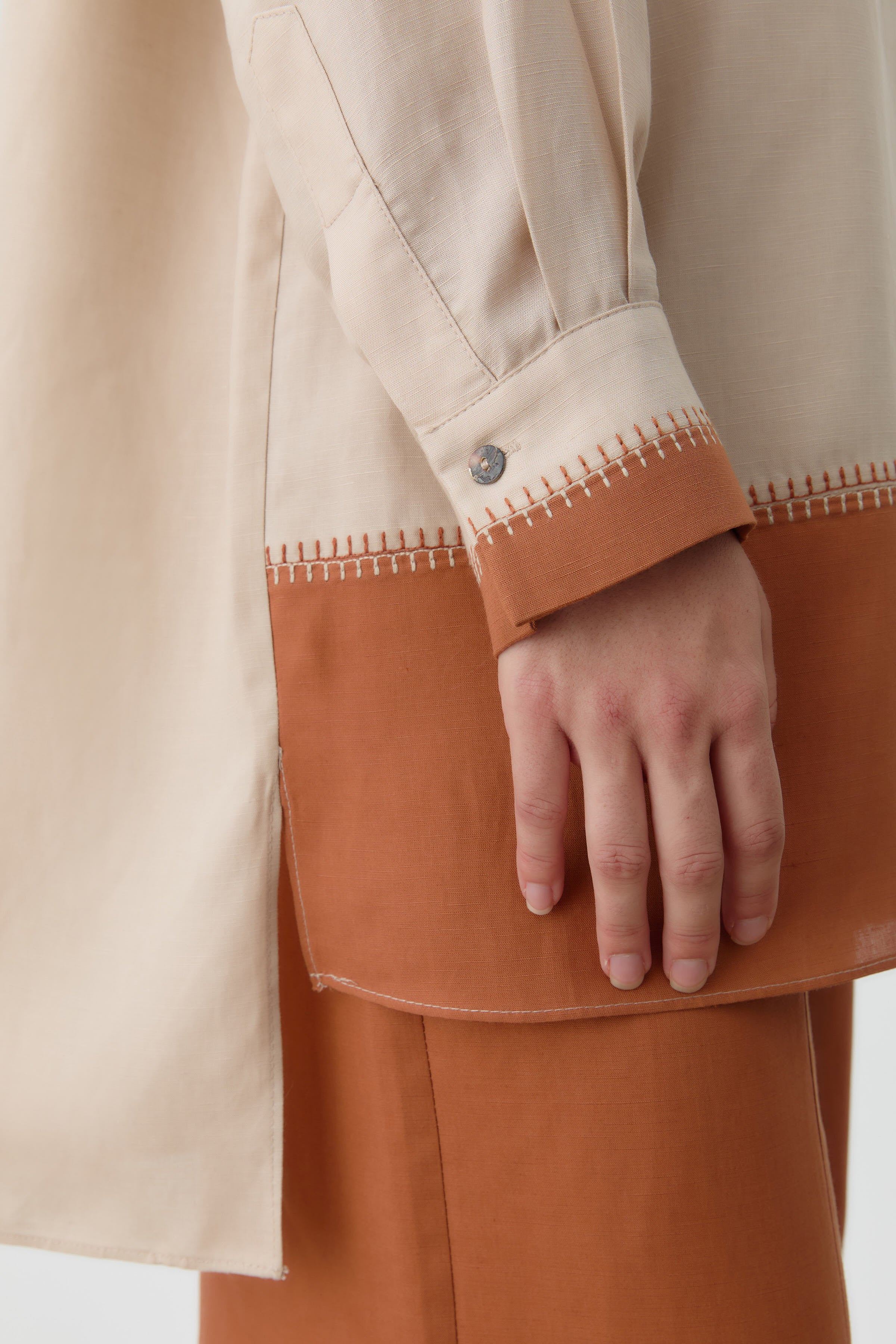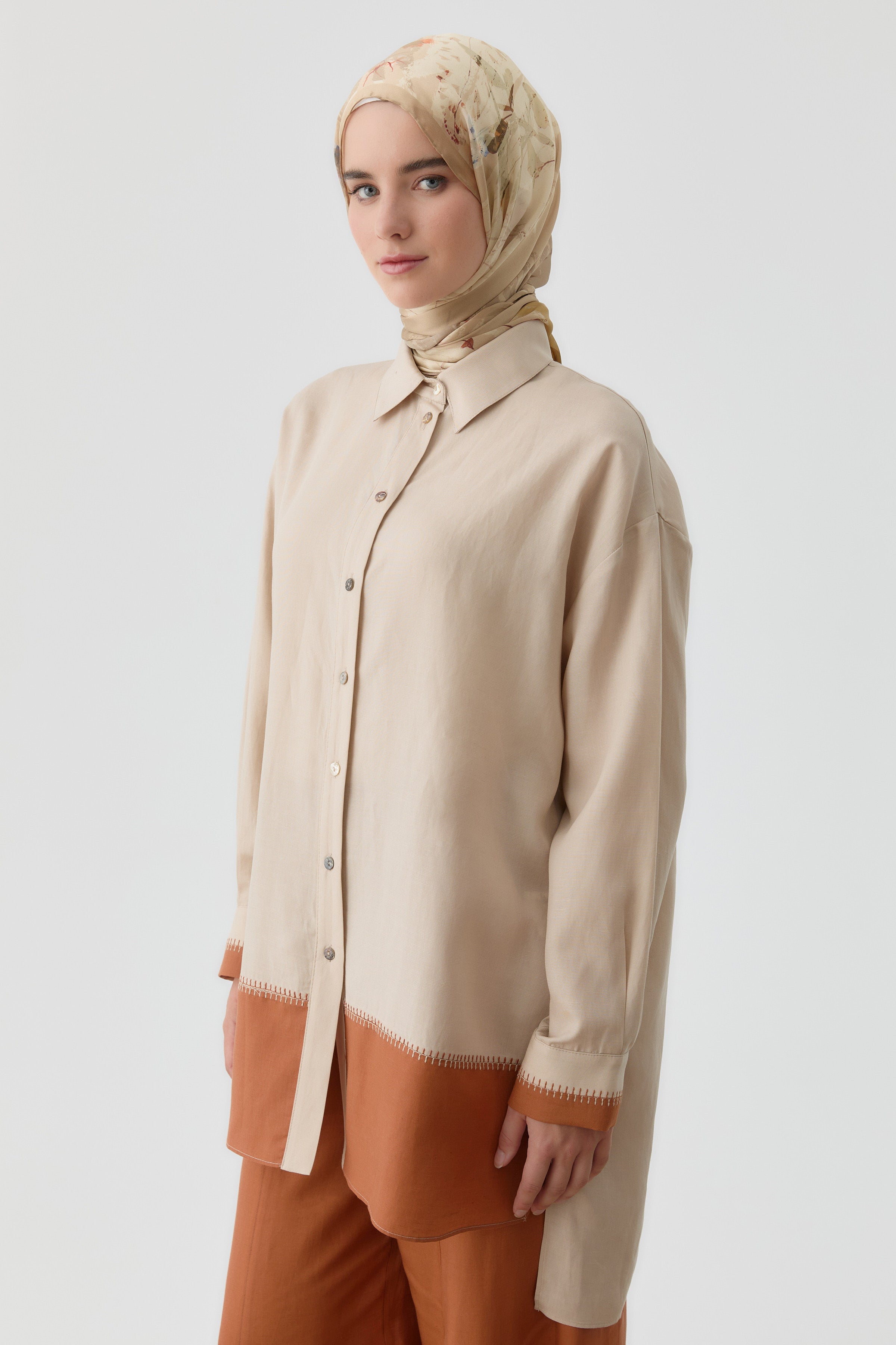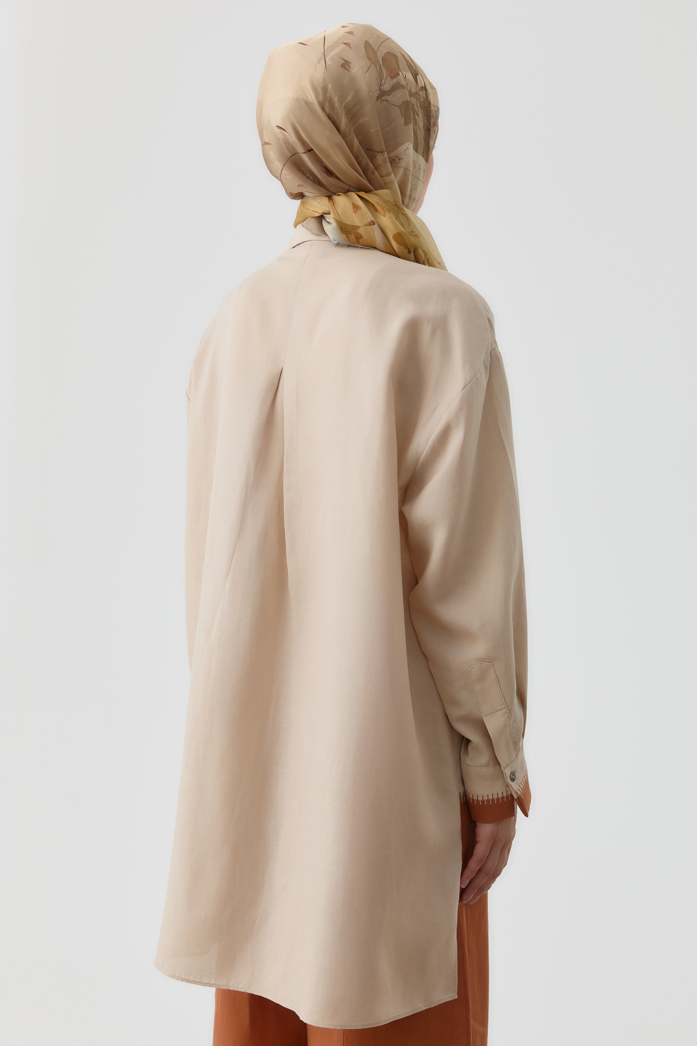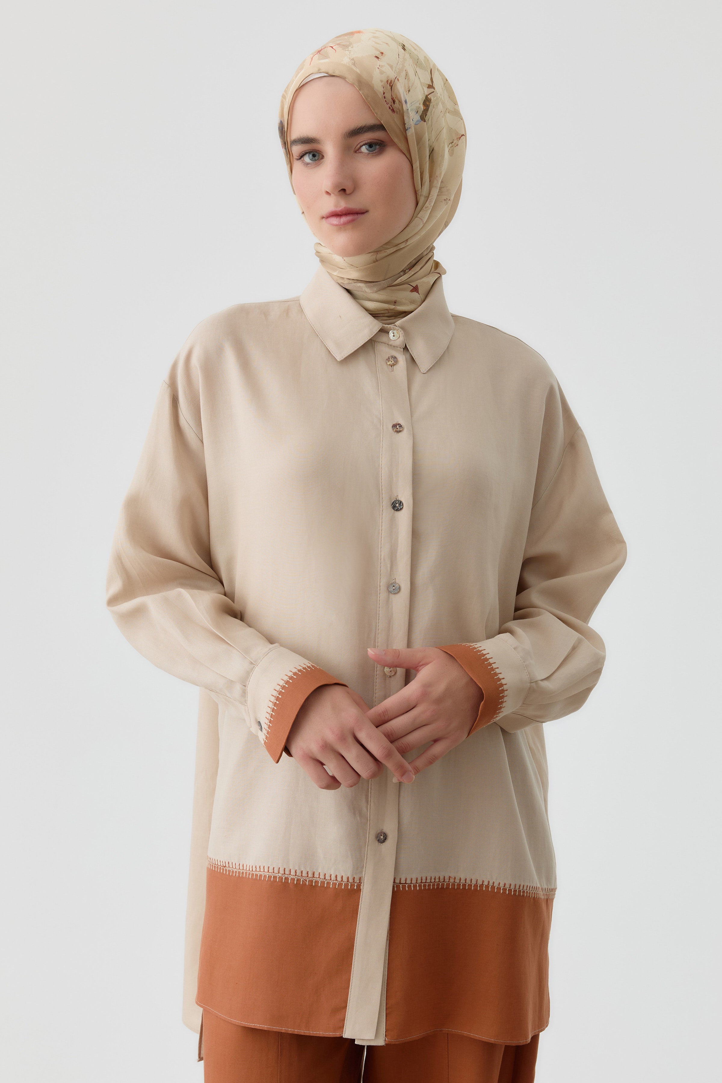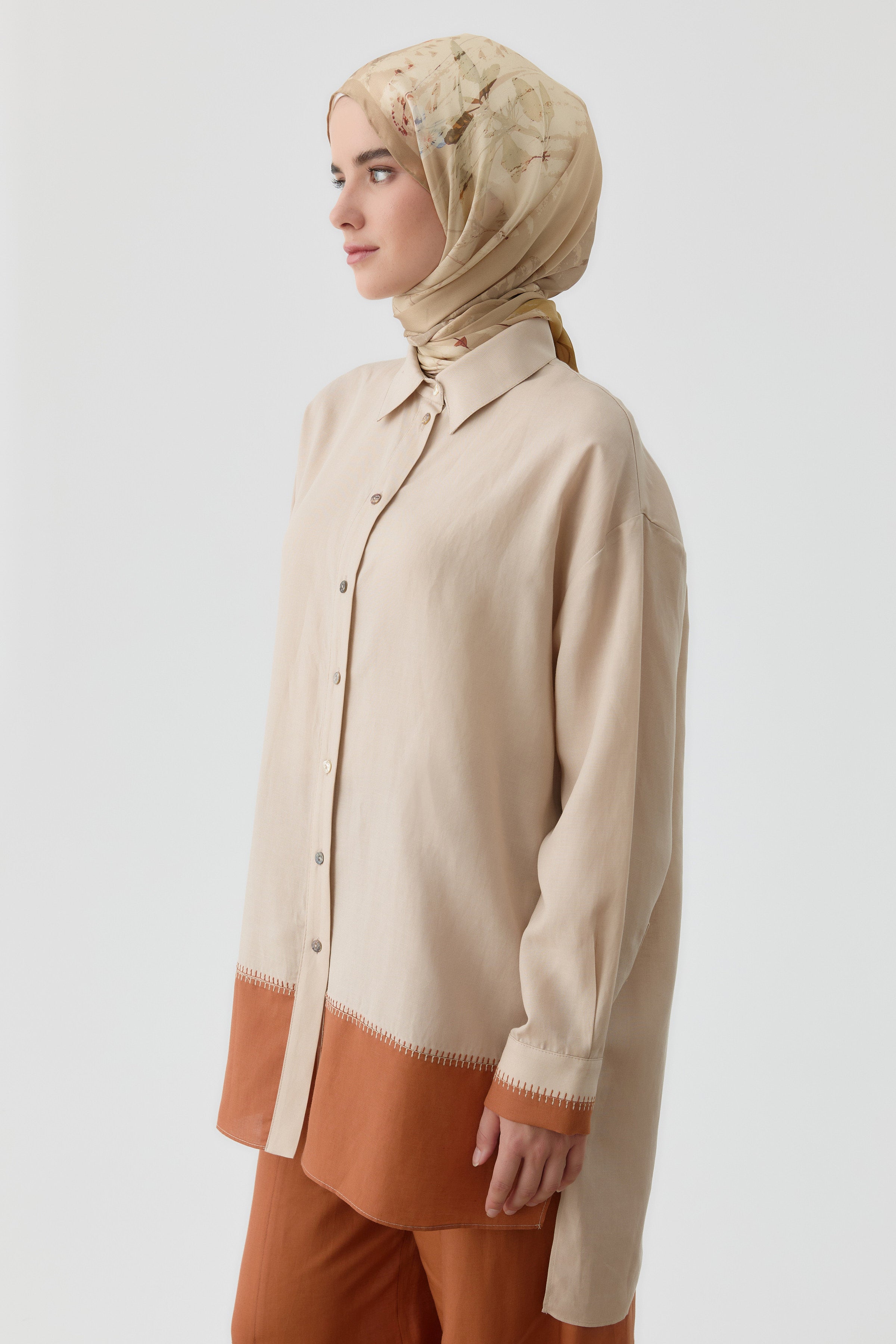 Esta túnica corta, con elegantes detalles bordados, ofrece un look moderno y sofisticado gracias a su diseño de corte holgado. Su estilo relajado aporta comodidad y elegancia a tu día a día.