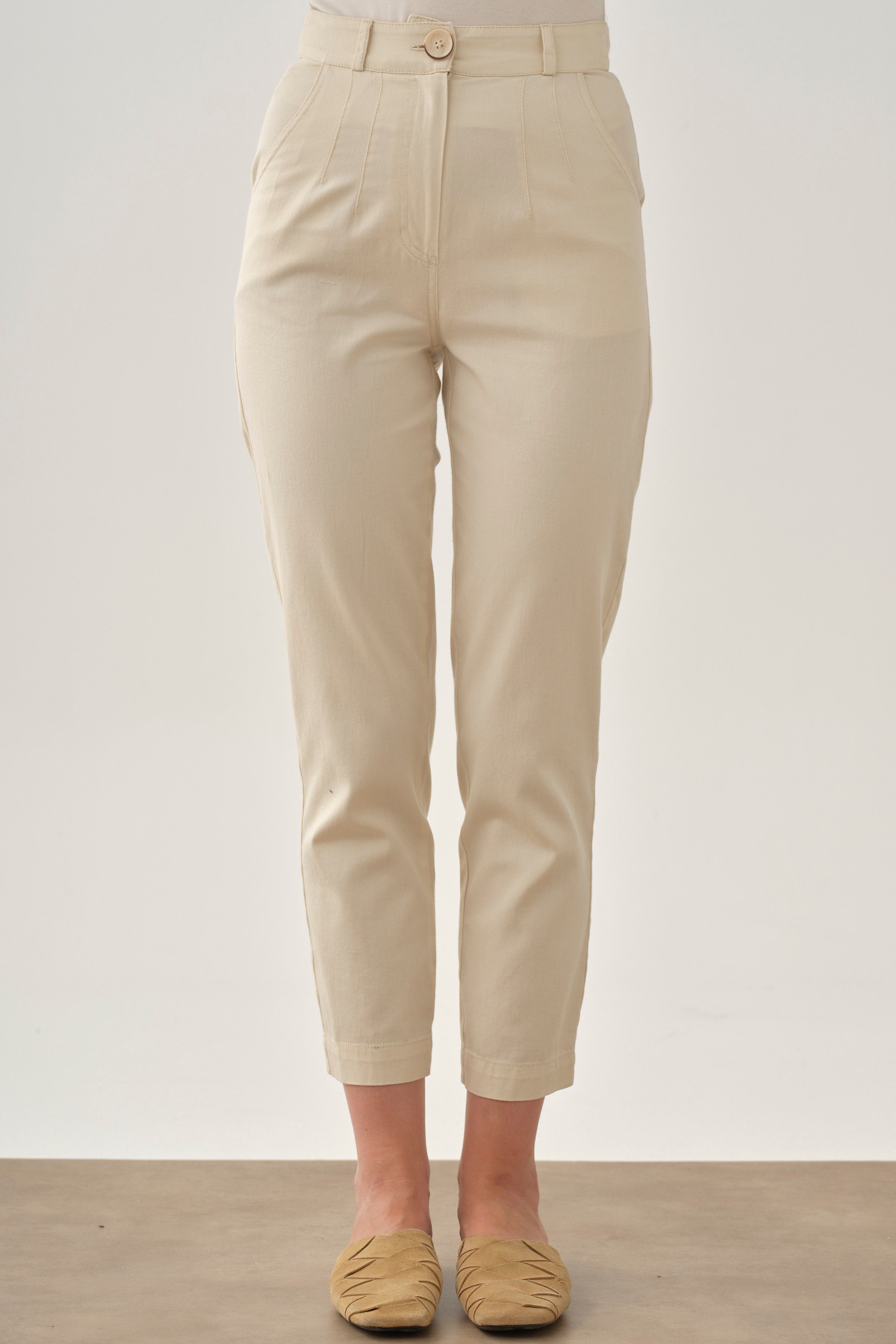 Estos pantalones destacan por su corte limpio y moderno, y sus pinzas realzan elegantemente la figura. Su color liso combina a la perfección con cualquier atuendo, creando una elegancia atemporal.