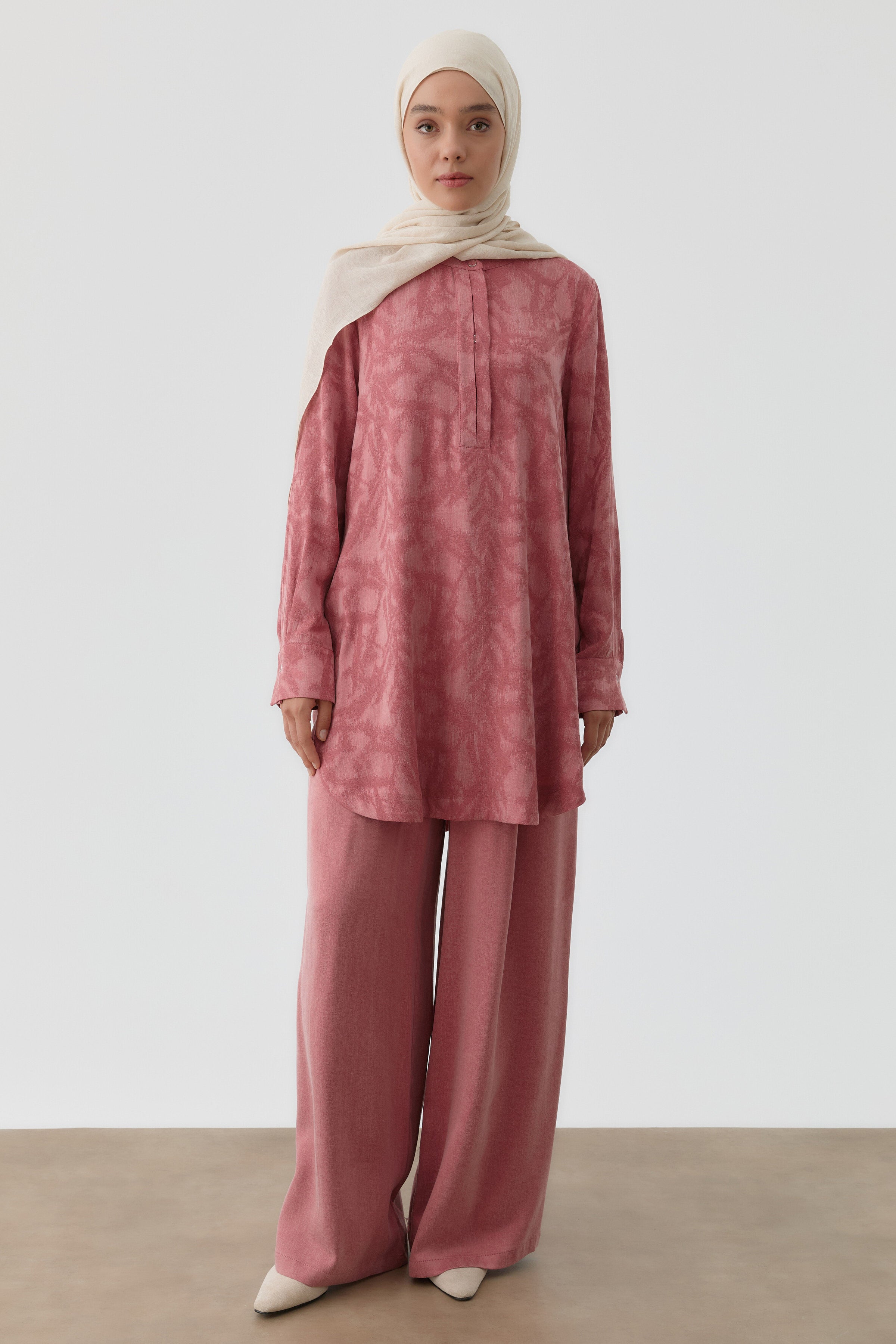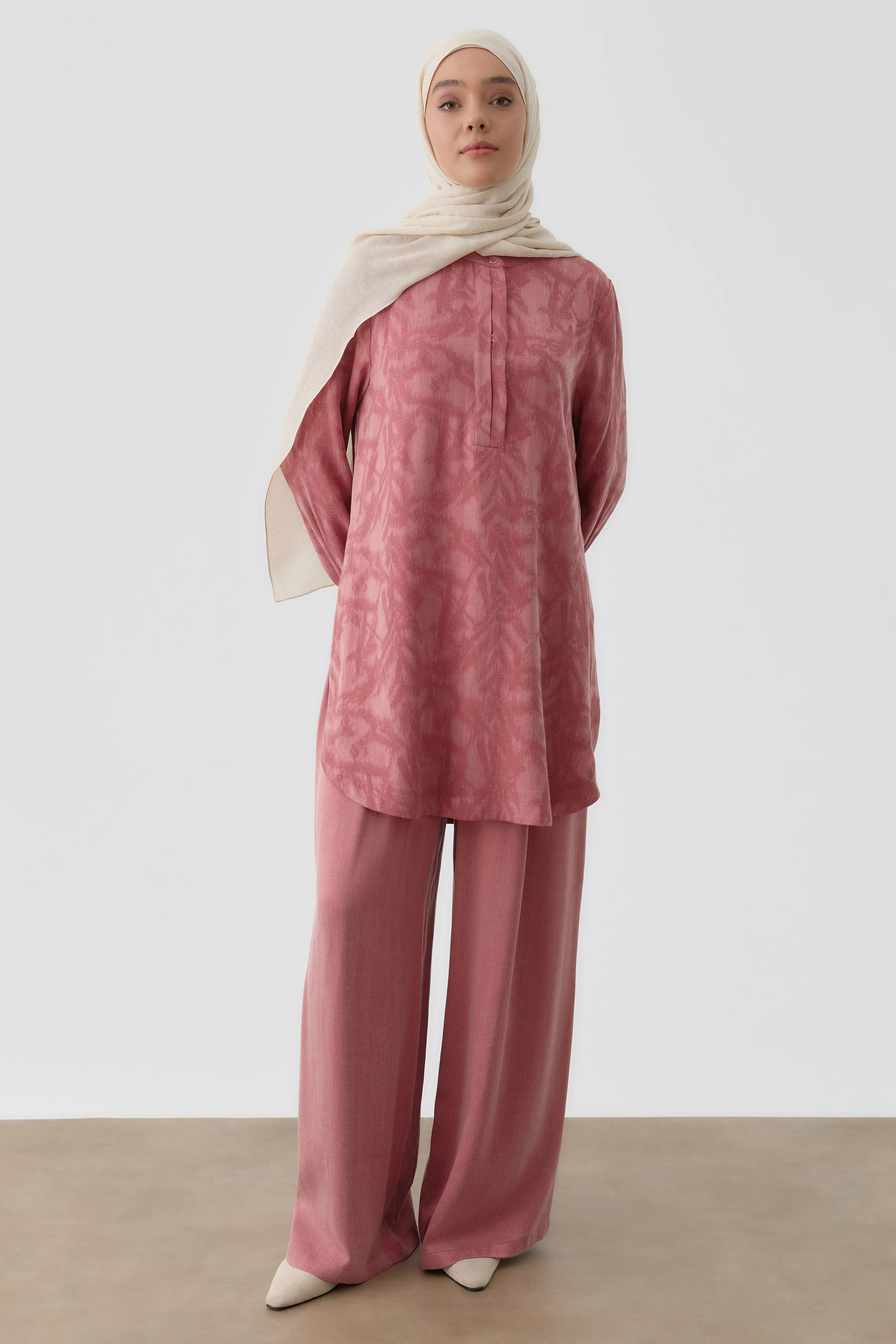 Túnica con abertura oculta y pliegues - Rosa empolvado