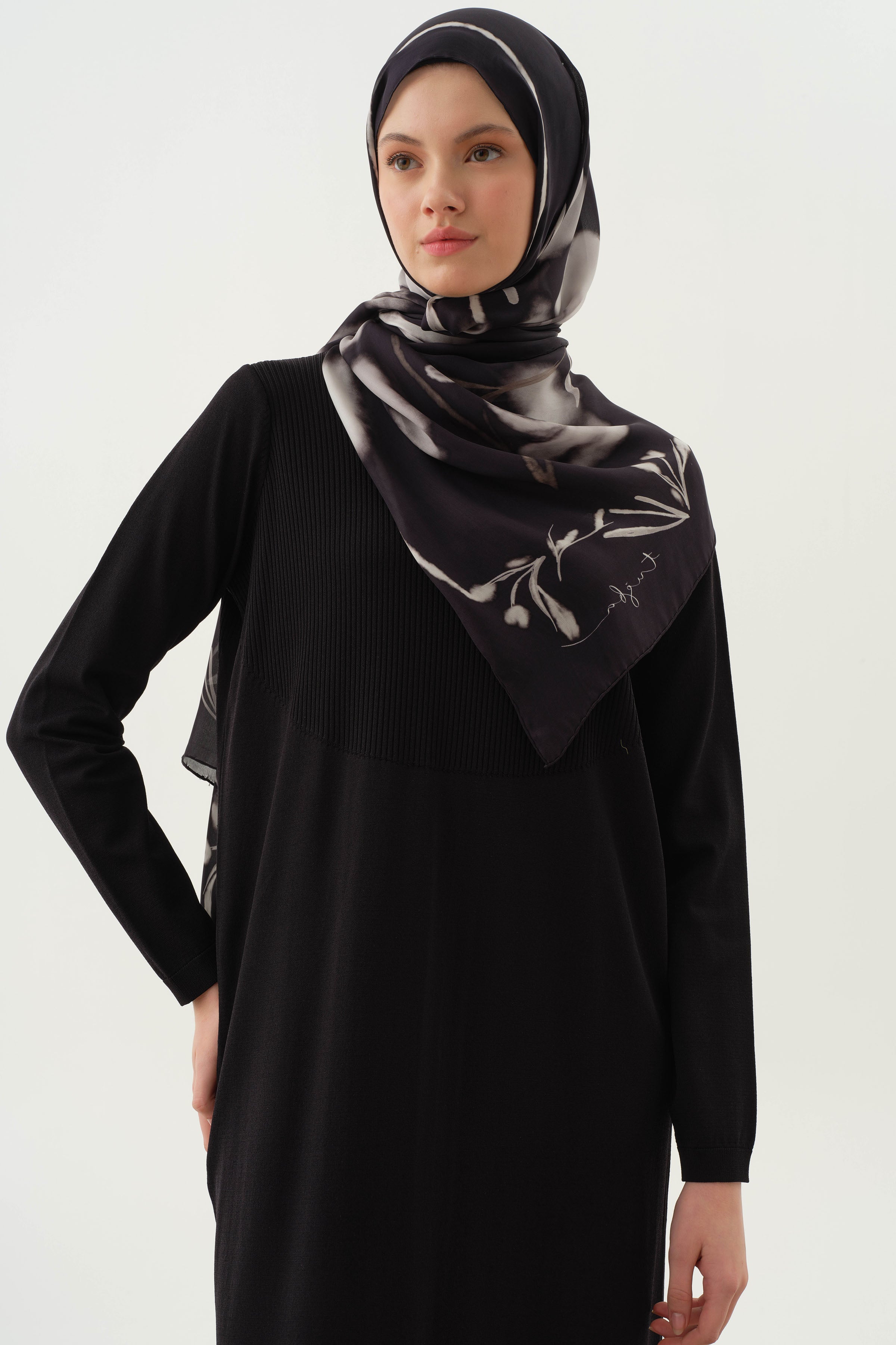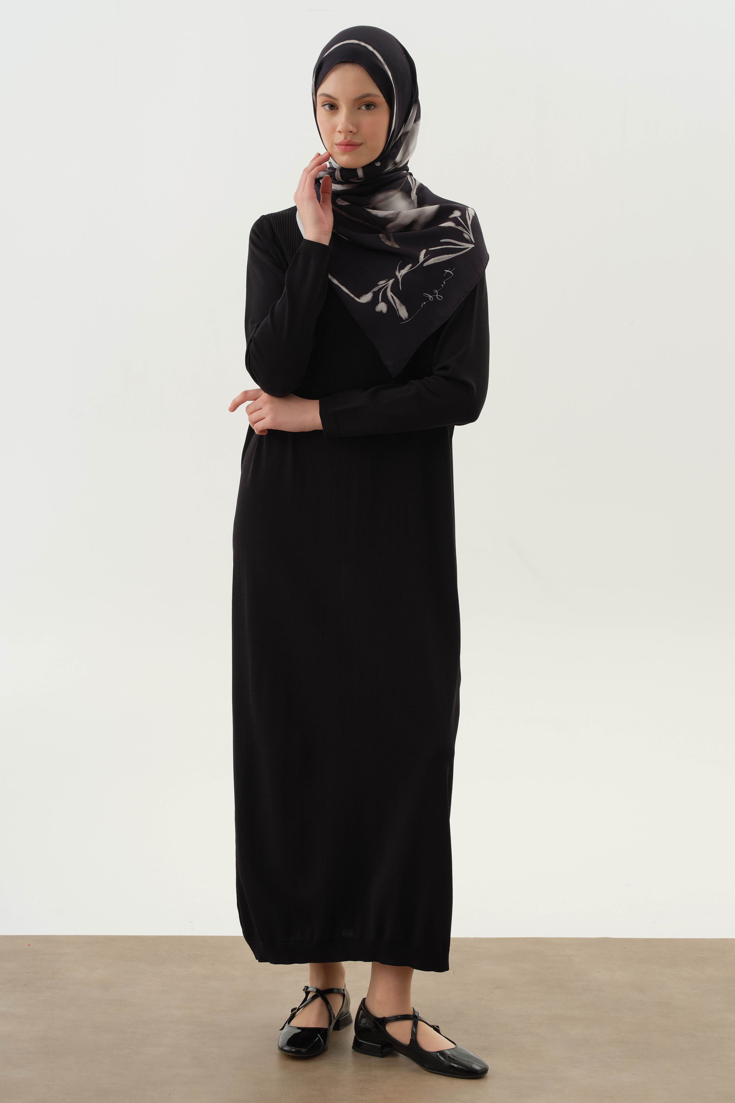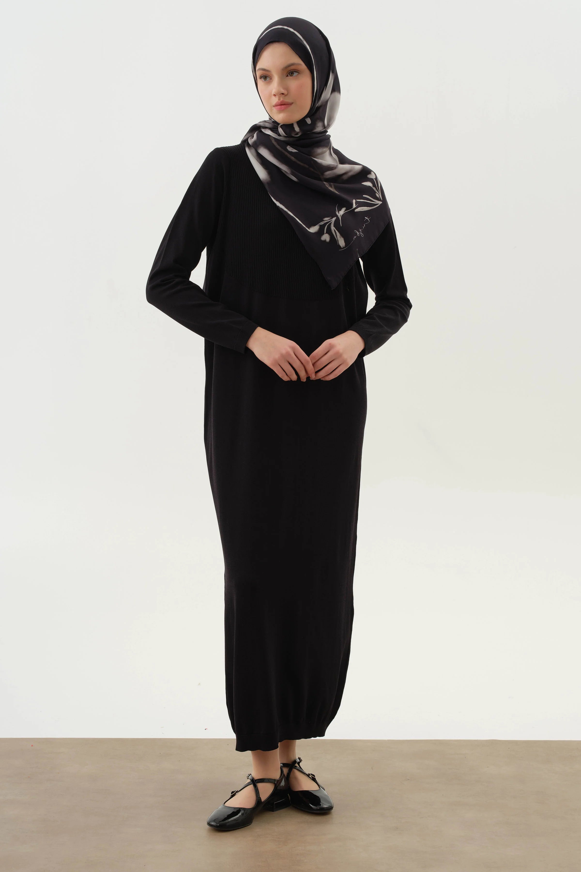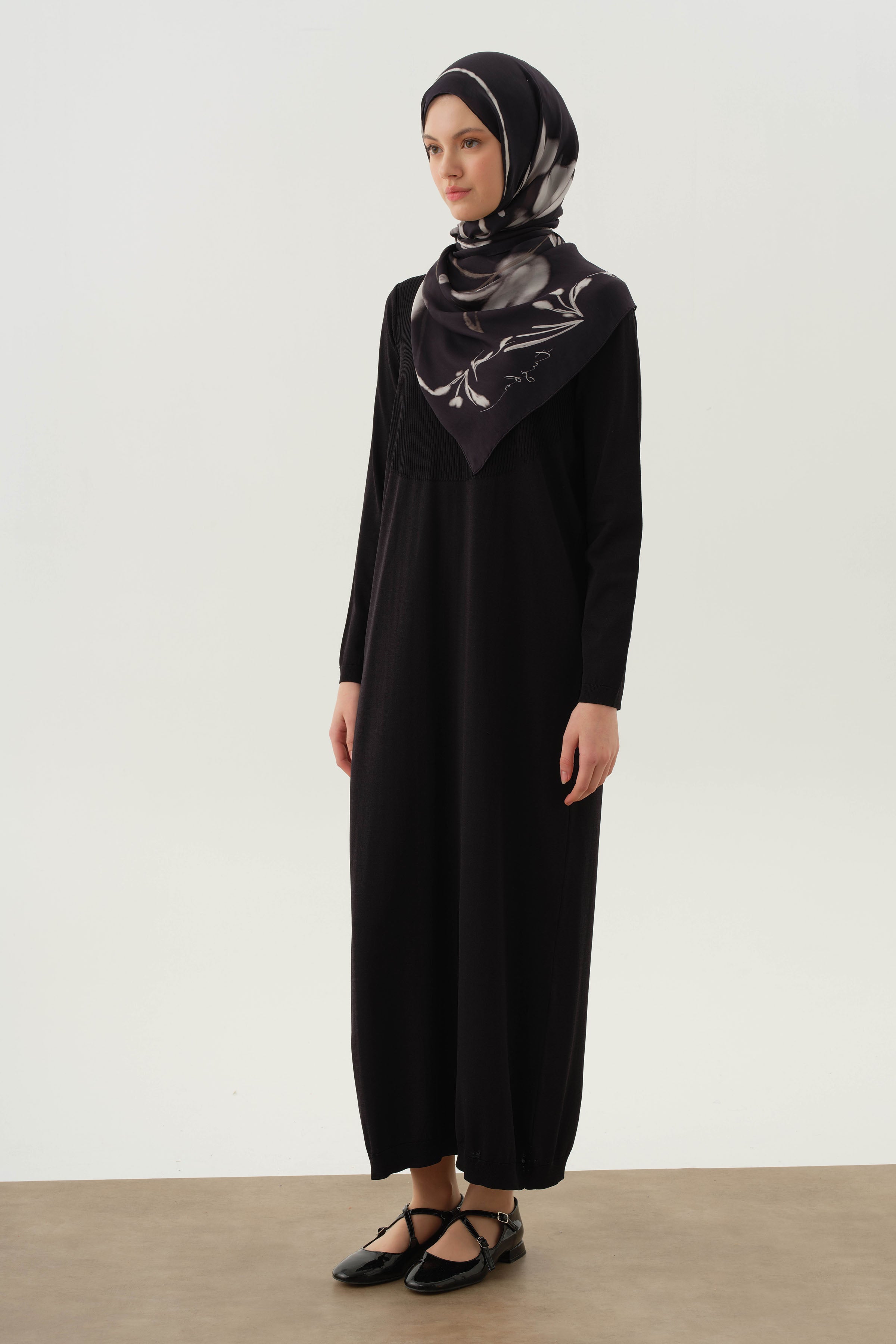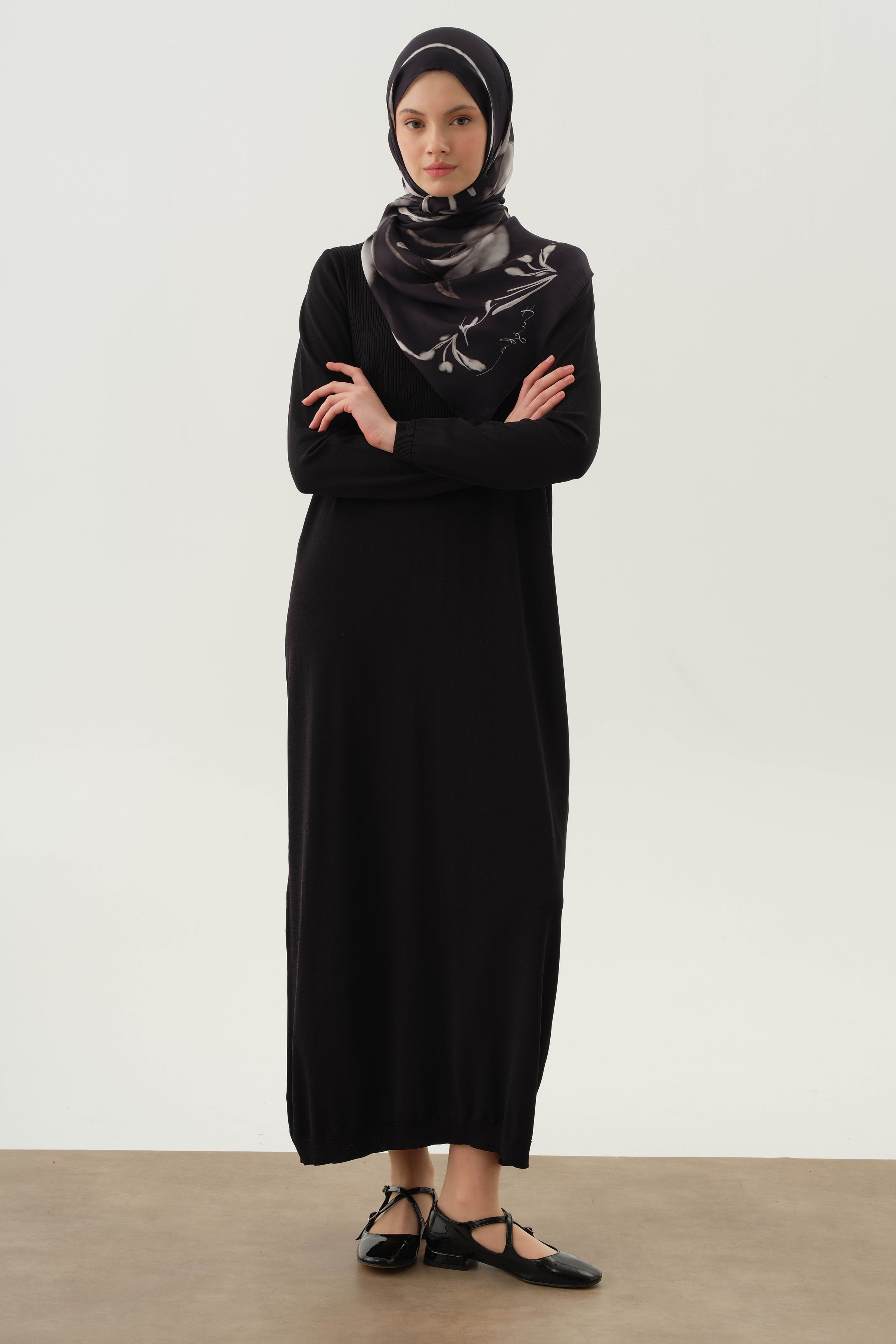 Si bien proporciona comodidad durante todo el día con su estructura de tejido de punto flexible, hace que el largo parezca más largo y la postura parezca más noble con sus patrones de líneas verticales.