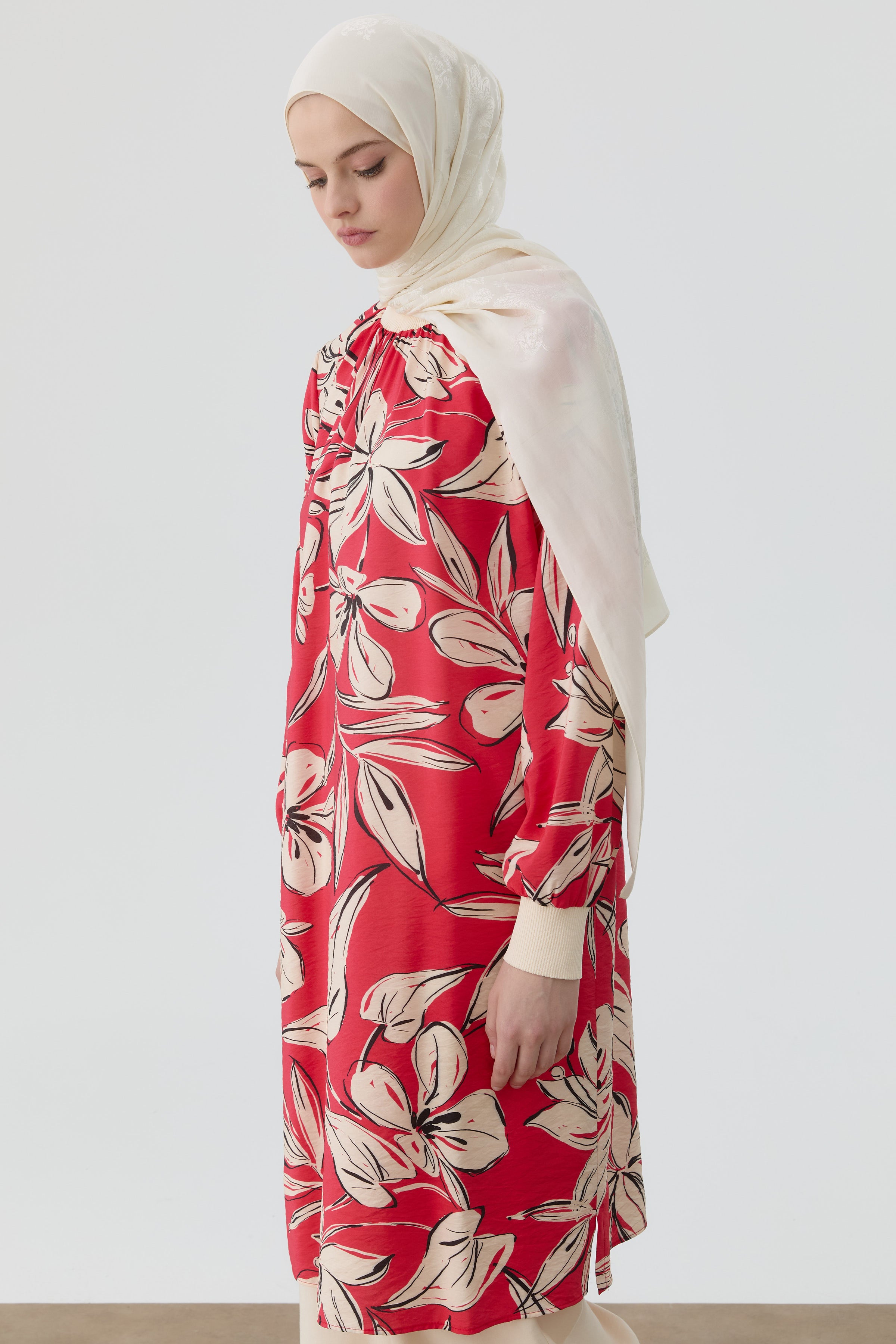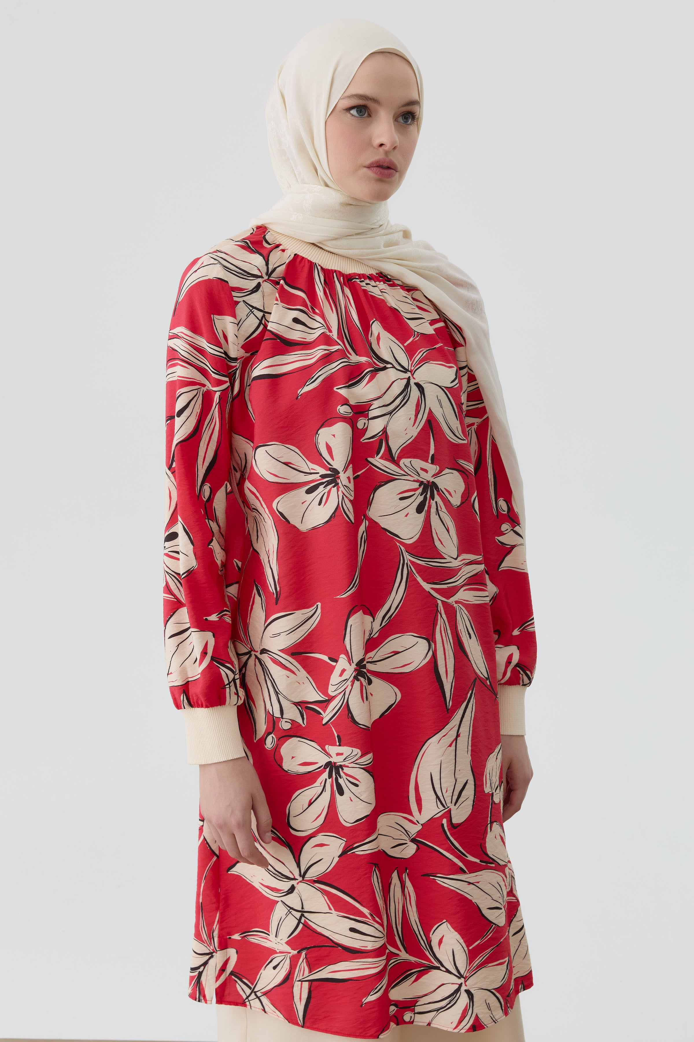 La atmósfera romántica de los estampados florales logra un aspecto moderno con detalles acanalados.