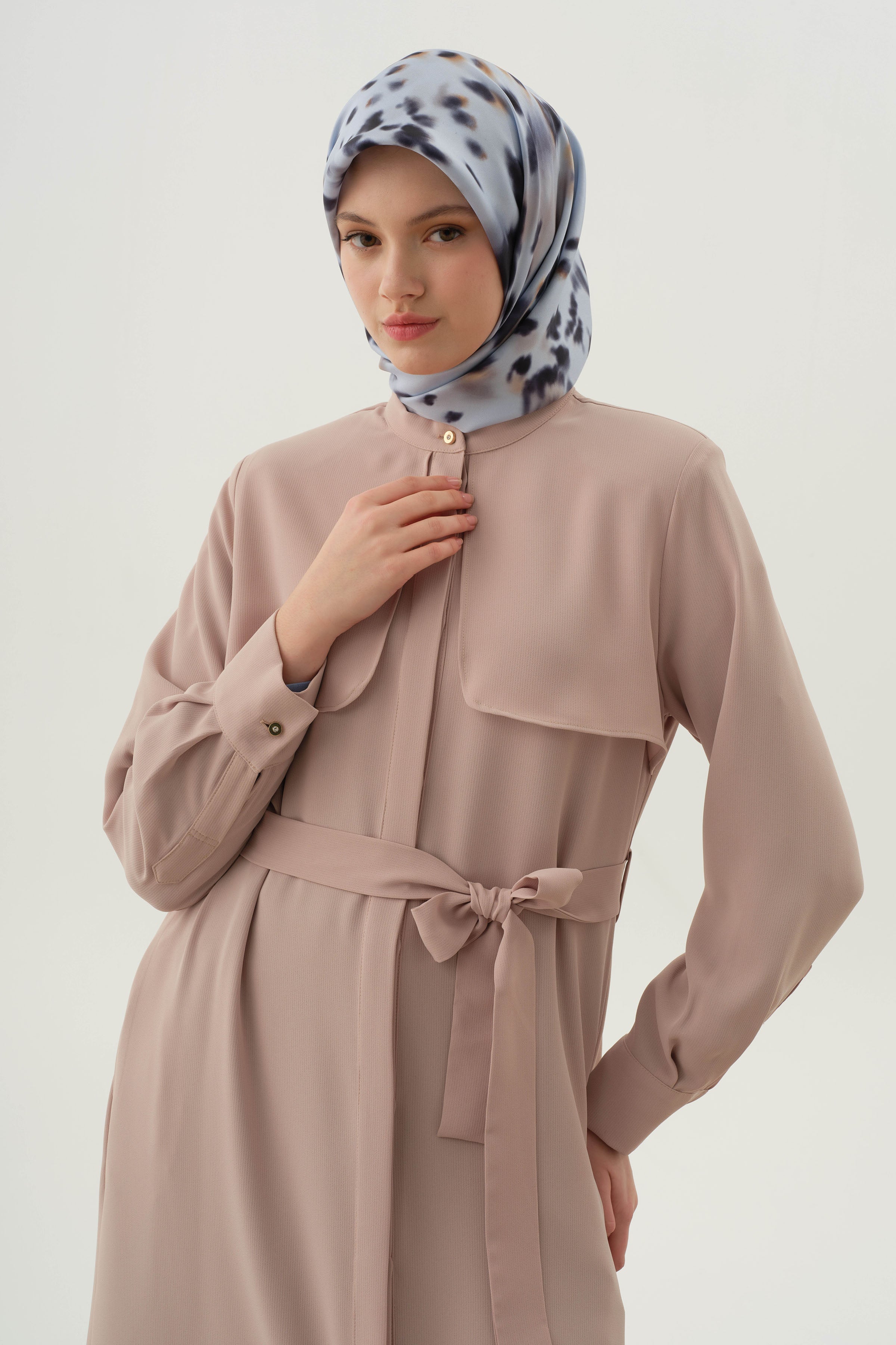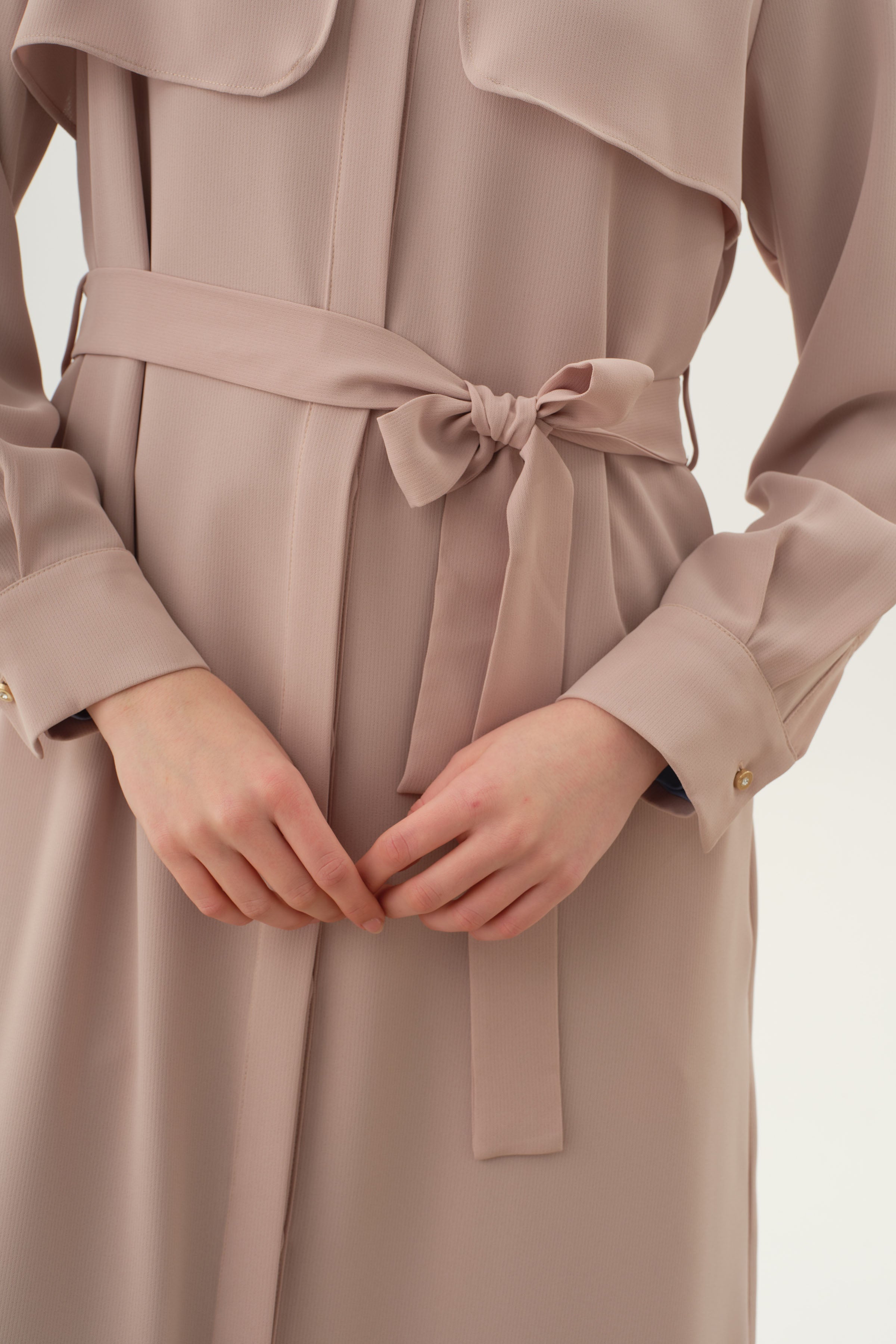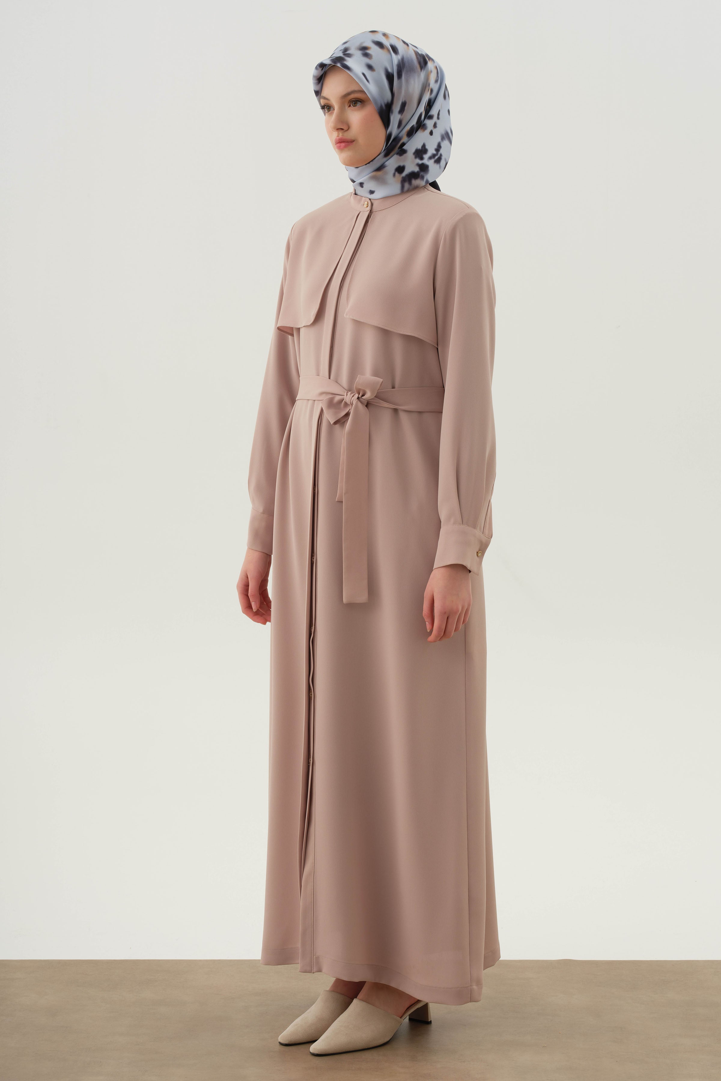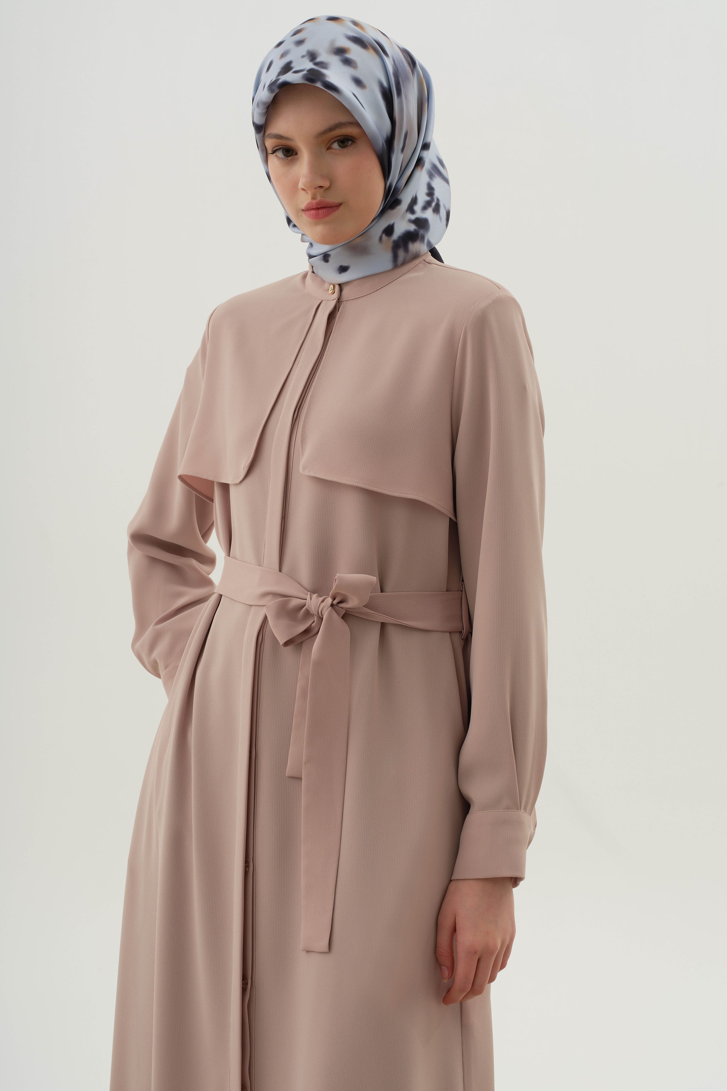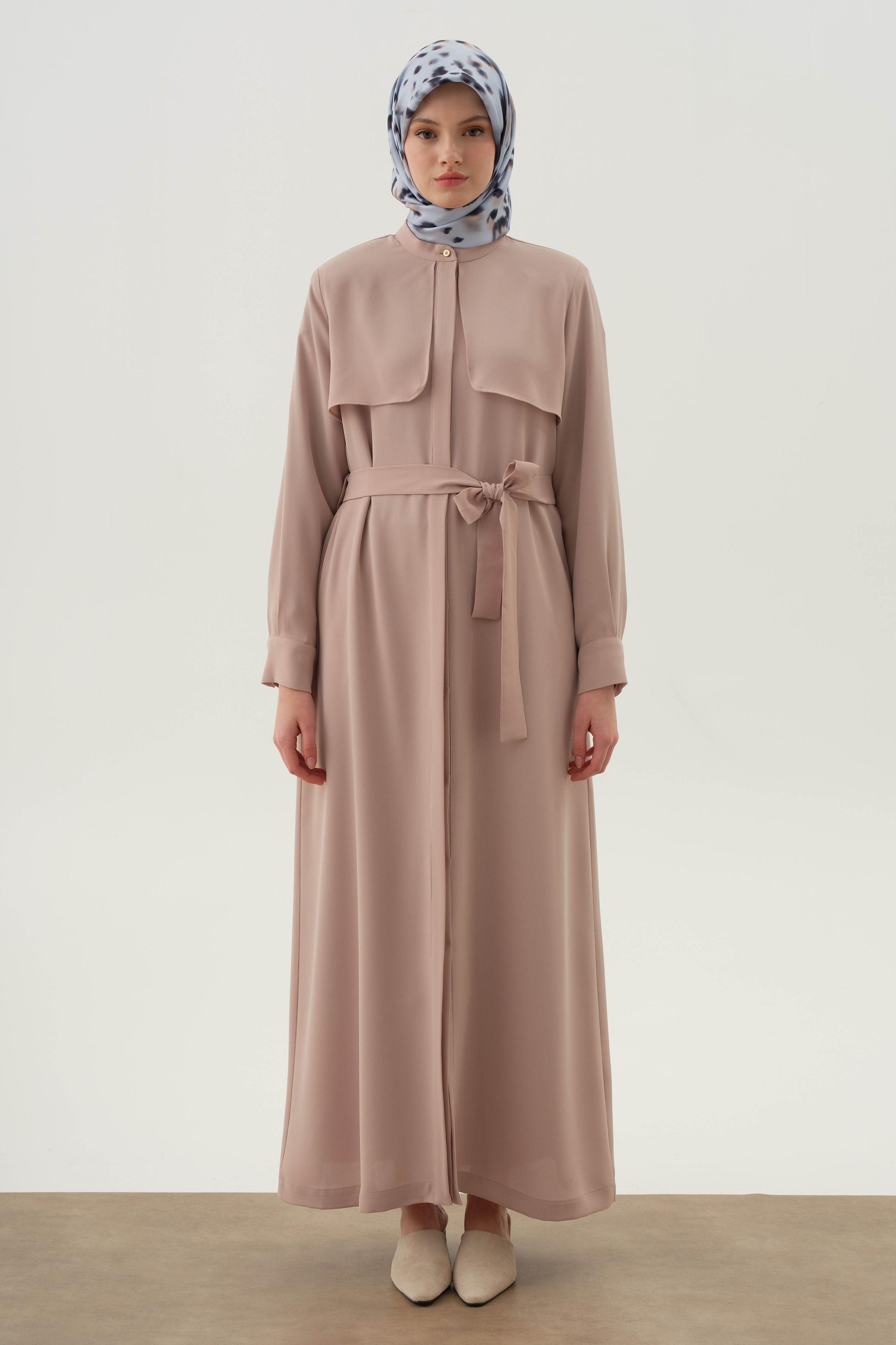 Abaya con cinturón y detalle cortavientos - Beige