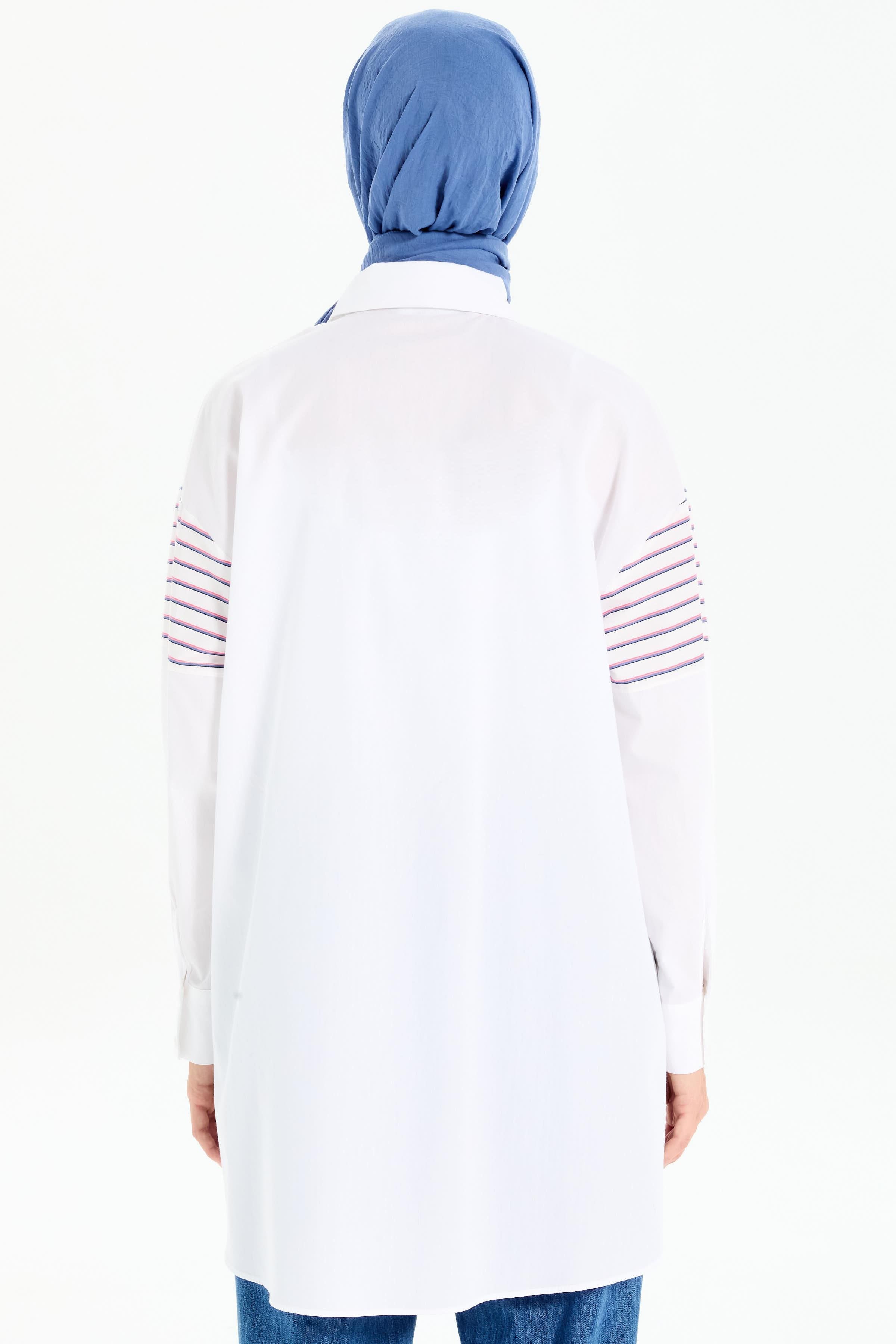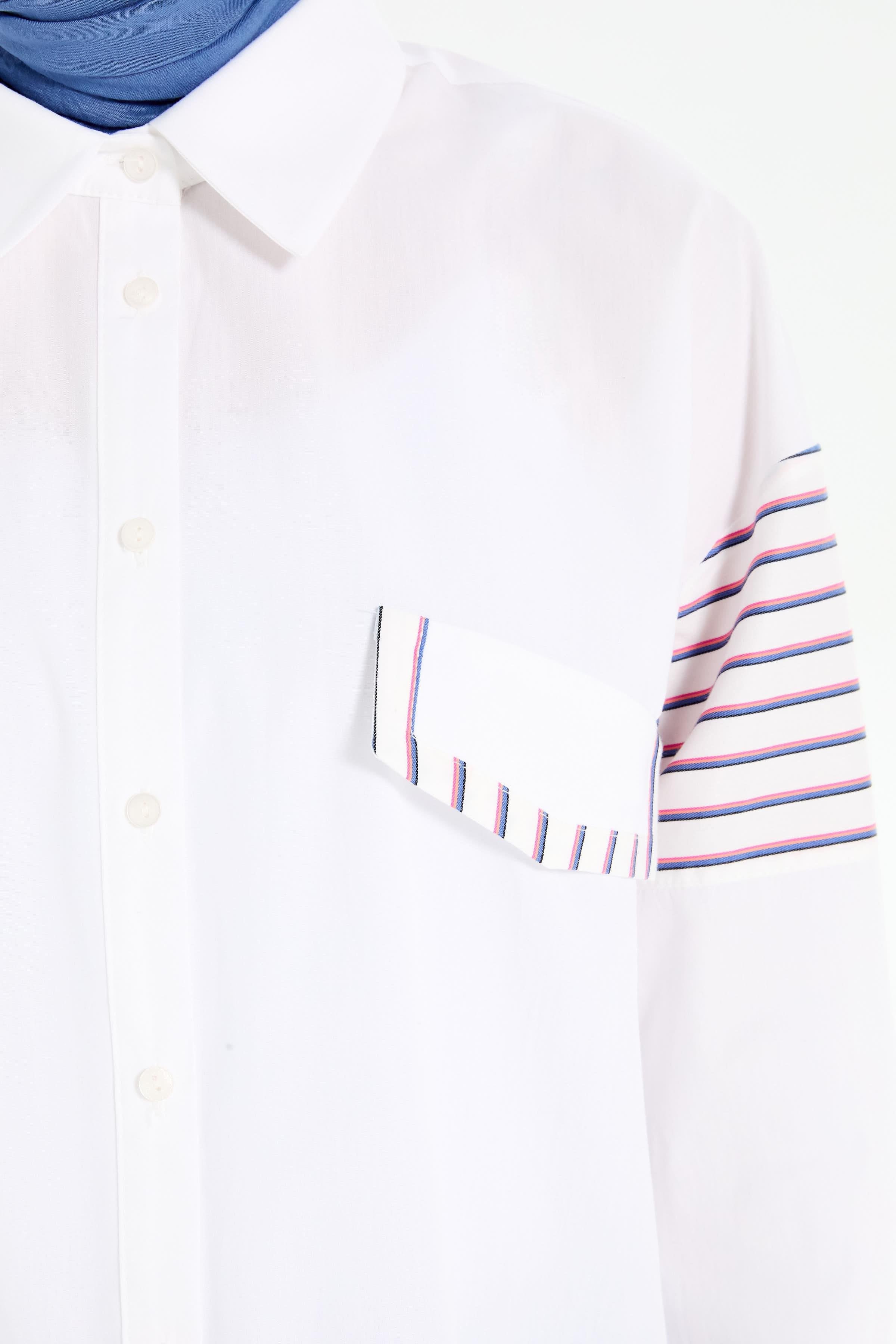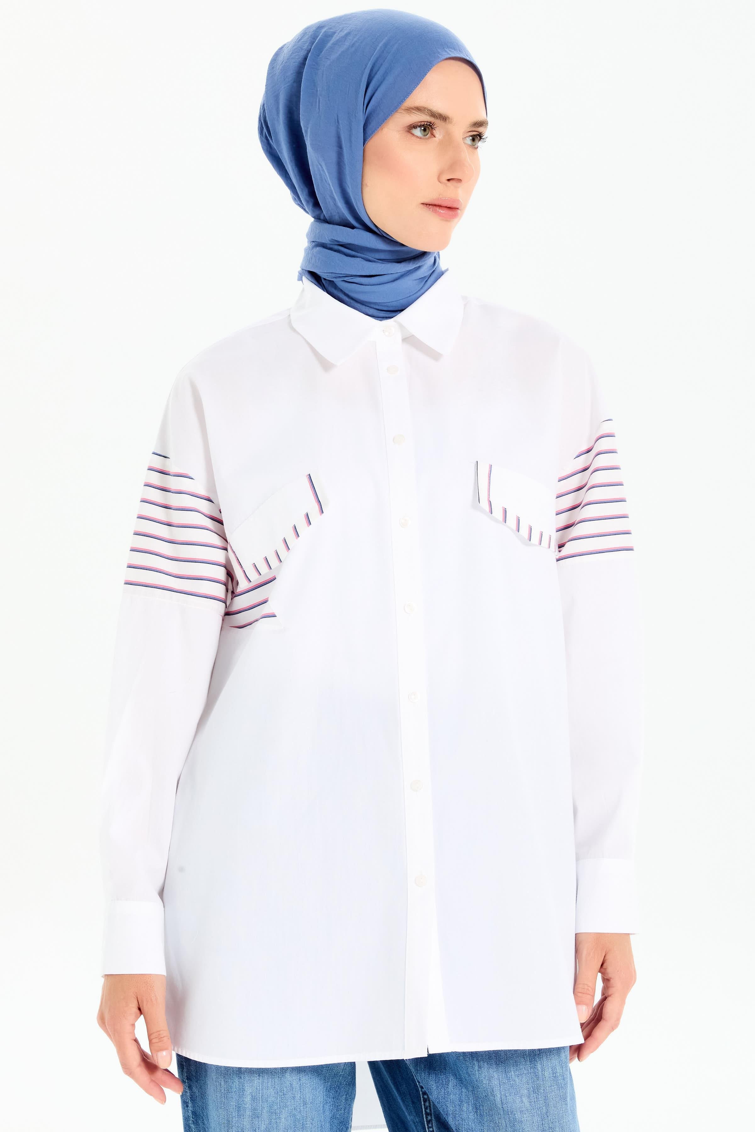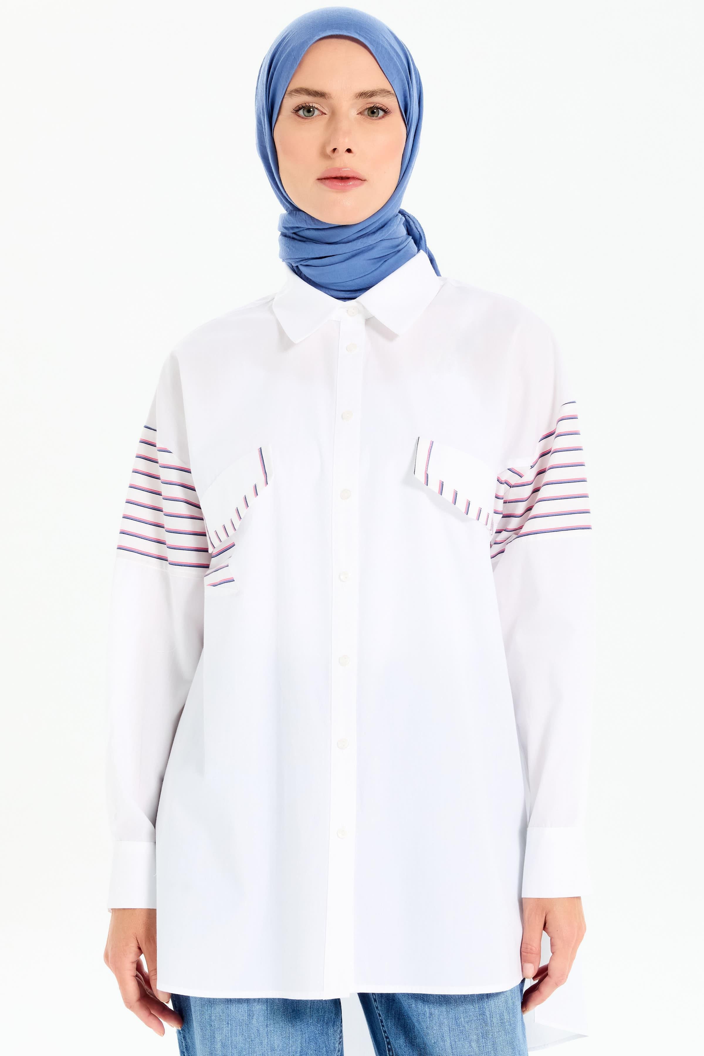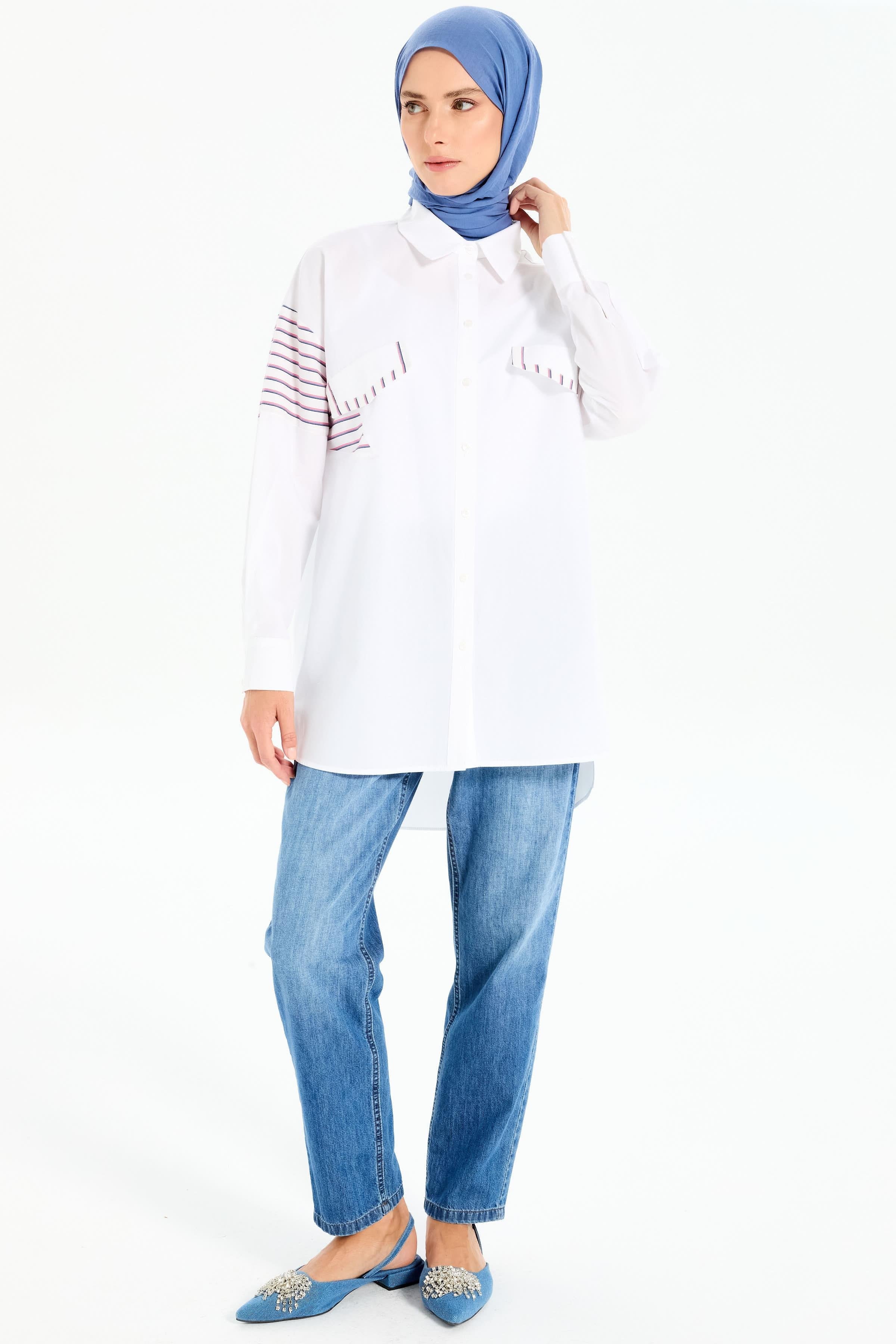 Camisa adornada con solapa de bolsillo ornamental - Blanca