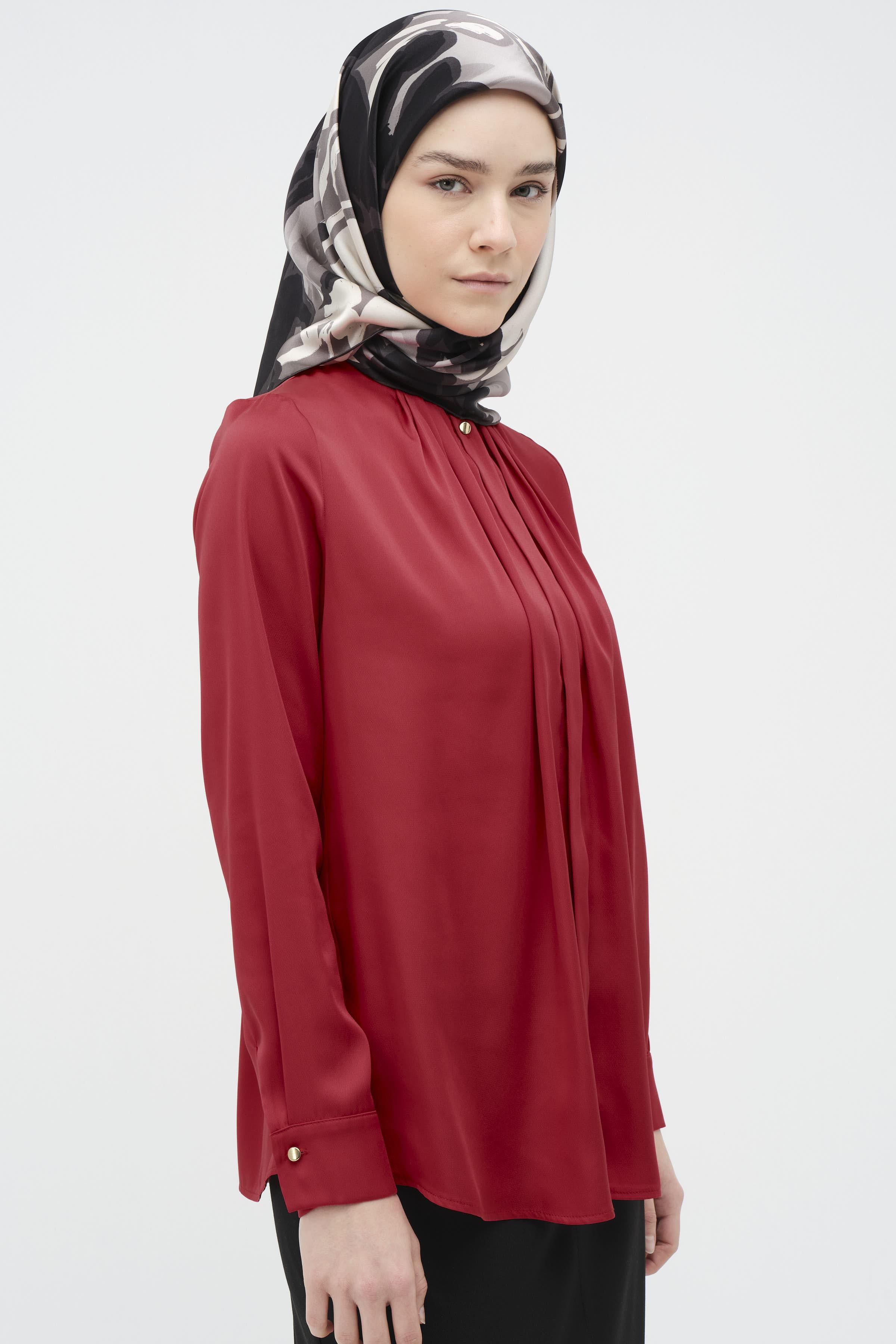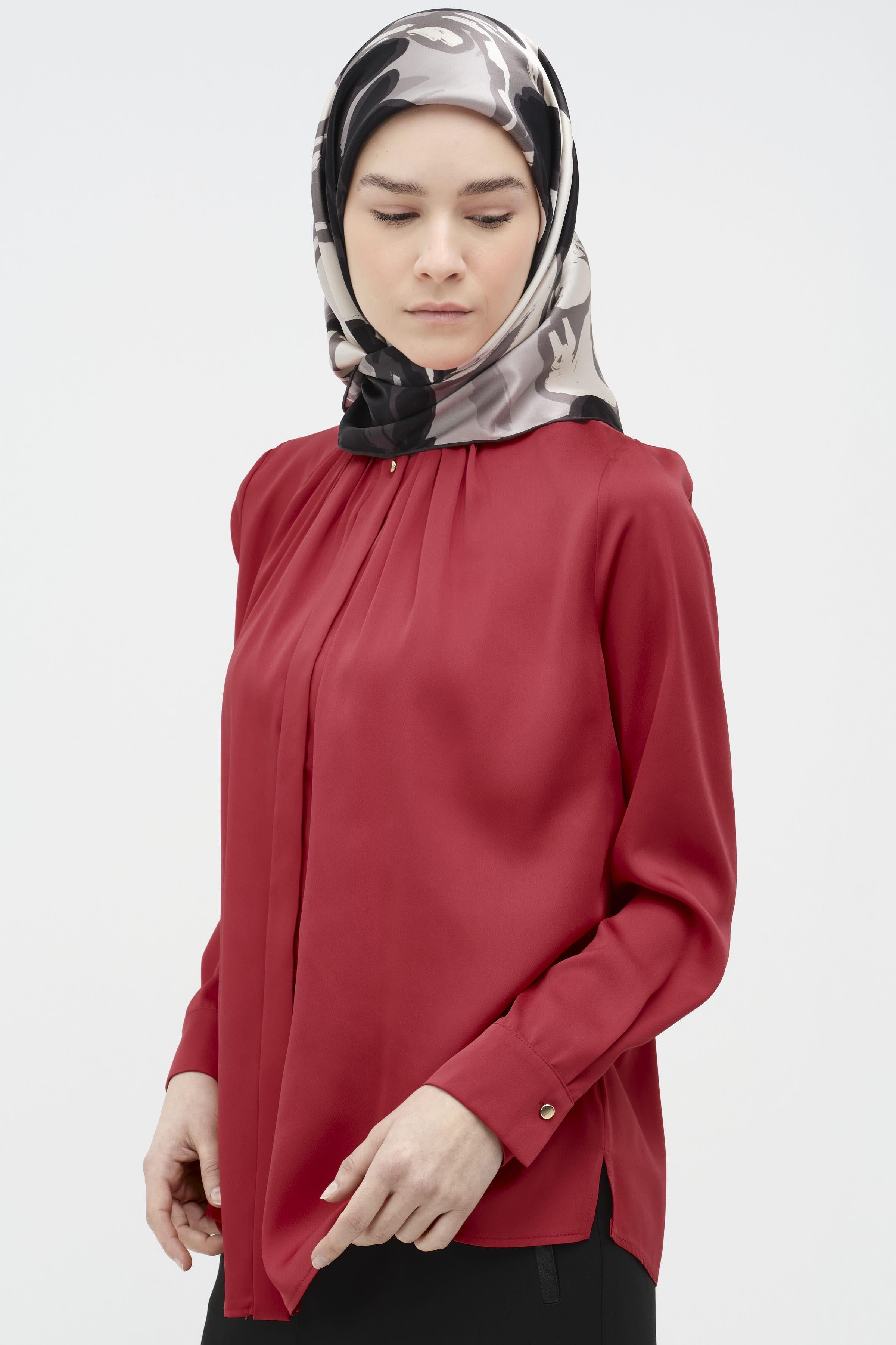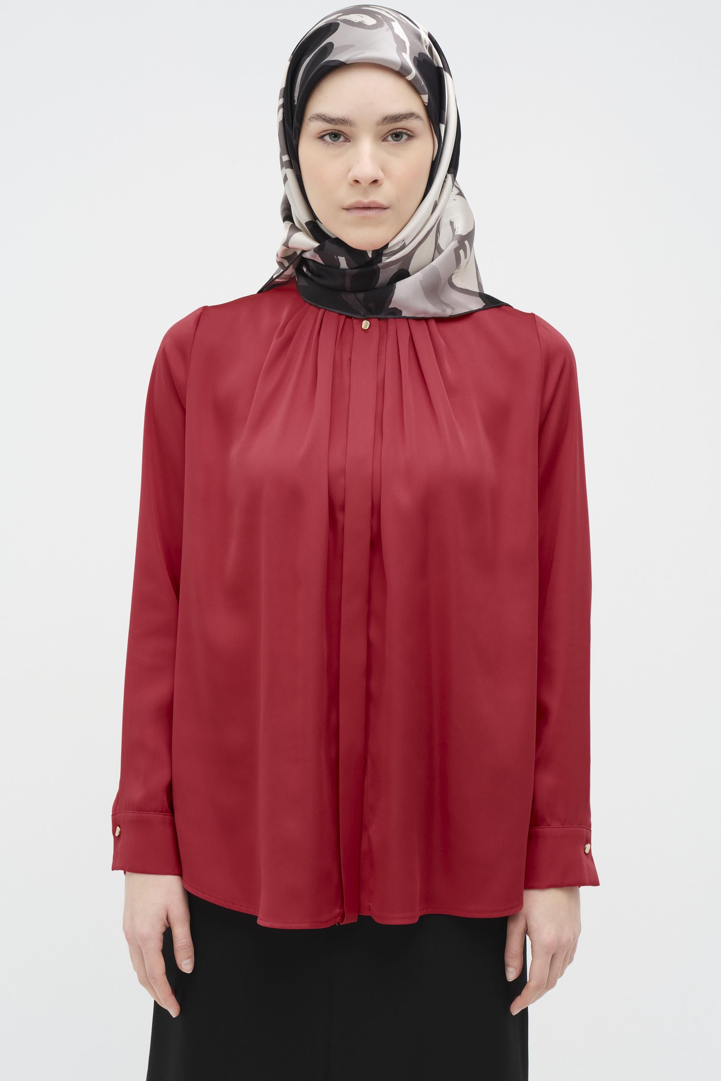 Ofreciendo una elegancia moderna con su detalle de tapeta inversa oculta y diseño plisado, esta camisa llama la atención con su estilo único. Si bien proporciona comodidad durante todo el día gracias a su corte fluido y tejido ligero, resalta tu estilo con sus elegantes detalles.