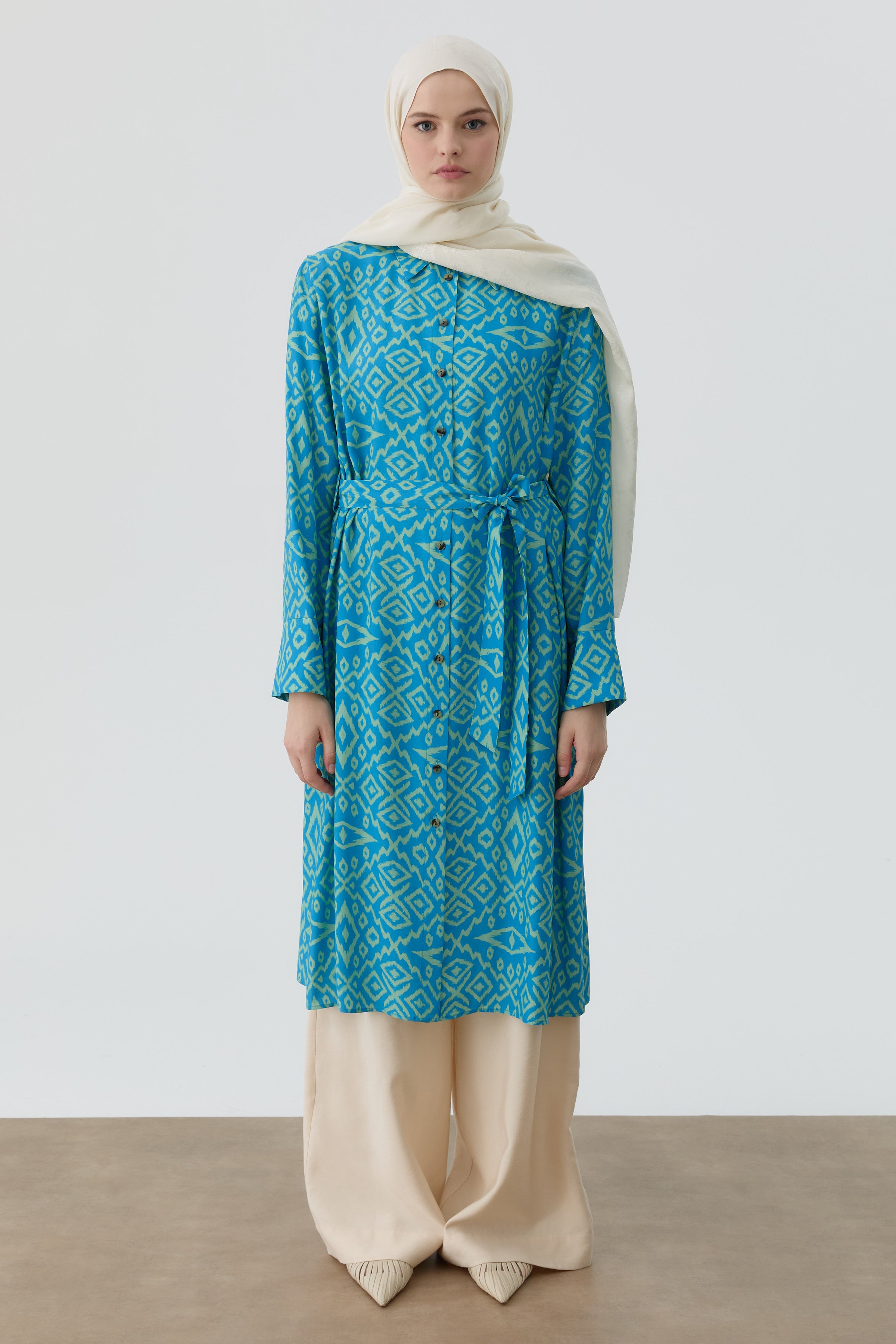 Si bien proporciona comodidad durante todo el día gracias a su tejido fluido, se puede combinar fácilmente tanto con pantalones lisos como con leggings.