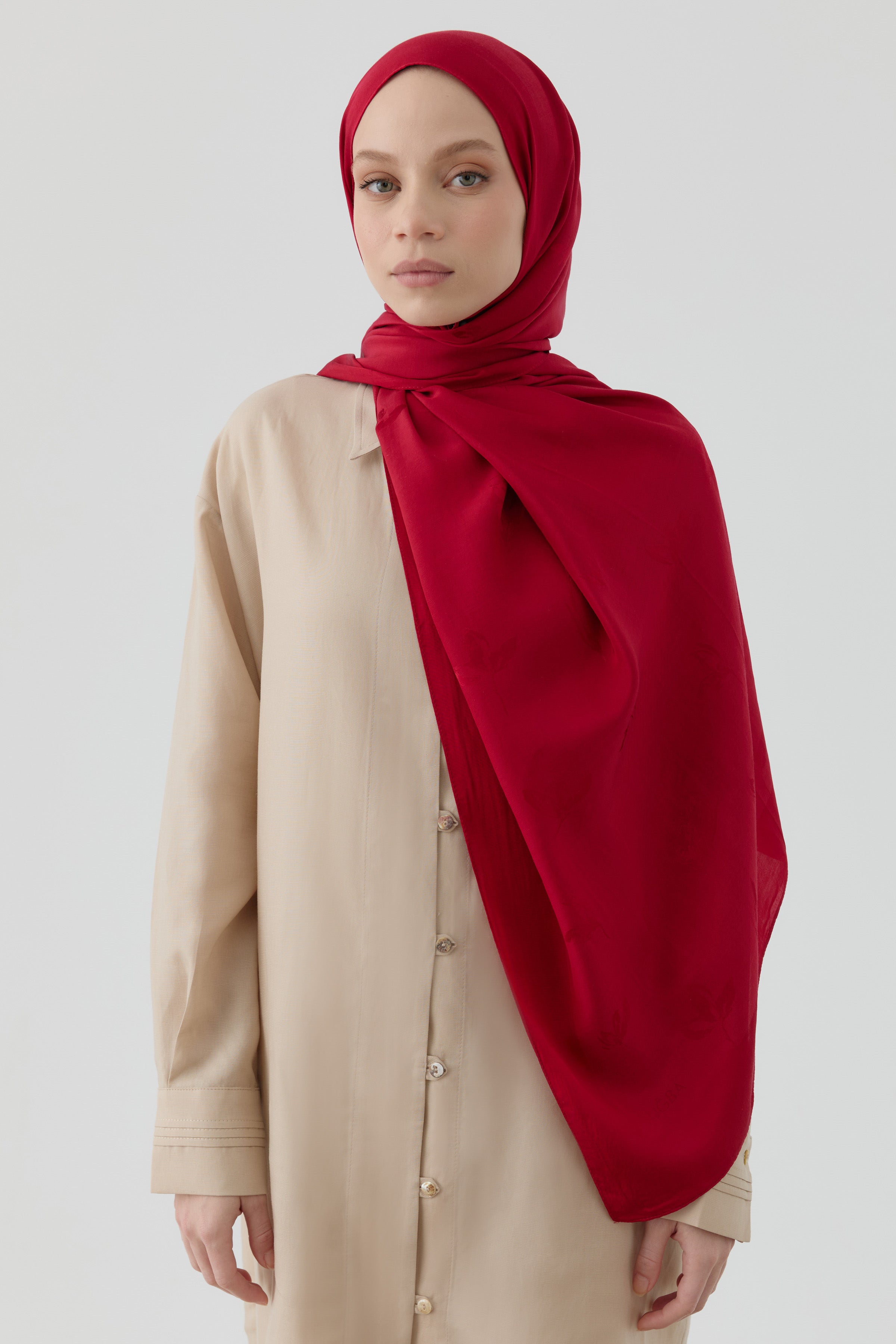 El chal Buket natural, con su elegante textura jacquard y su estructura ligera, ofrece comodidad durante todo el día. Su sencilla elegancia lo convierte en la prenda perfecta para cualquier estilo.