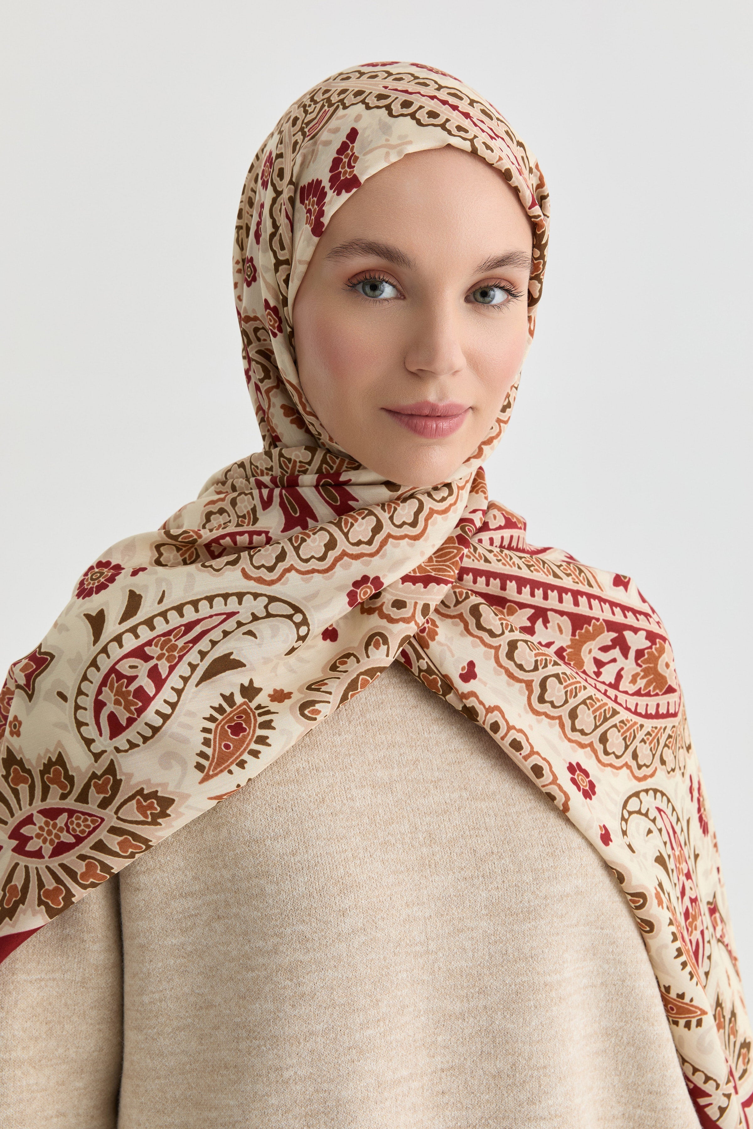 Zarif paisley desenleriyle tasarlanan bu natural şal, klasik motifleri modern bir yorumla yeniden canlandırır. Doğal dokusu cilde yumuşak bir temas sağlarken, ince kumaşı gün boyu hafif bir konfor sunar.