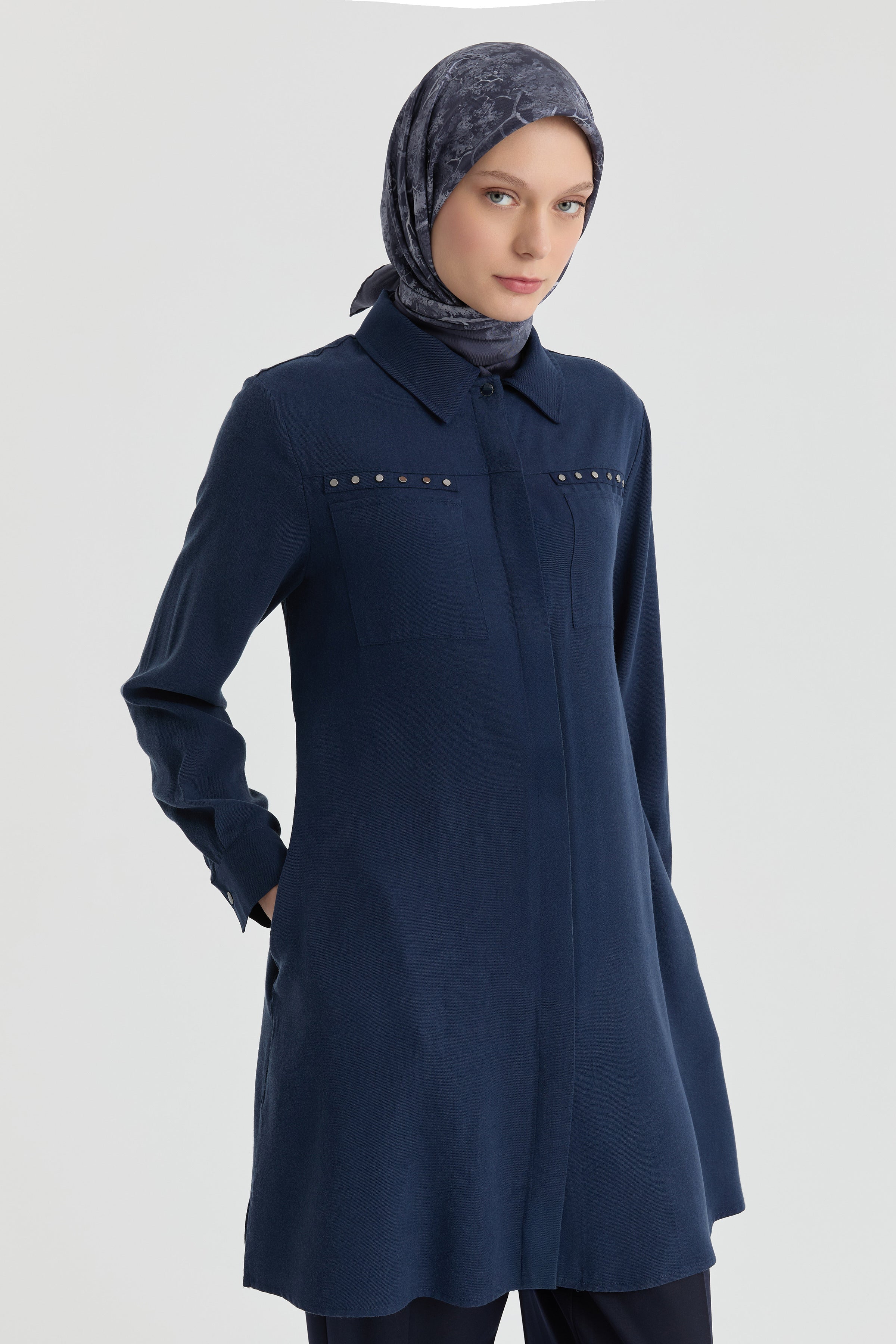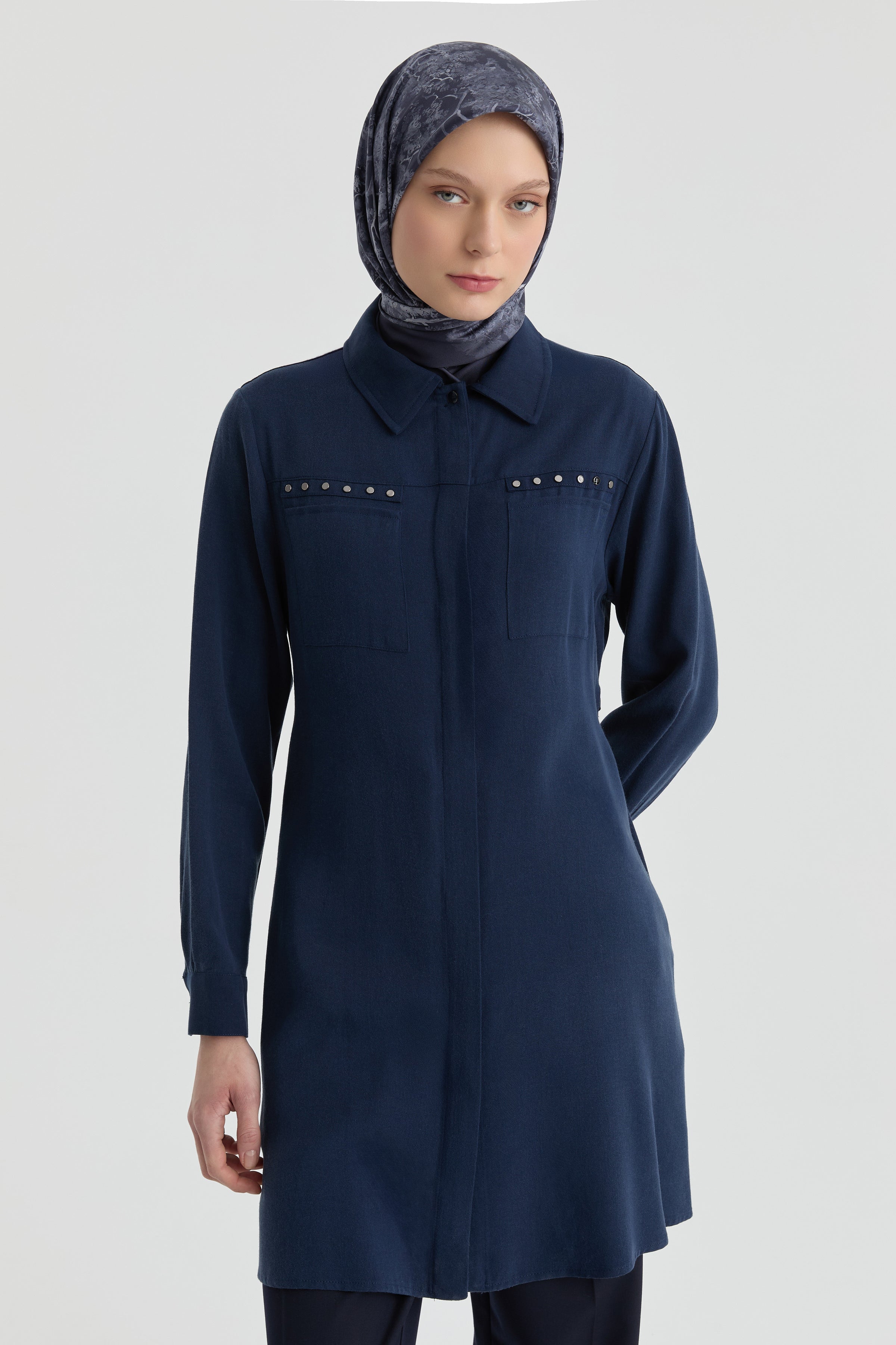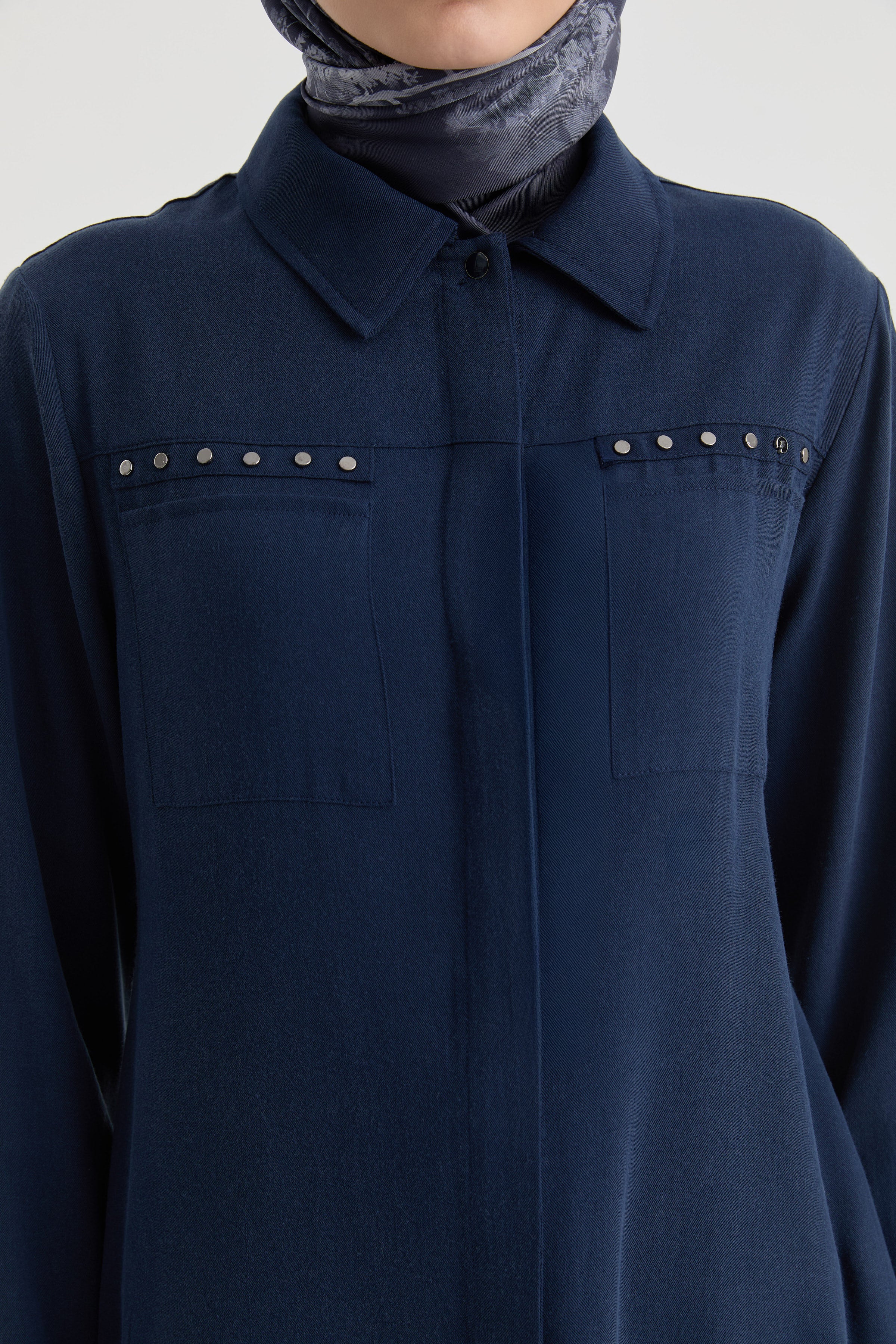 Túnica con bolsillos decorativos - Azul marino