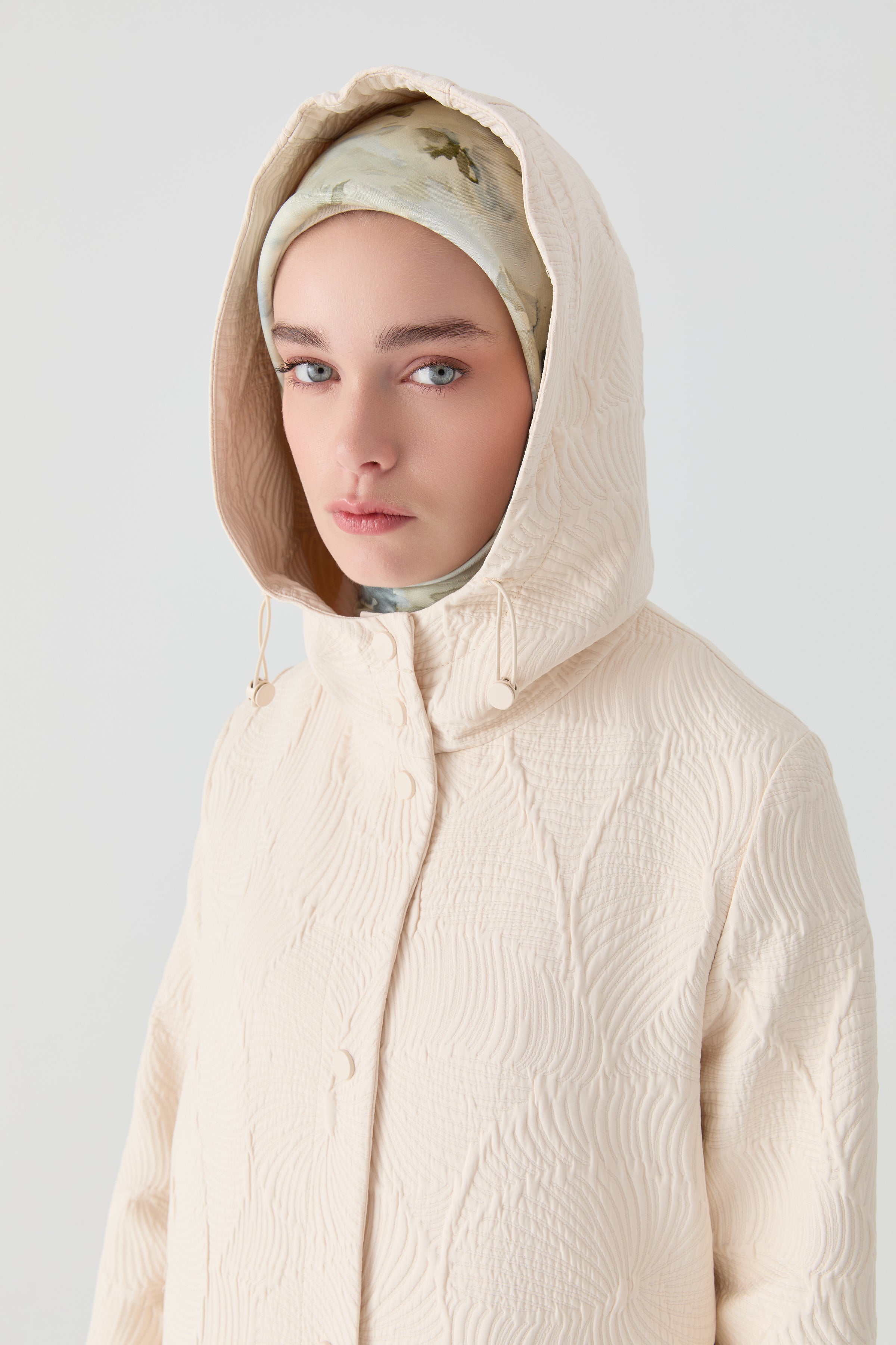 Abrigo acolchado con cierre de botones a presión y abertura - Crudo