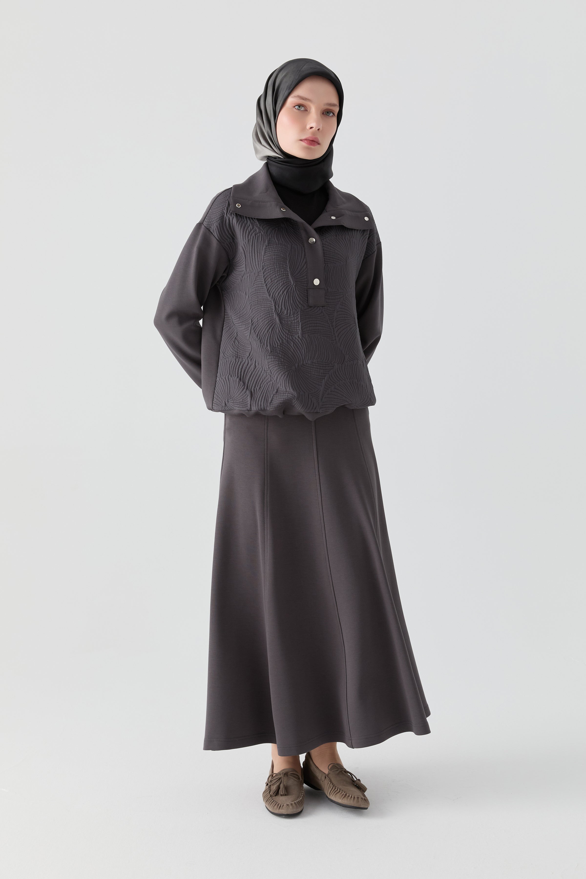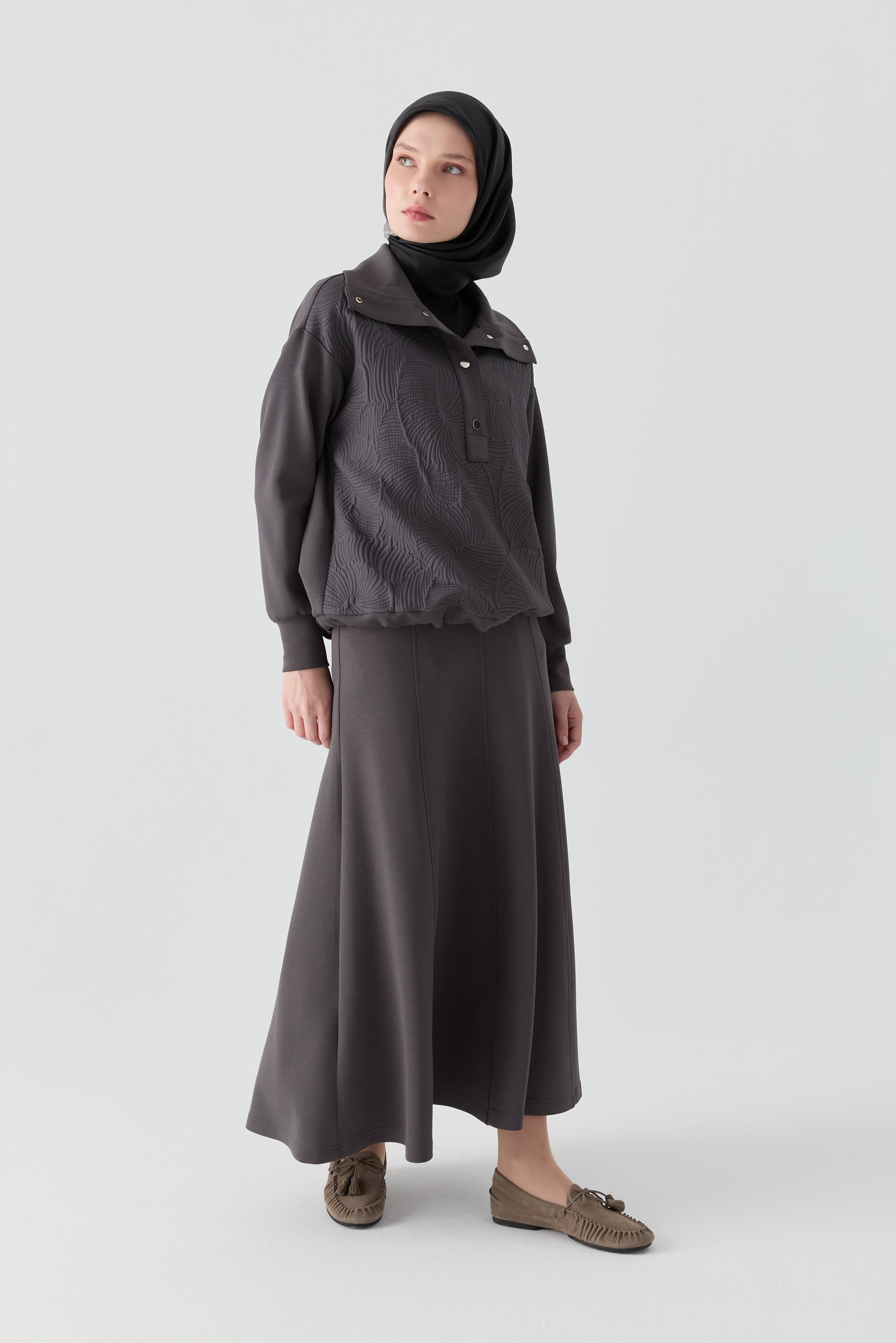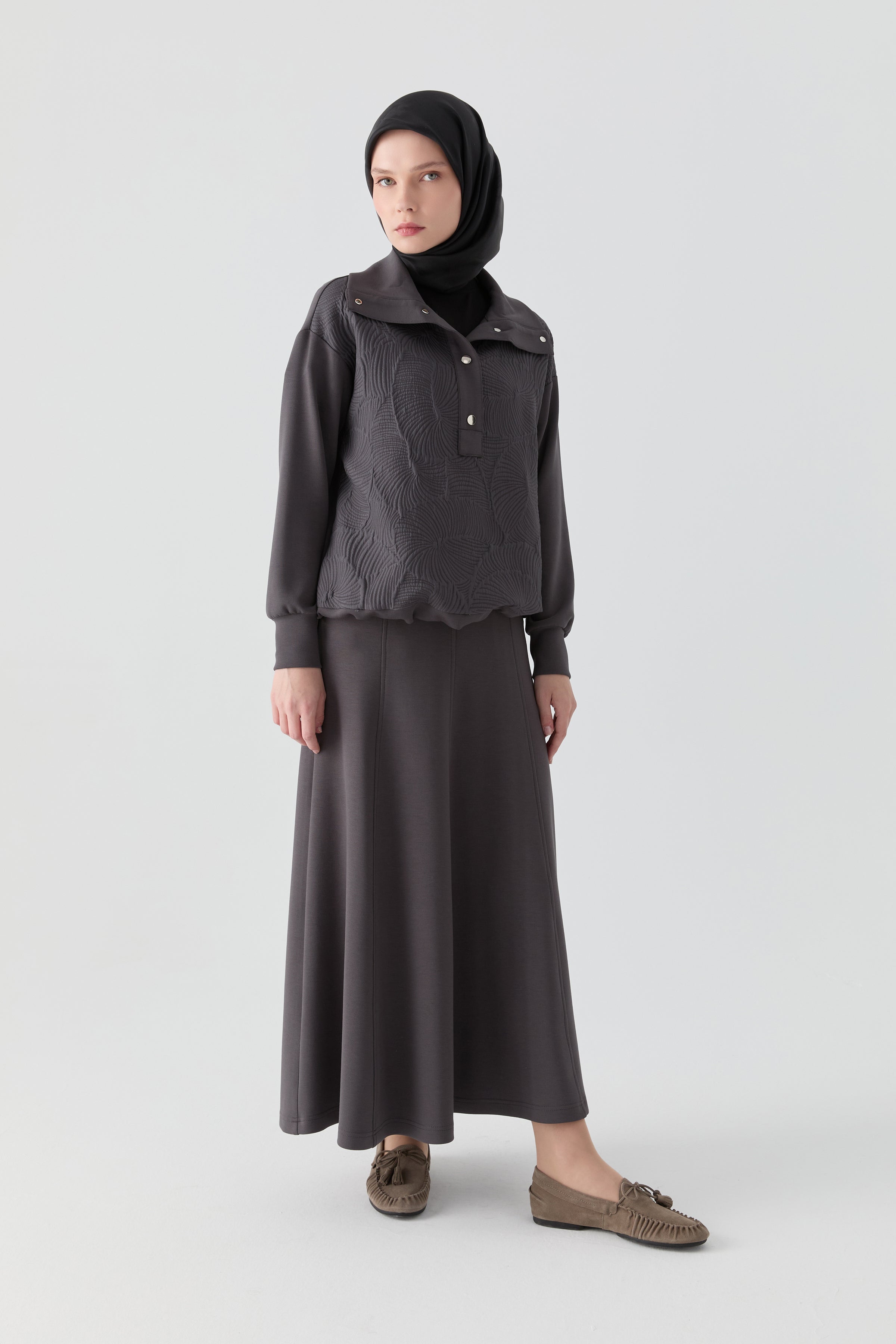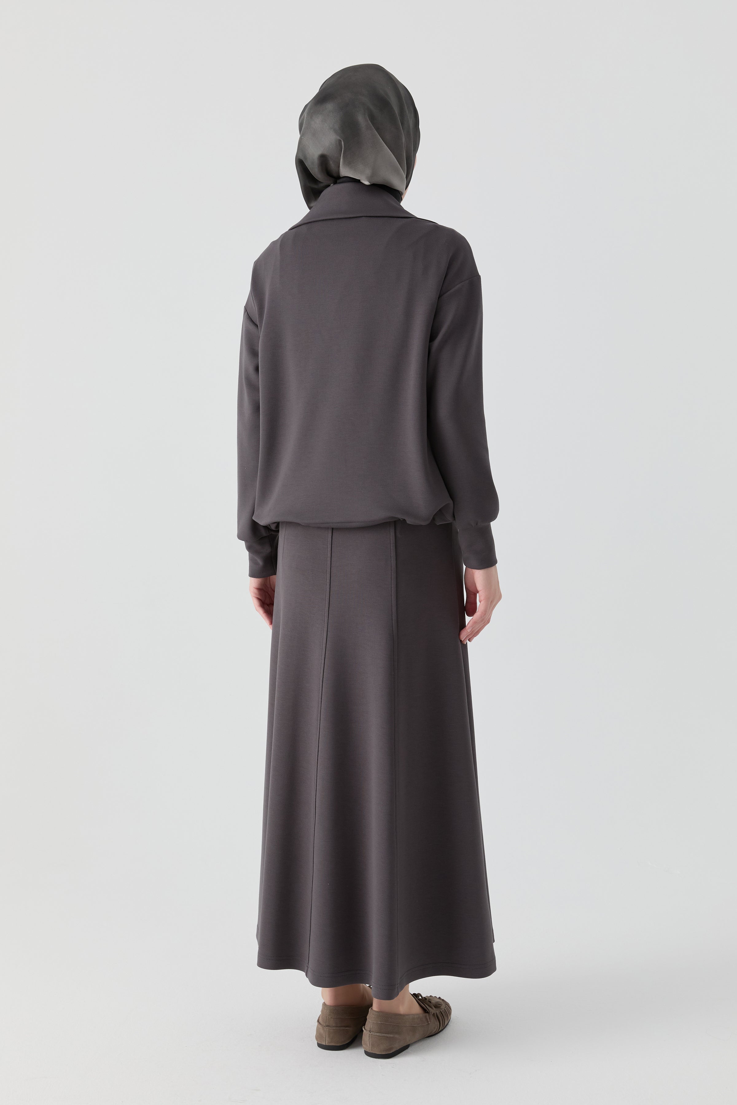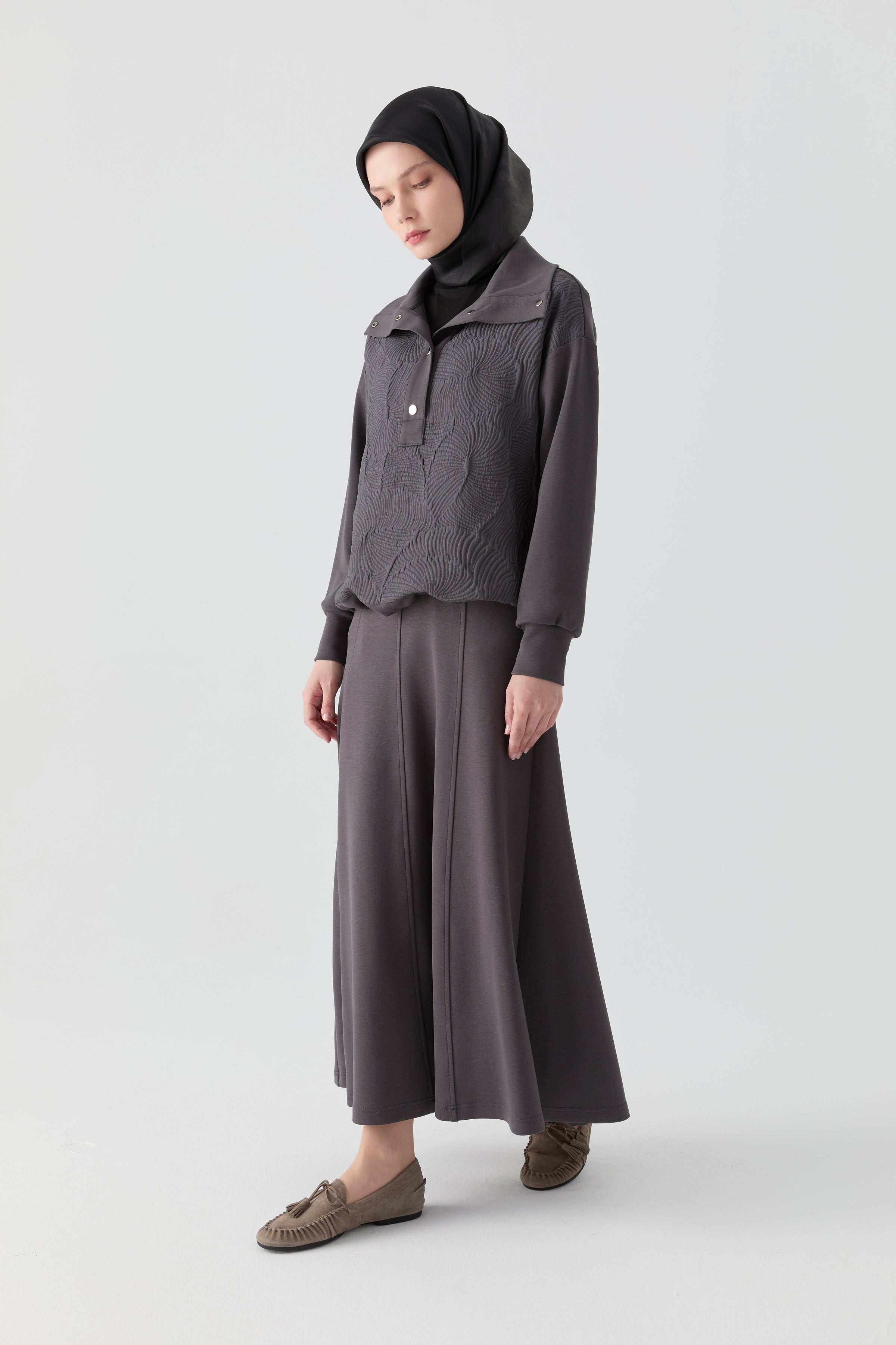 Falda de punto de ocho piezas con cintura elástica - Antracita