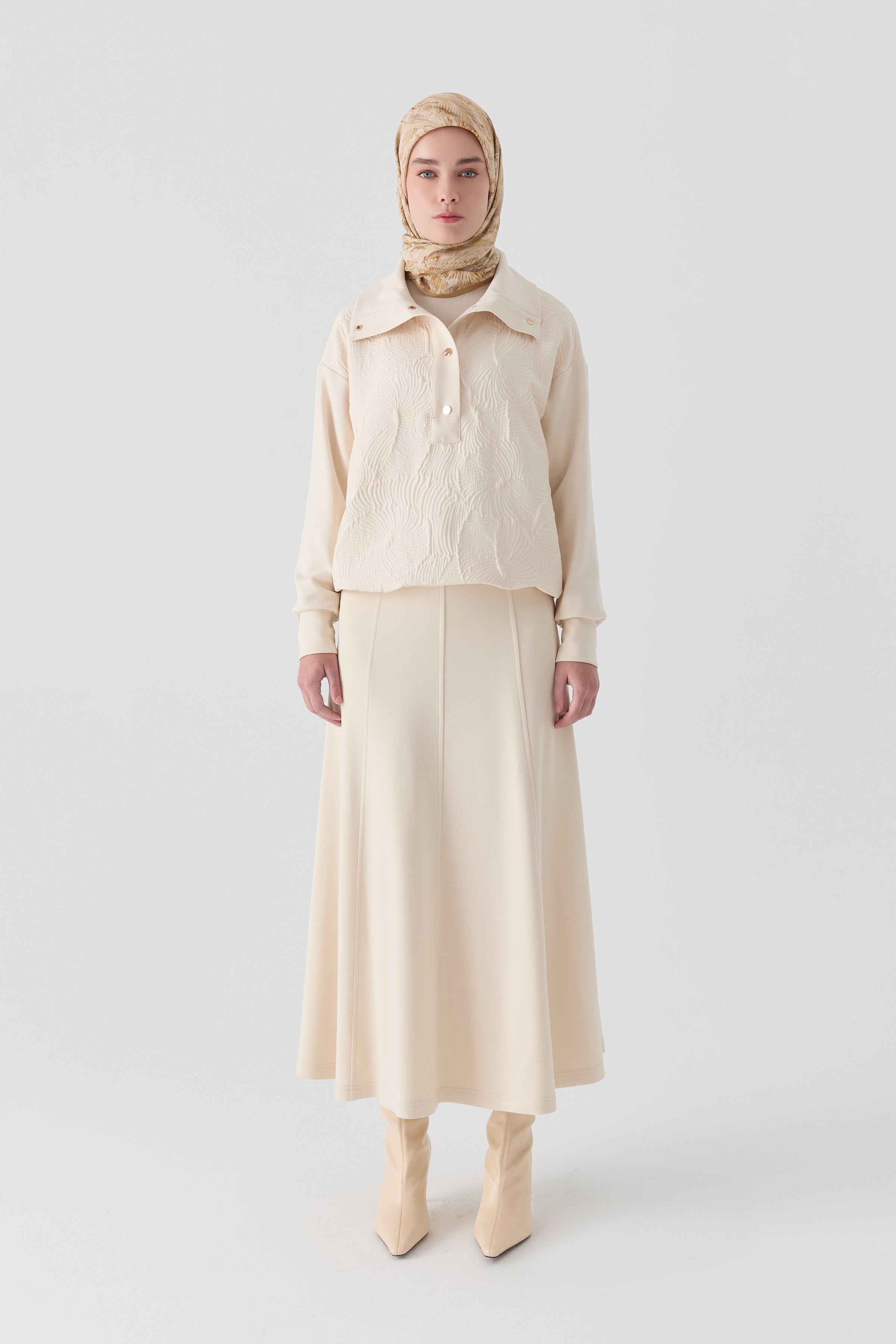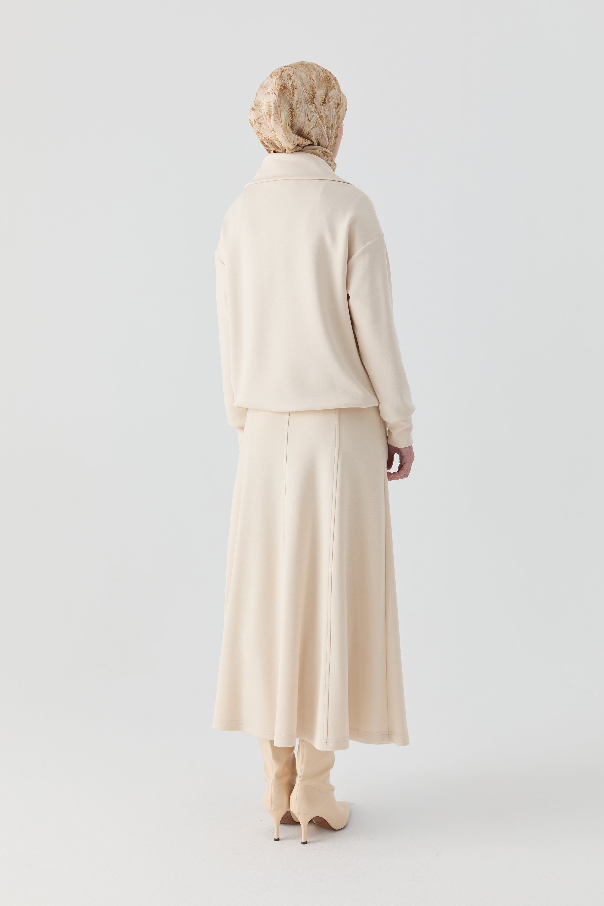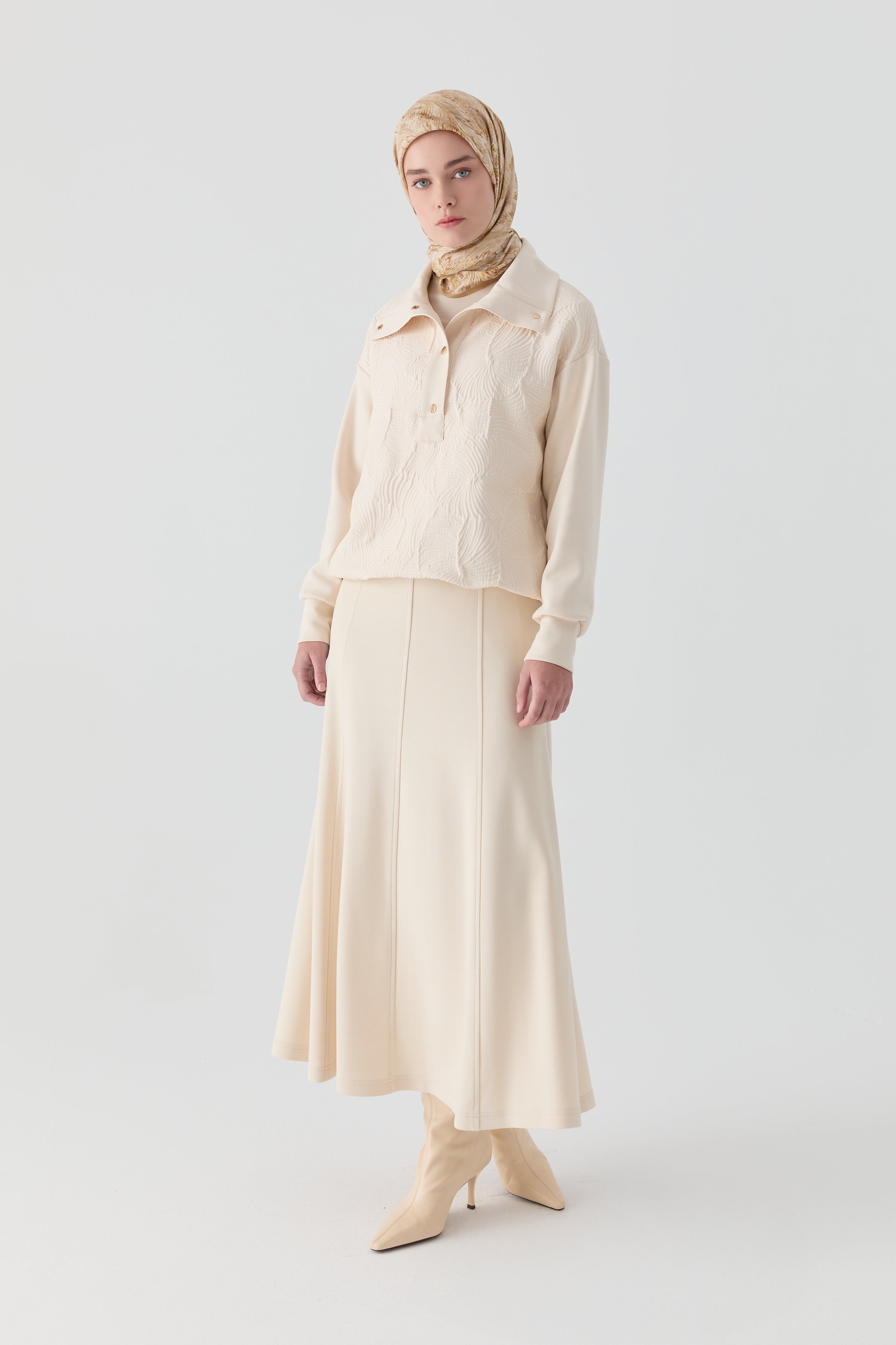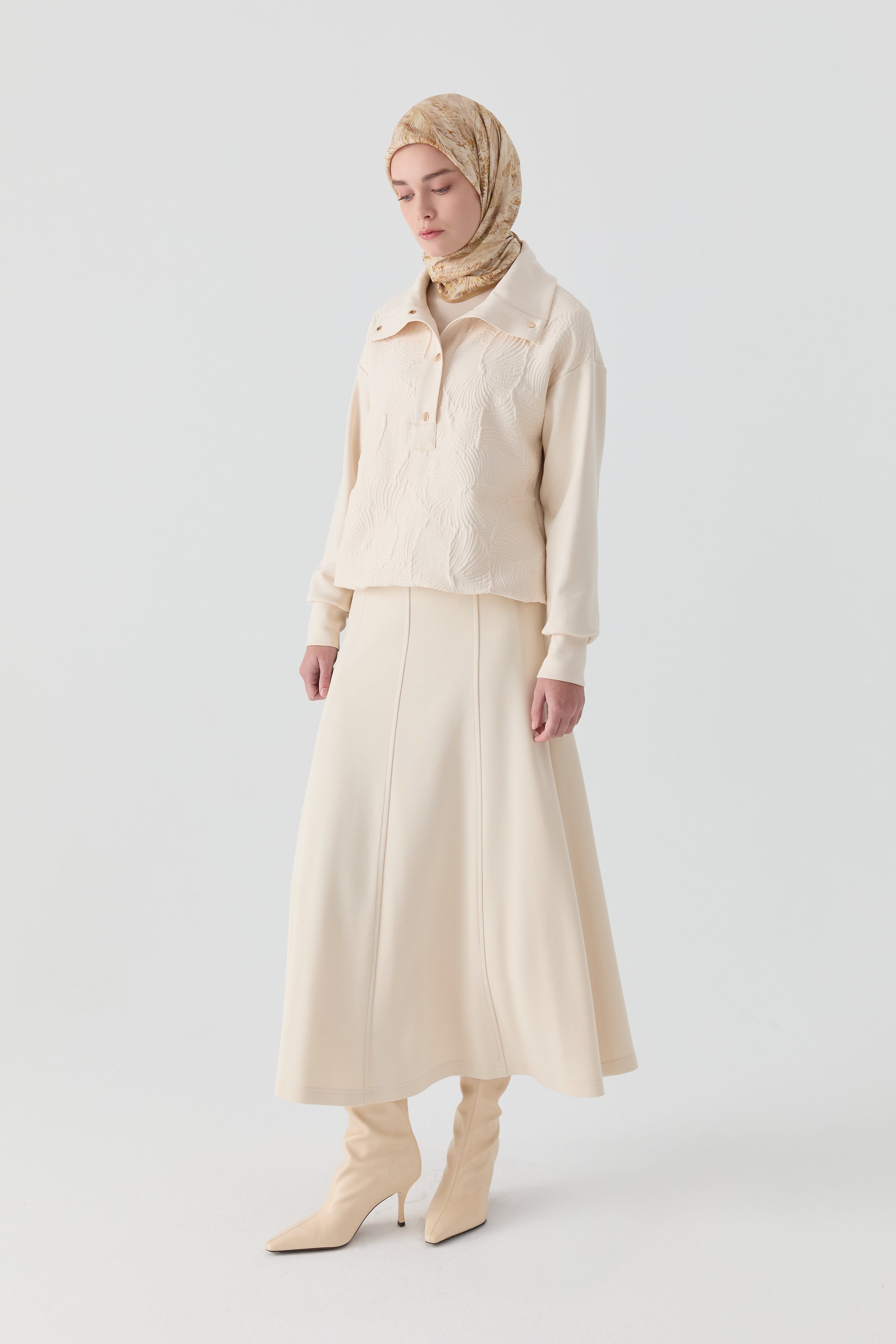 Falda de punto de ocho piezas con cintura elástica - Crudo