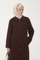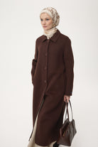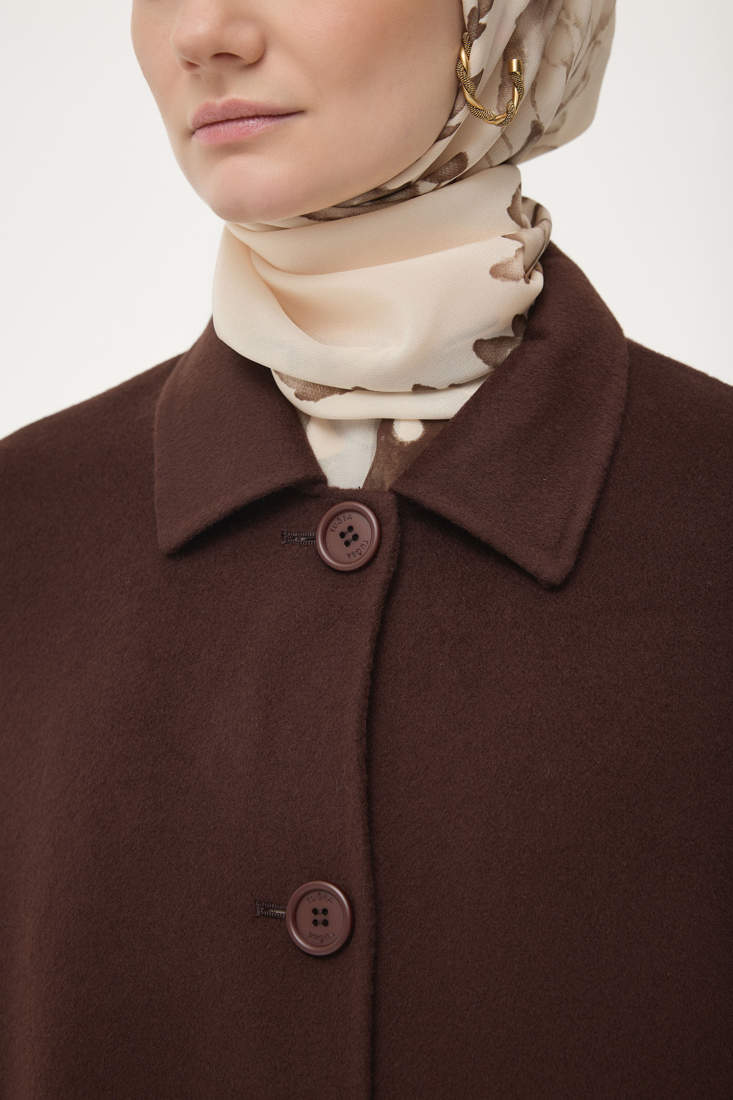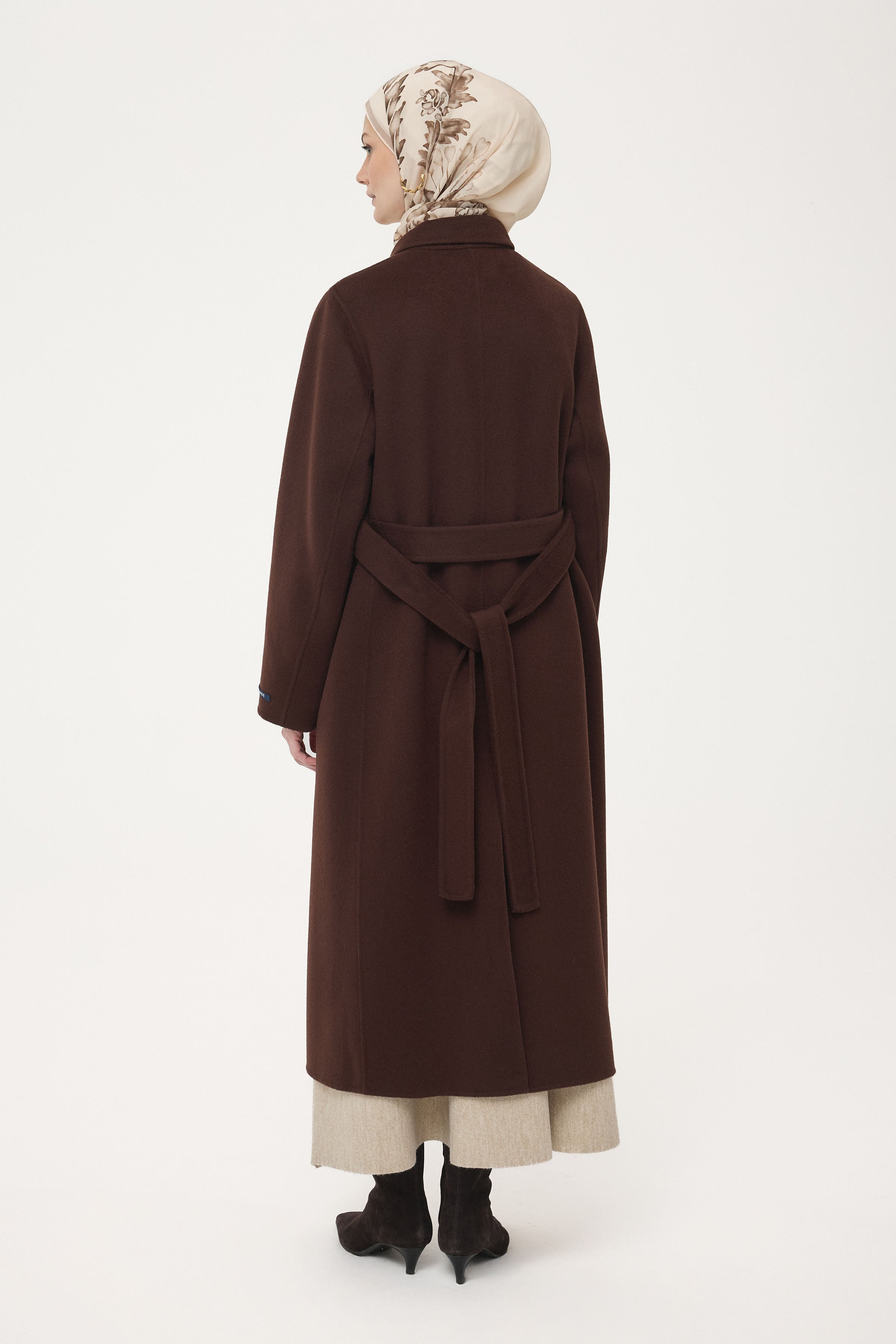 Abrigo de cuello chal 100 % lana hecho a mano - Marrón