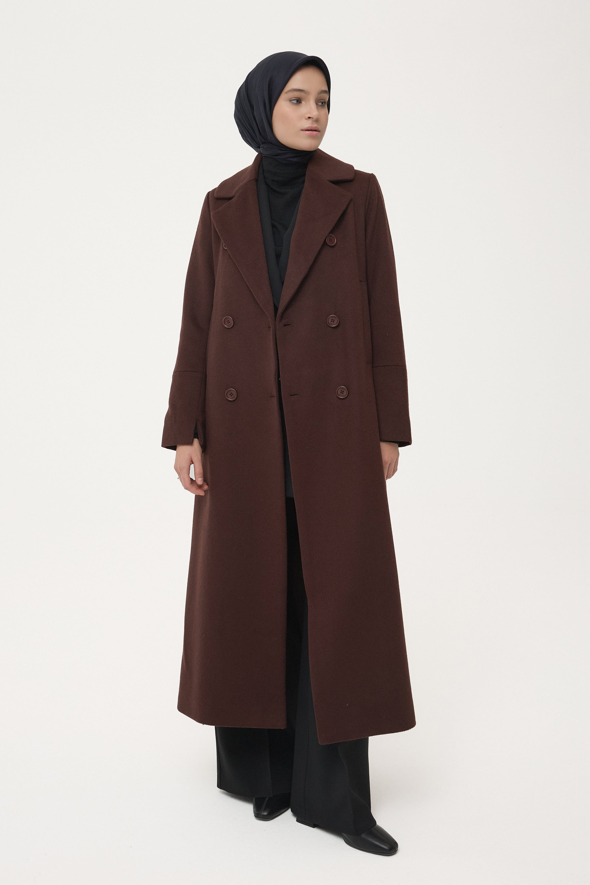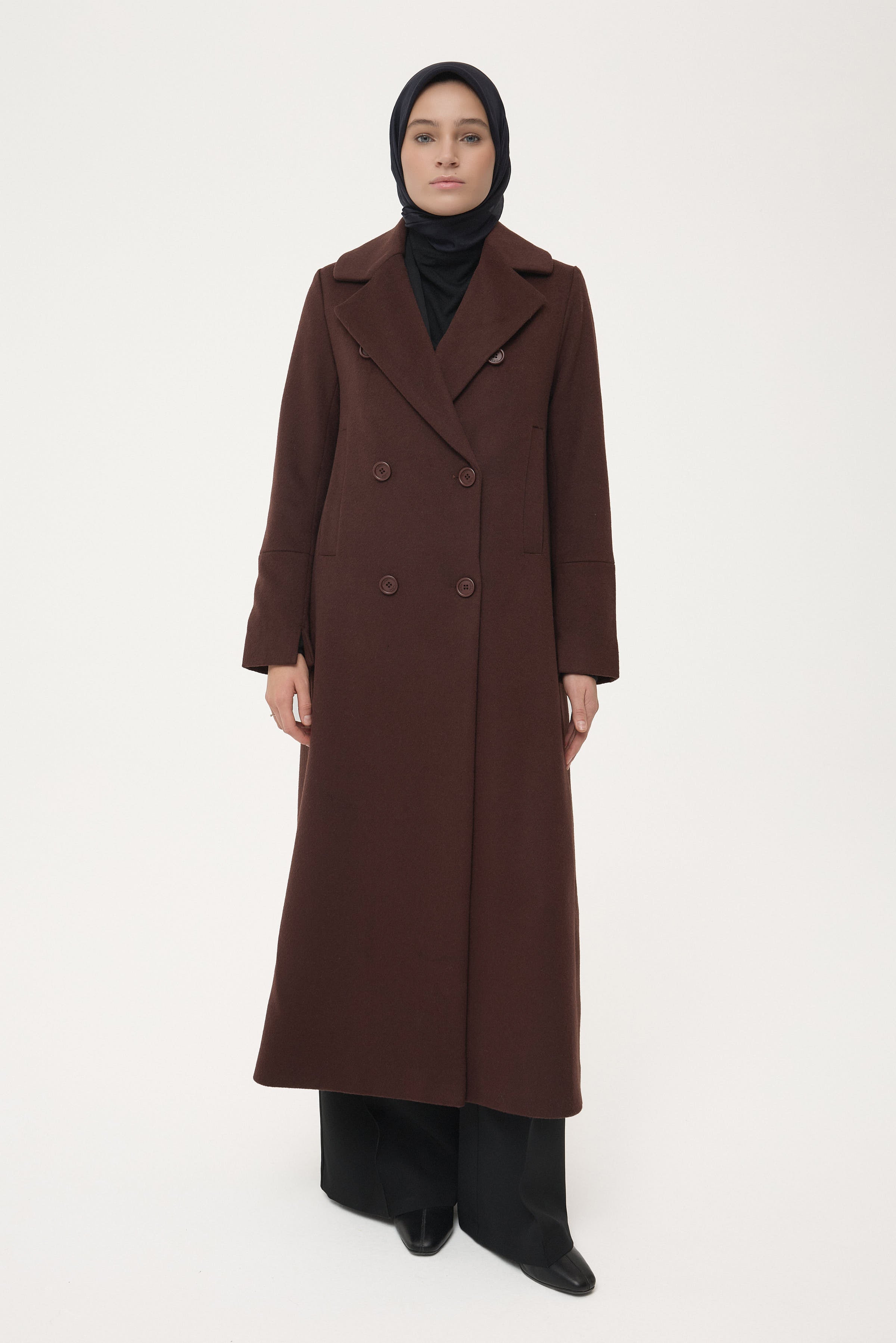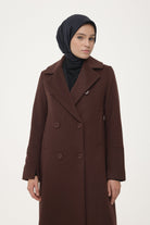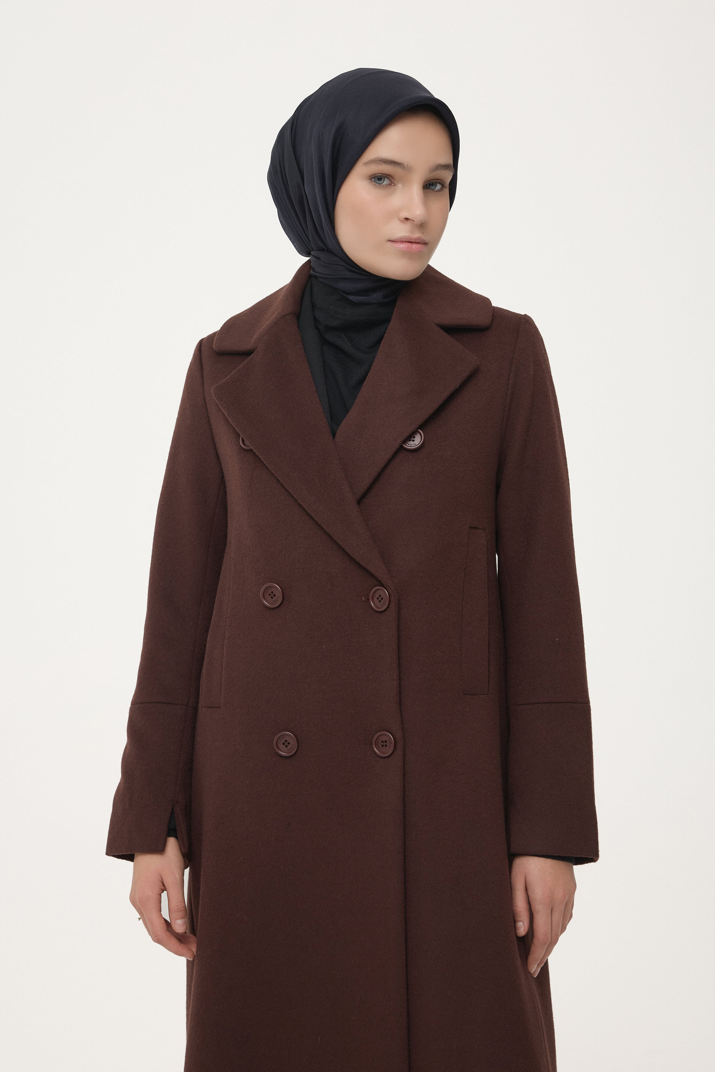 Abrigo cruzado de mezcla de lana con cierre - Marrón
