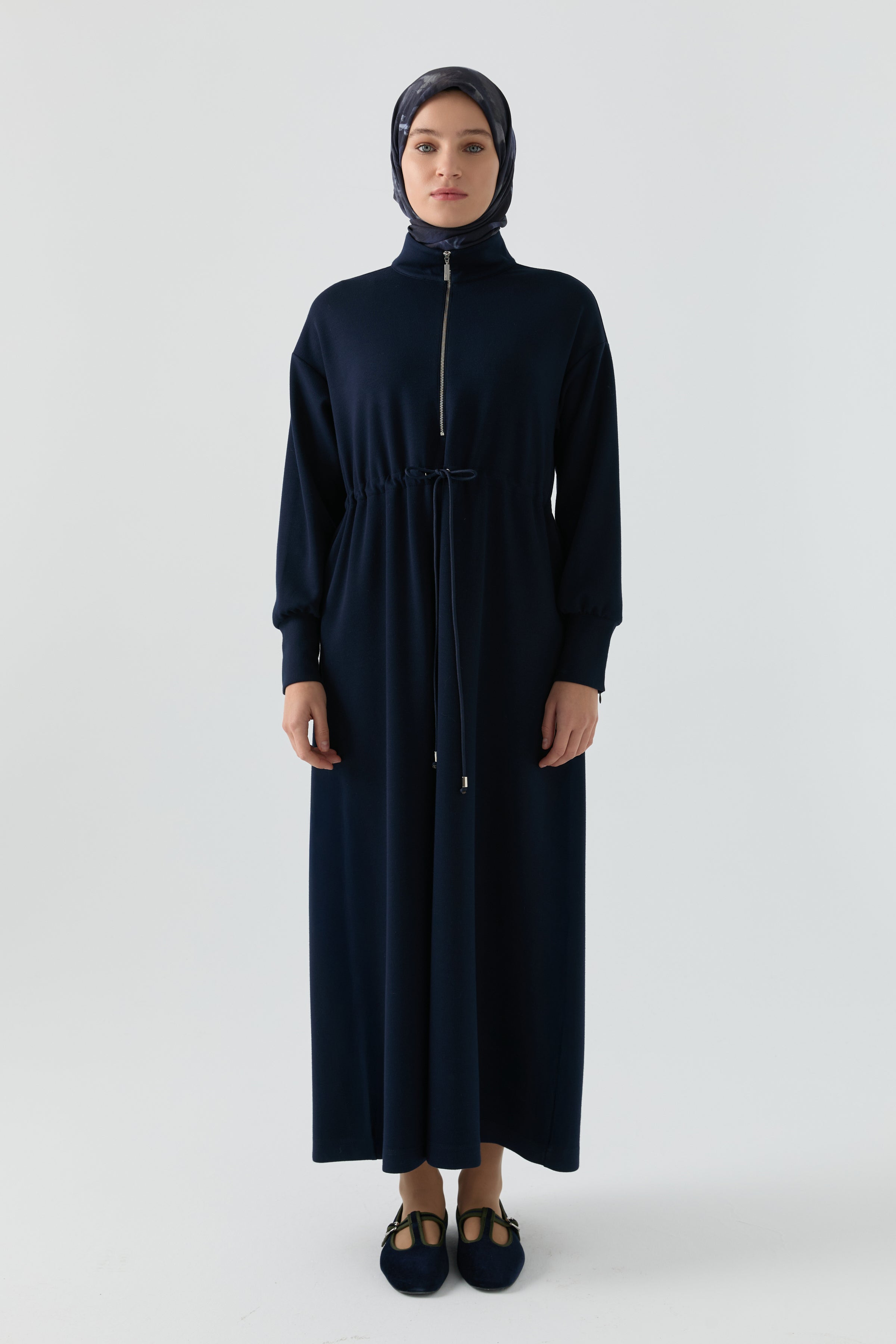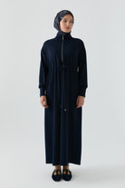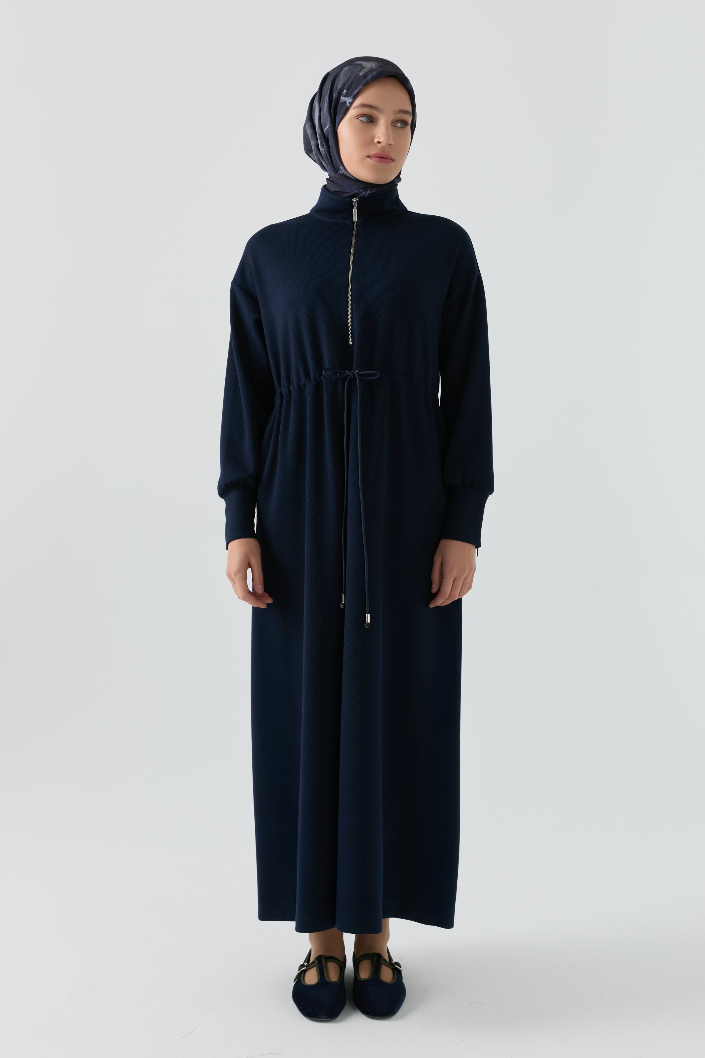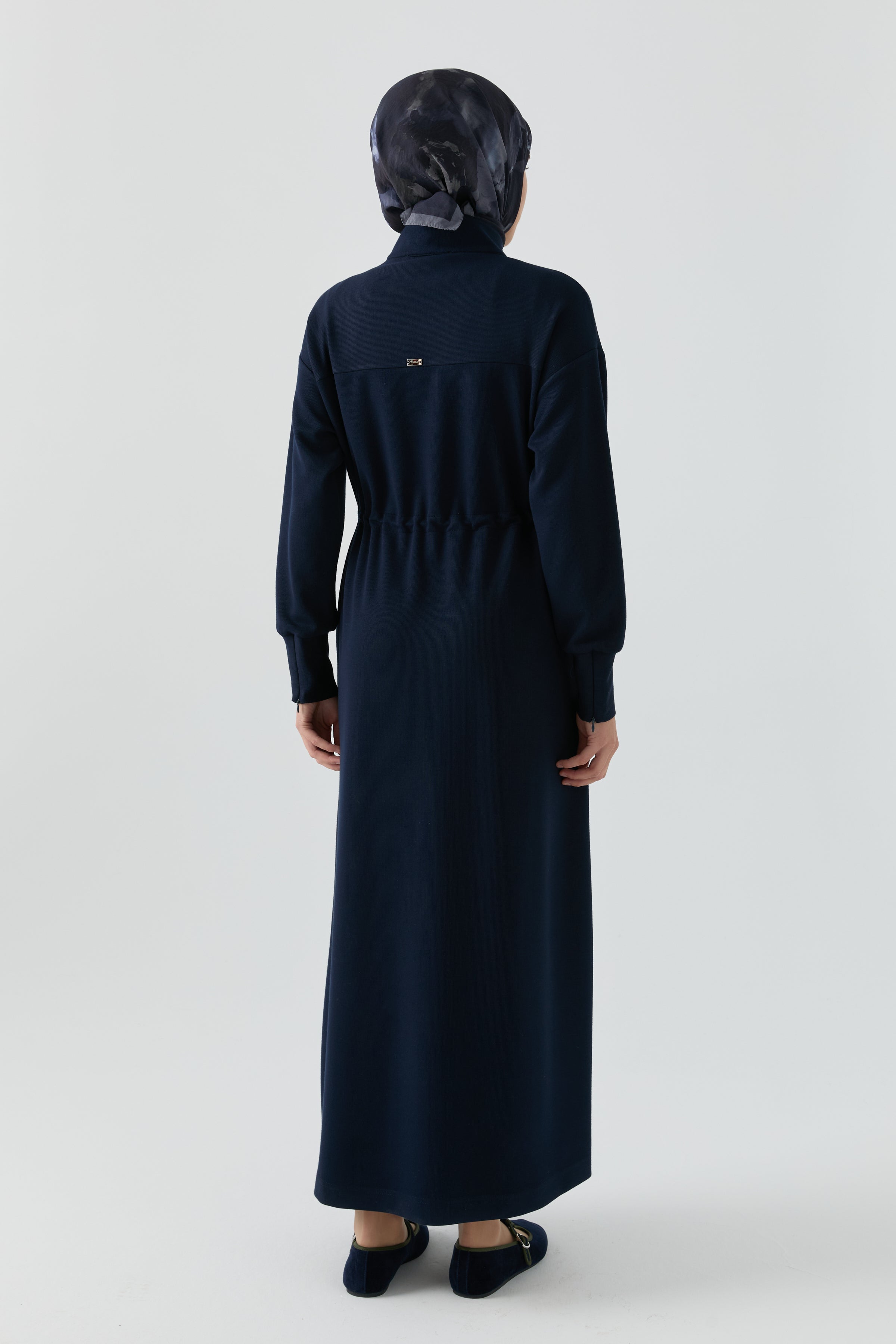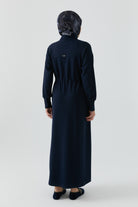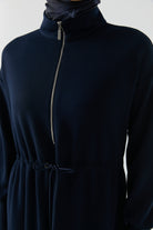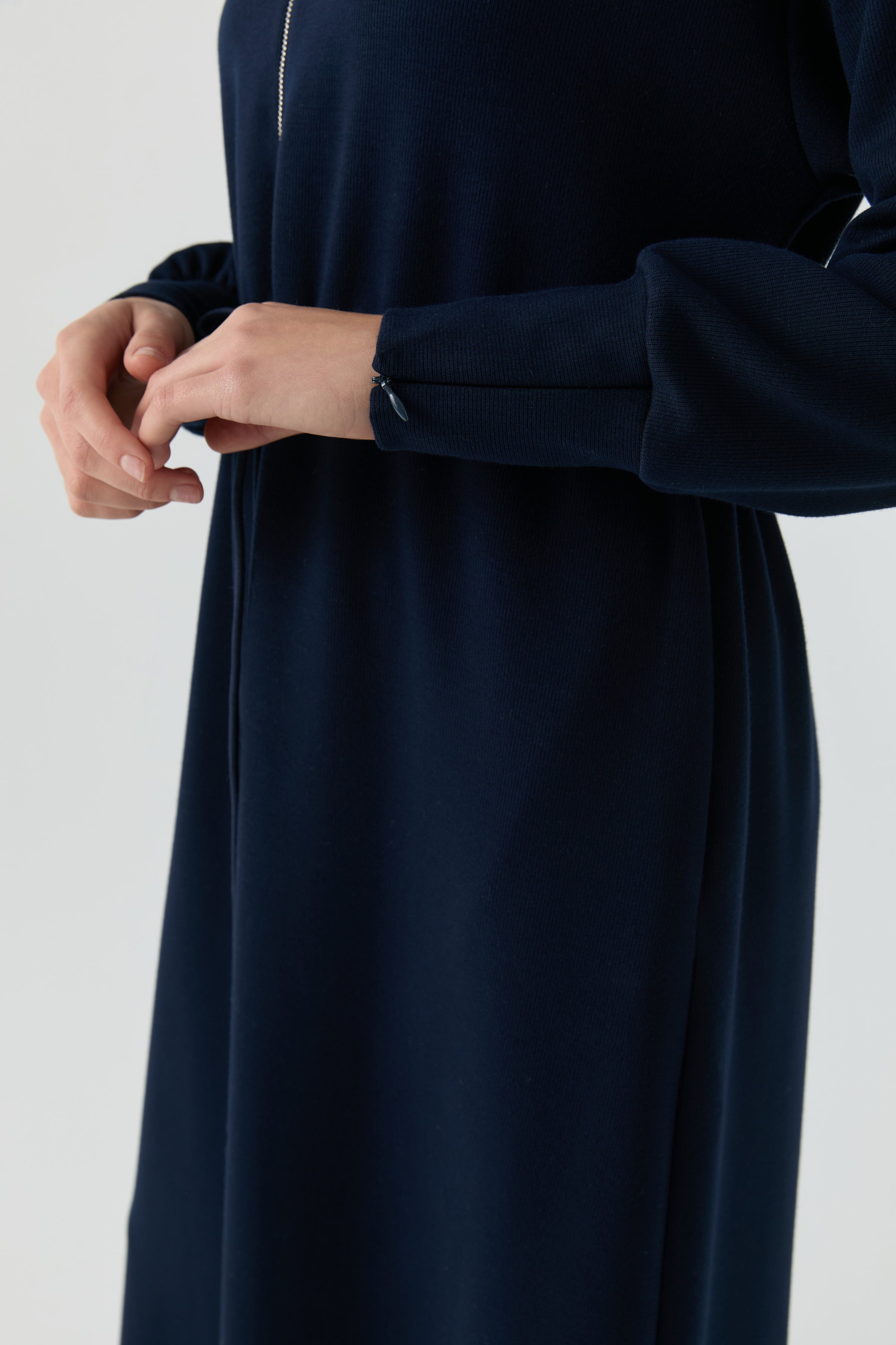 Vestido azul marino con mangas con detalle de cremallera oculta