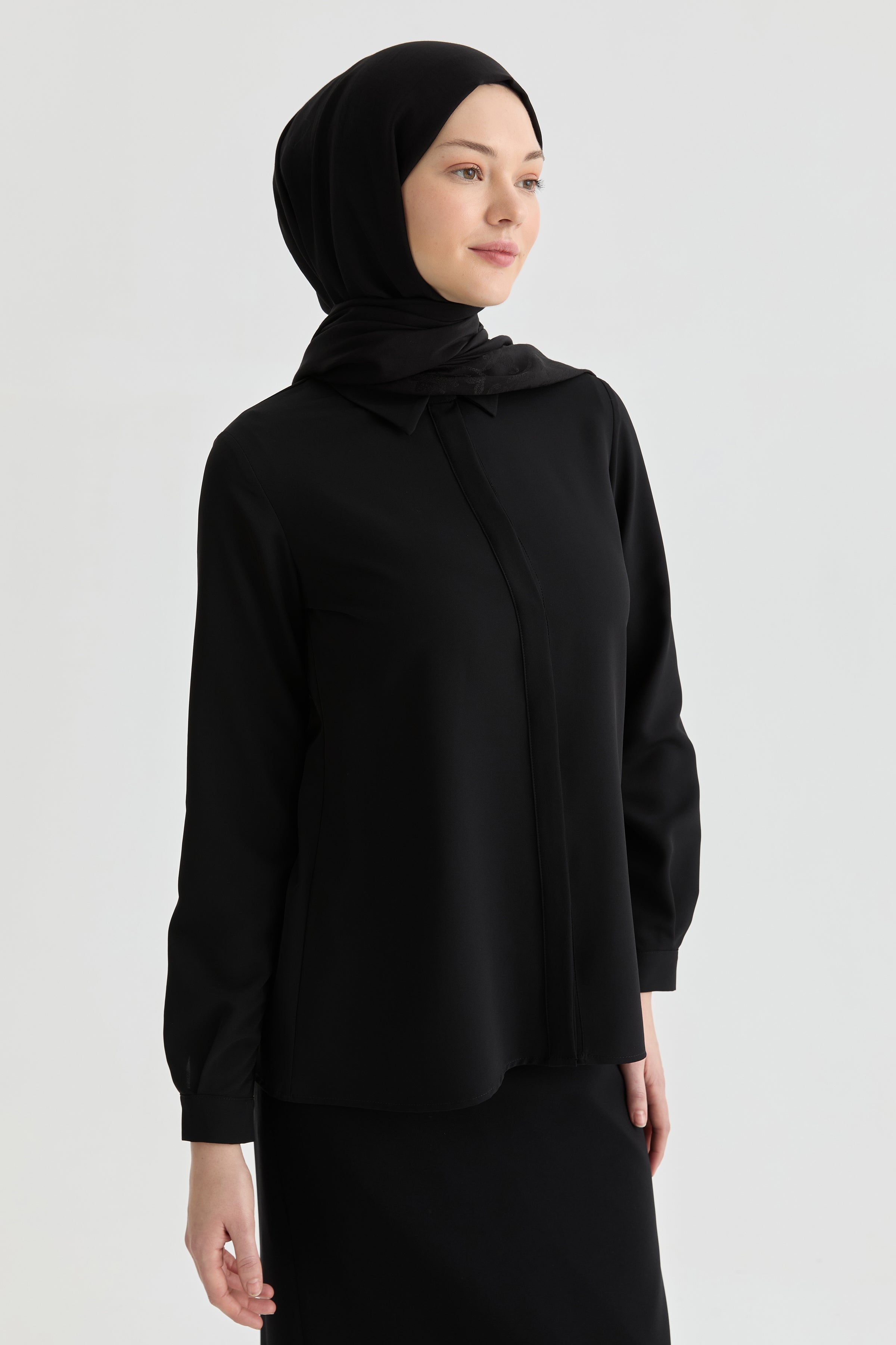 La camisa básica con tapeta oculta ofrece un estilo sencillo y moderno. Su detalle de botones ocultos crea un look minimalista, mientras que su tejido suave garantiza comodidad durante todo el día.