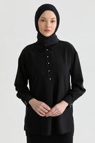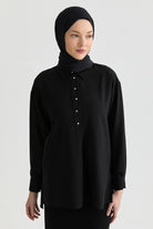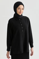 Blusa asimétrica con abertura - Negra