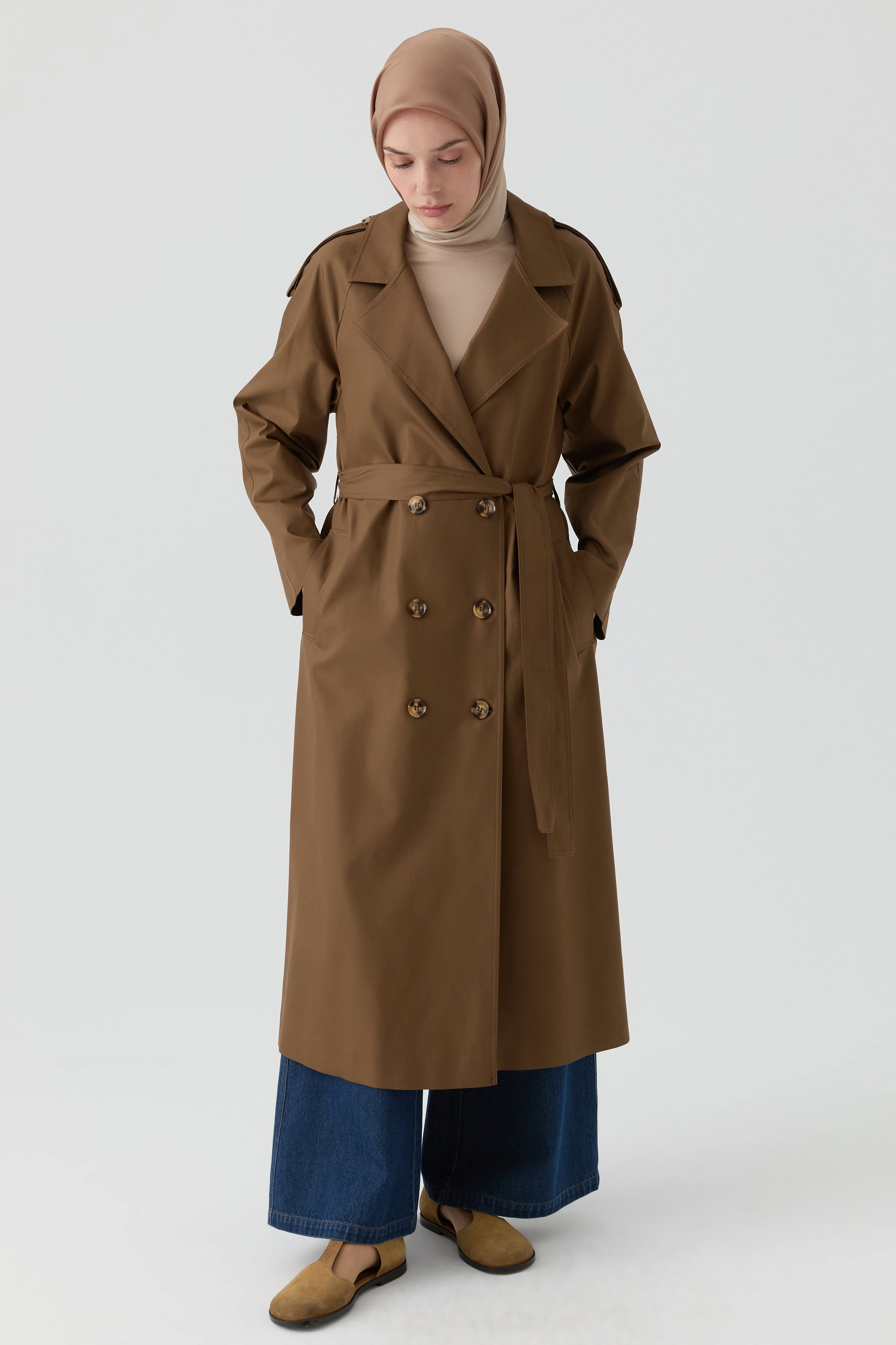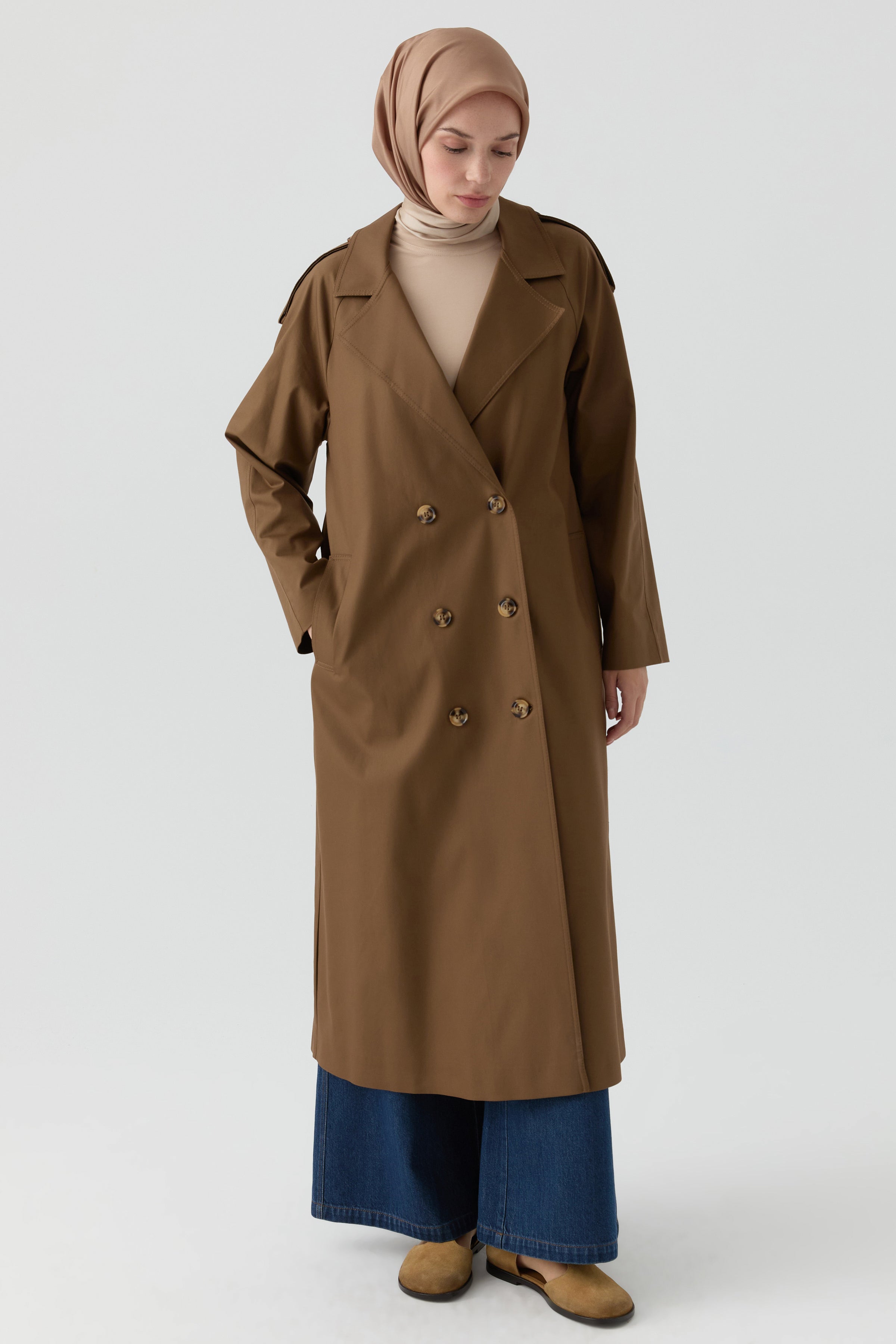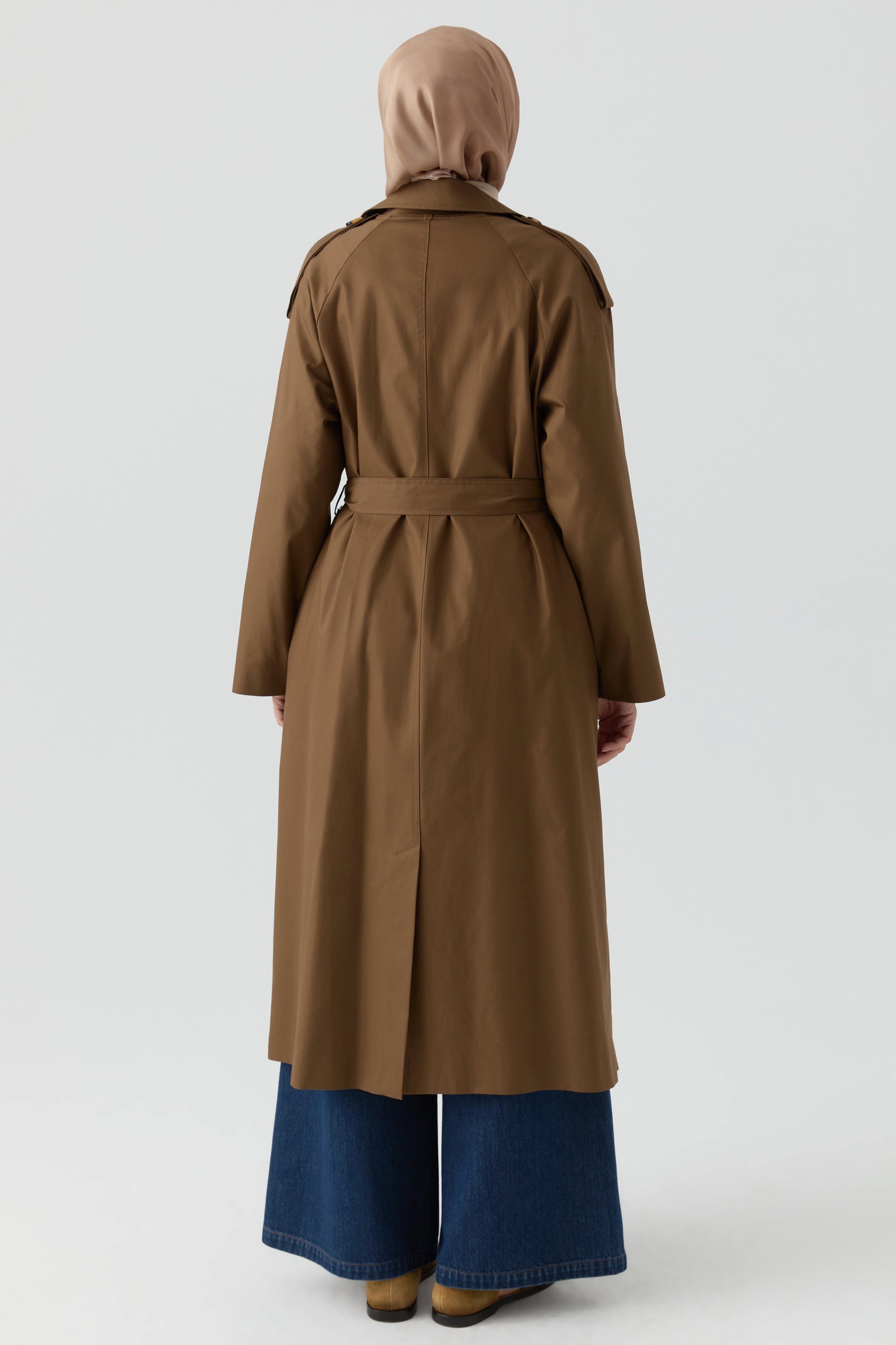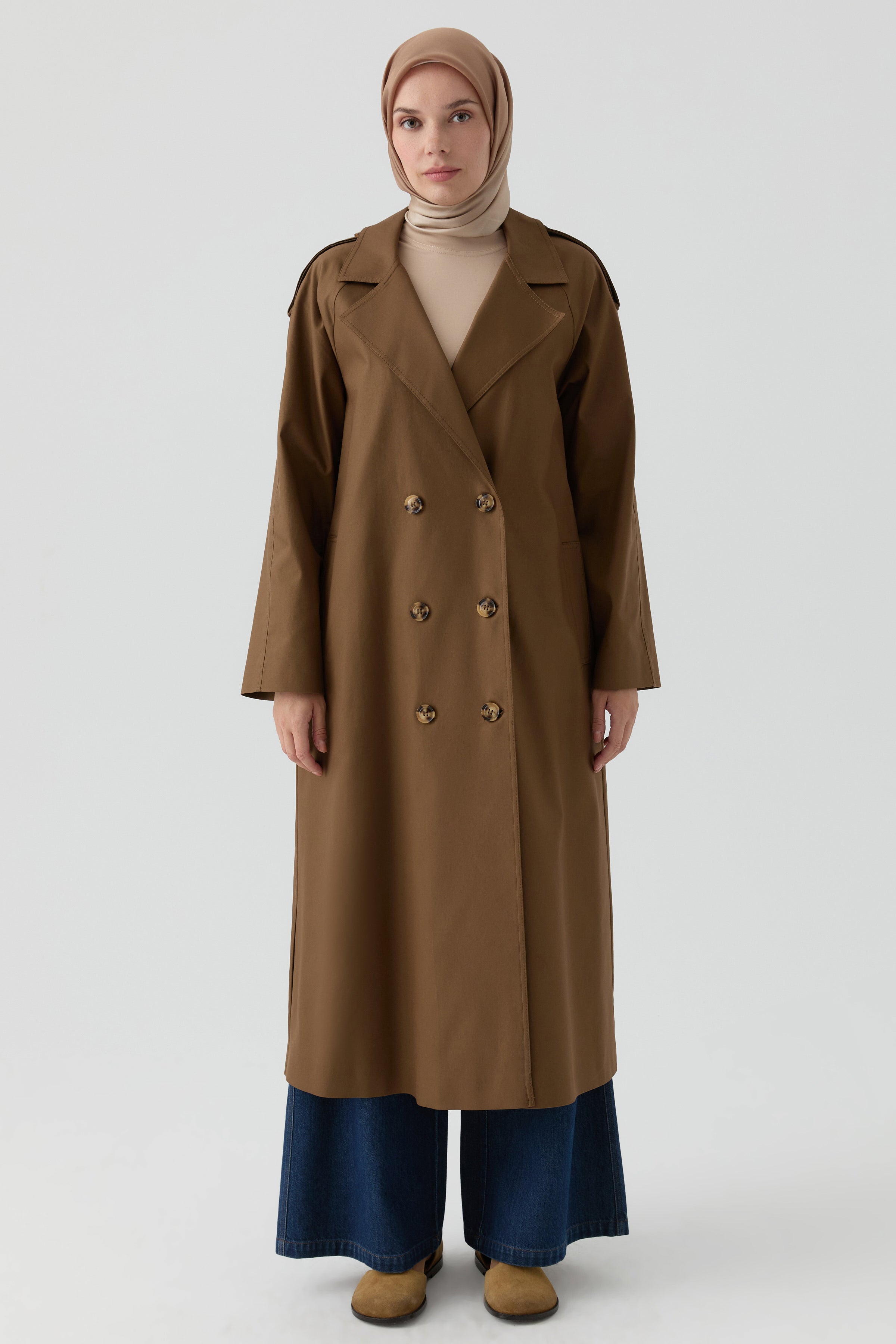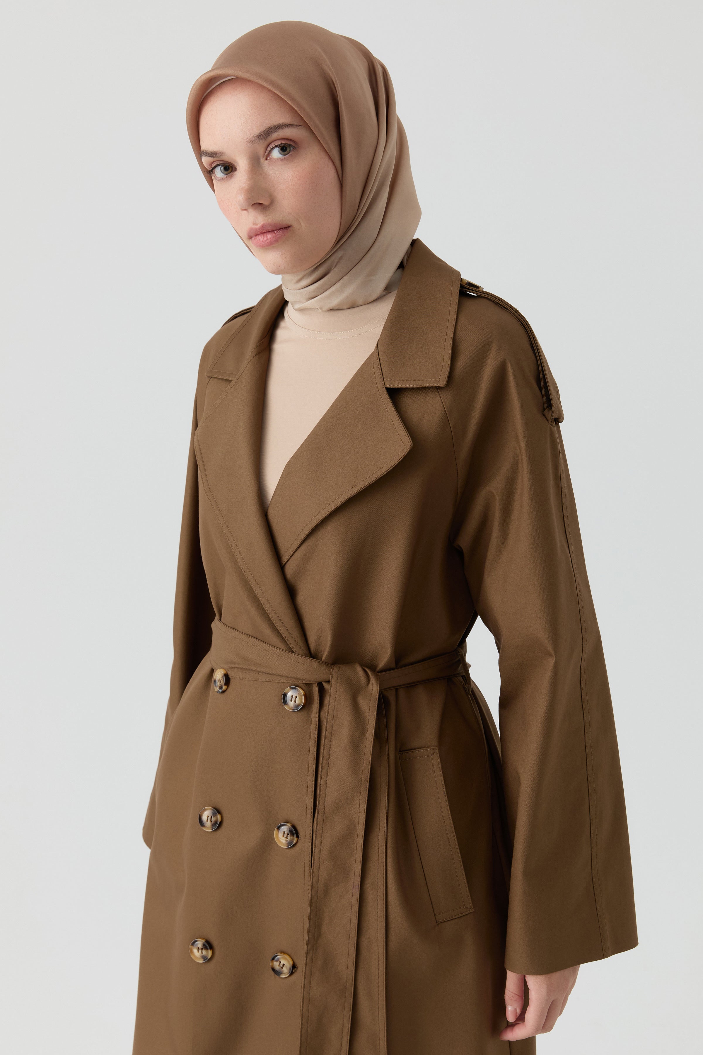 Gabardina cruzada con detalle de charretera - Marrón