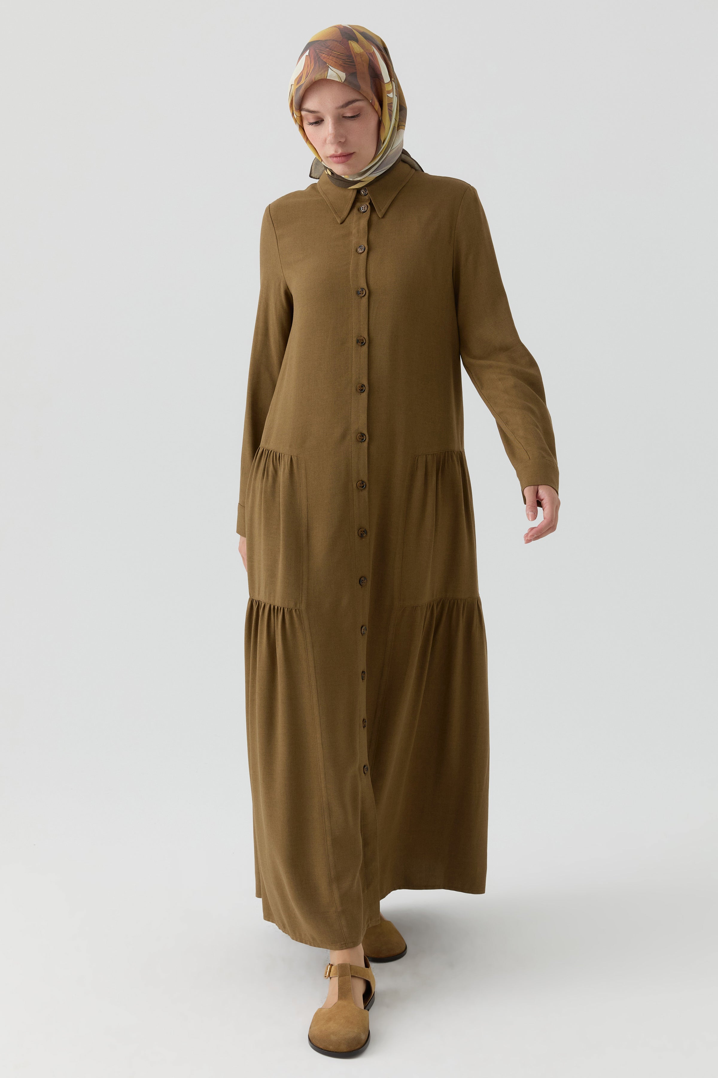 Vestido con detalle fruncido - Oliva