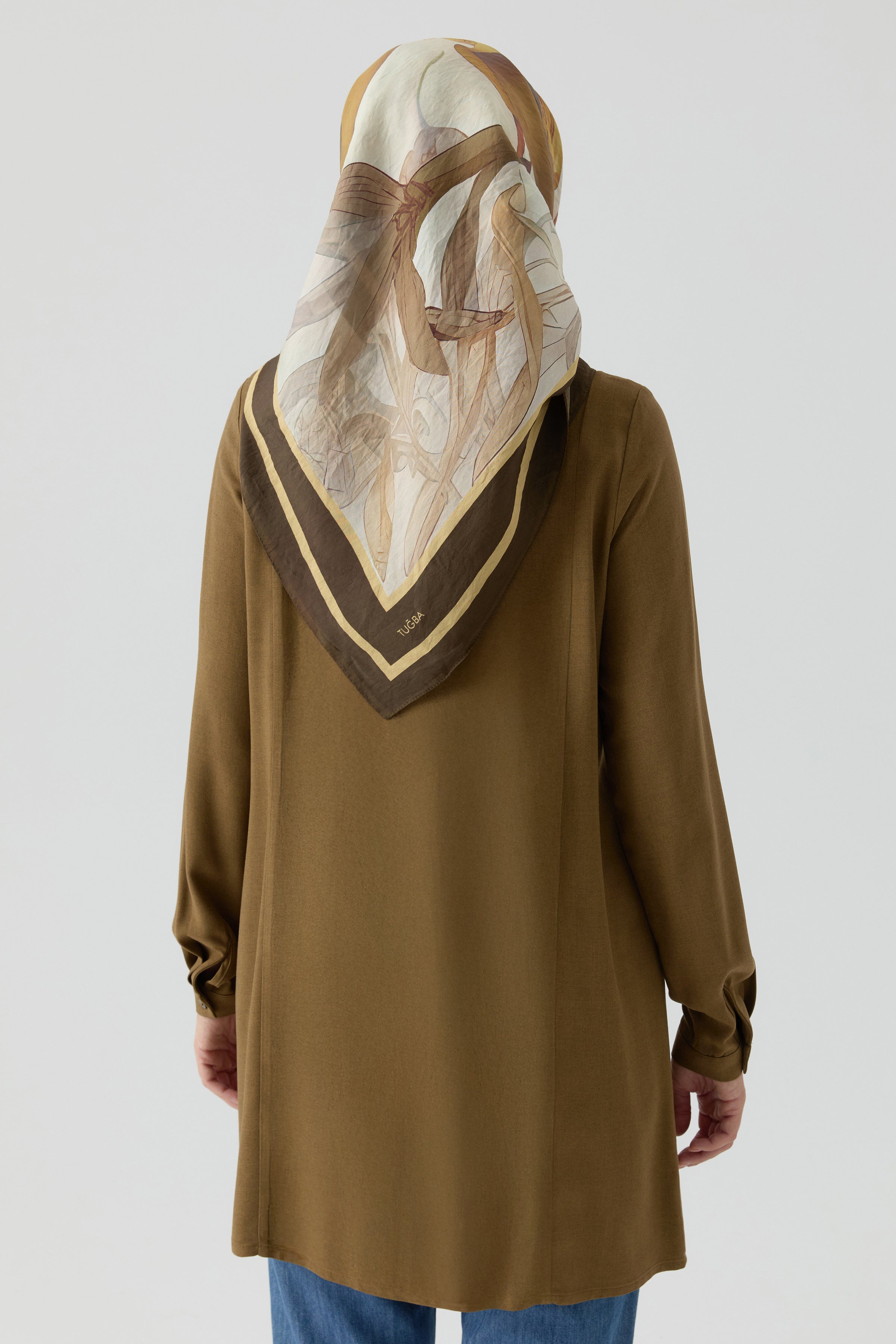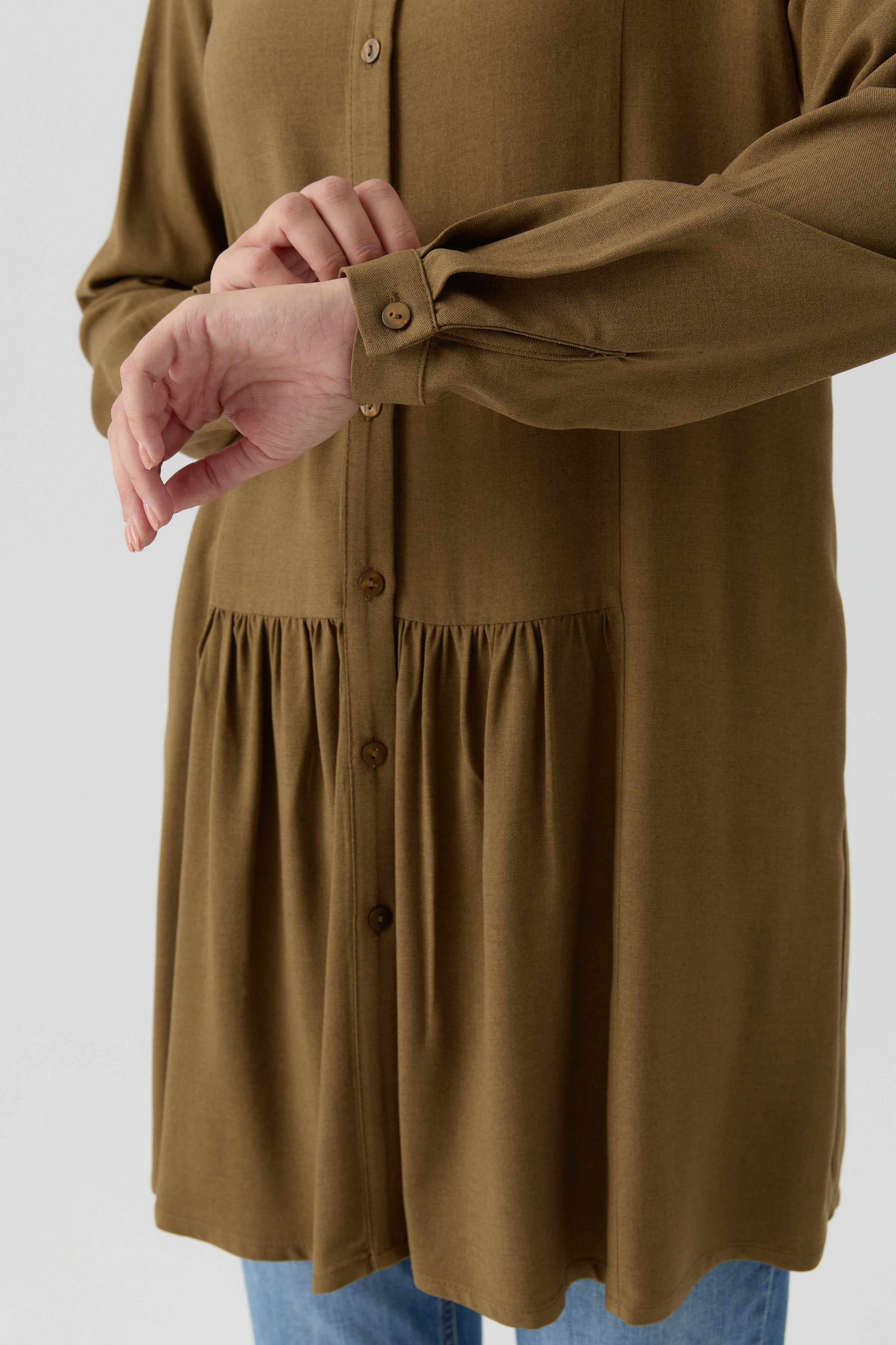 Esta túnica, realzada por su cintura ajustable con cordón, ofrece una silueta moderna y elegante. Su corte holgado garantiza comodidad durante todo el día, mientras que su elegante diseño la hace ideal para una gran variedad de ocasiones, desde looks cotidianos hasta eventos especiales.